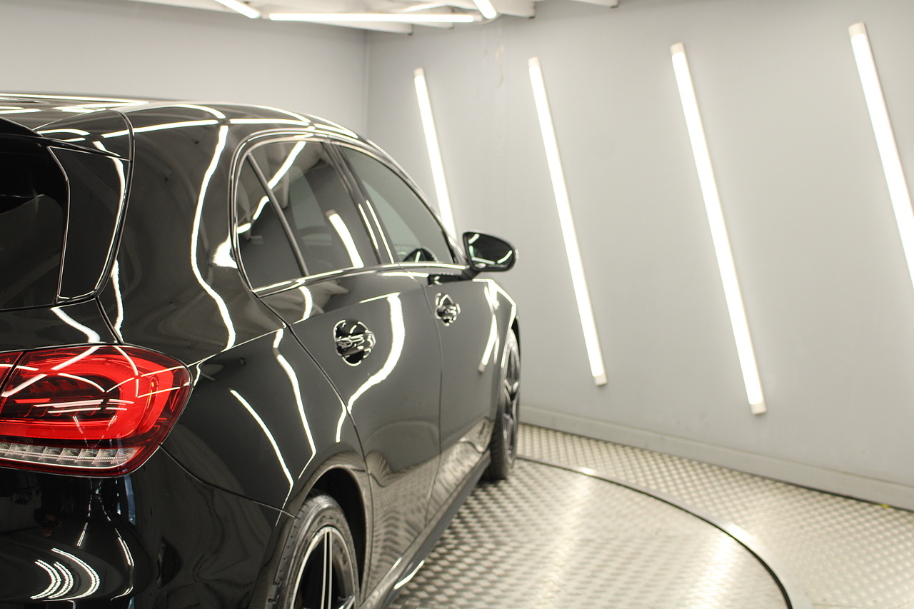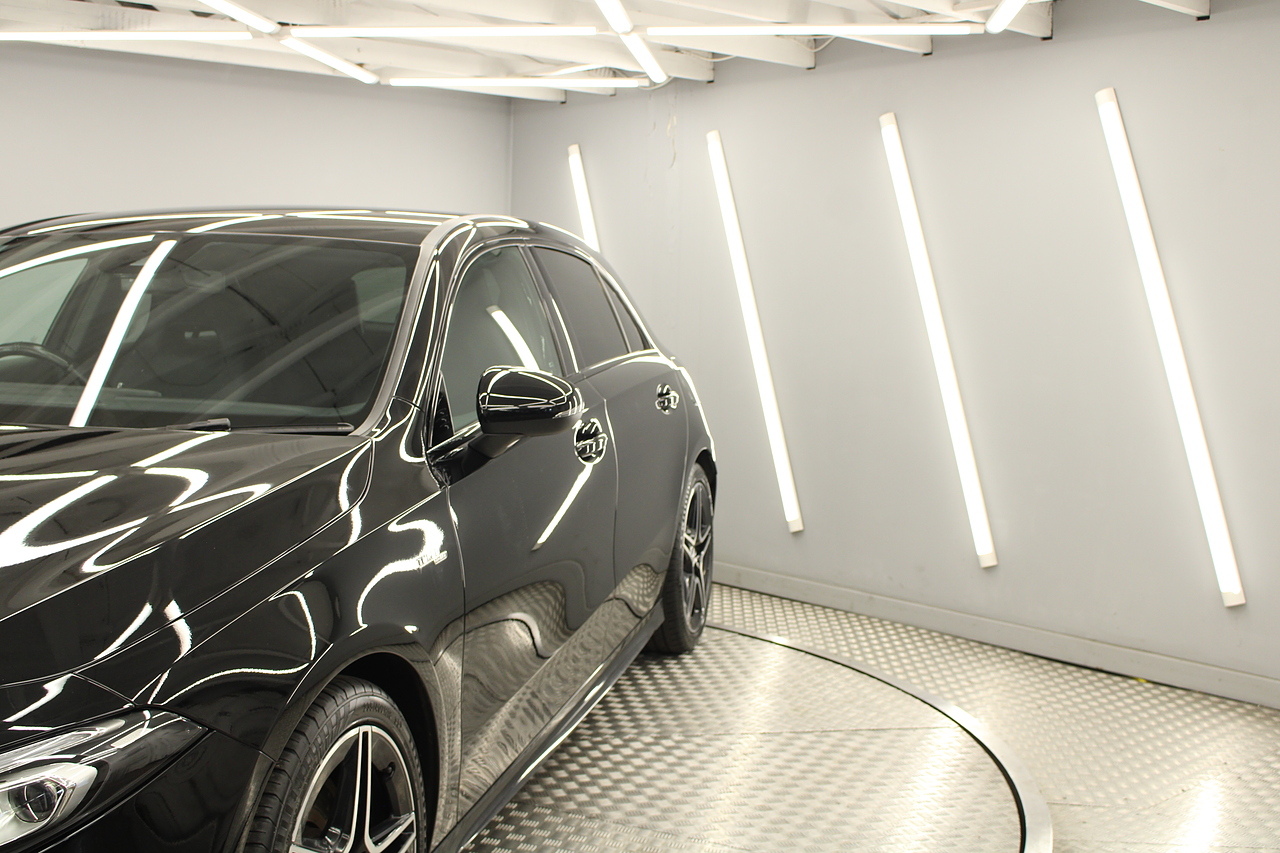 Finished in the gorgeous cosmos black with the AMG styling, 18'' wheels and privacy glass all give the AMG a menacing look, it looks every bit the hot hatch that it is.