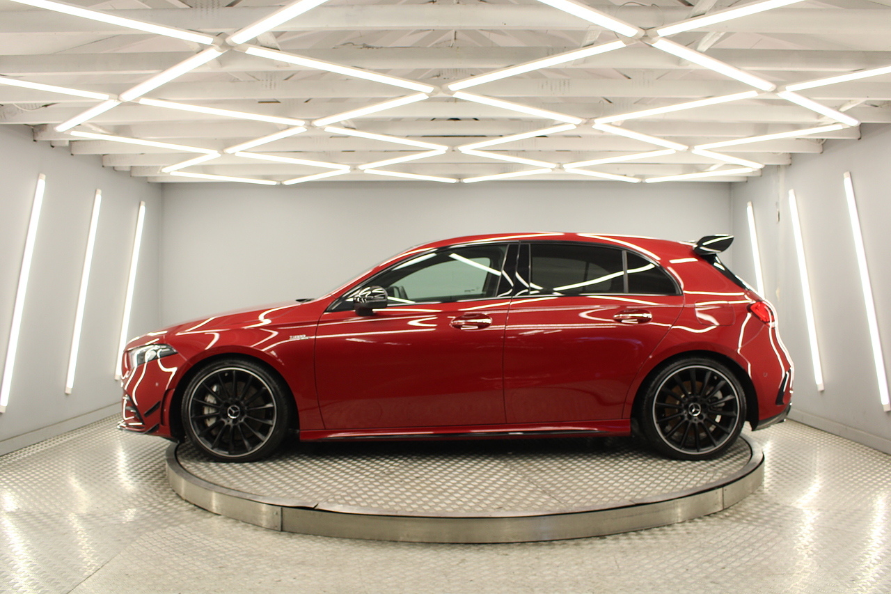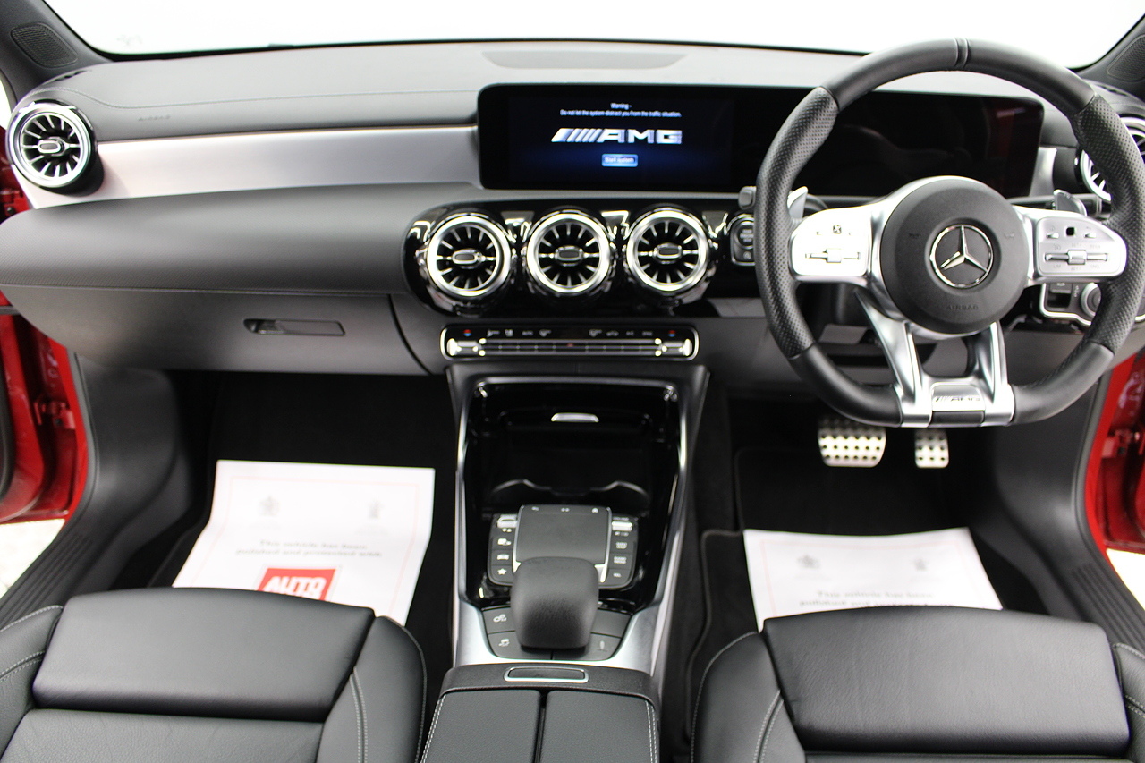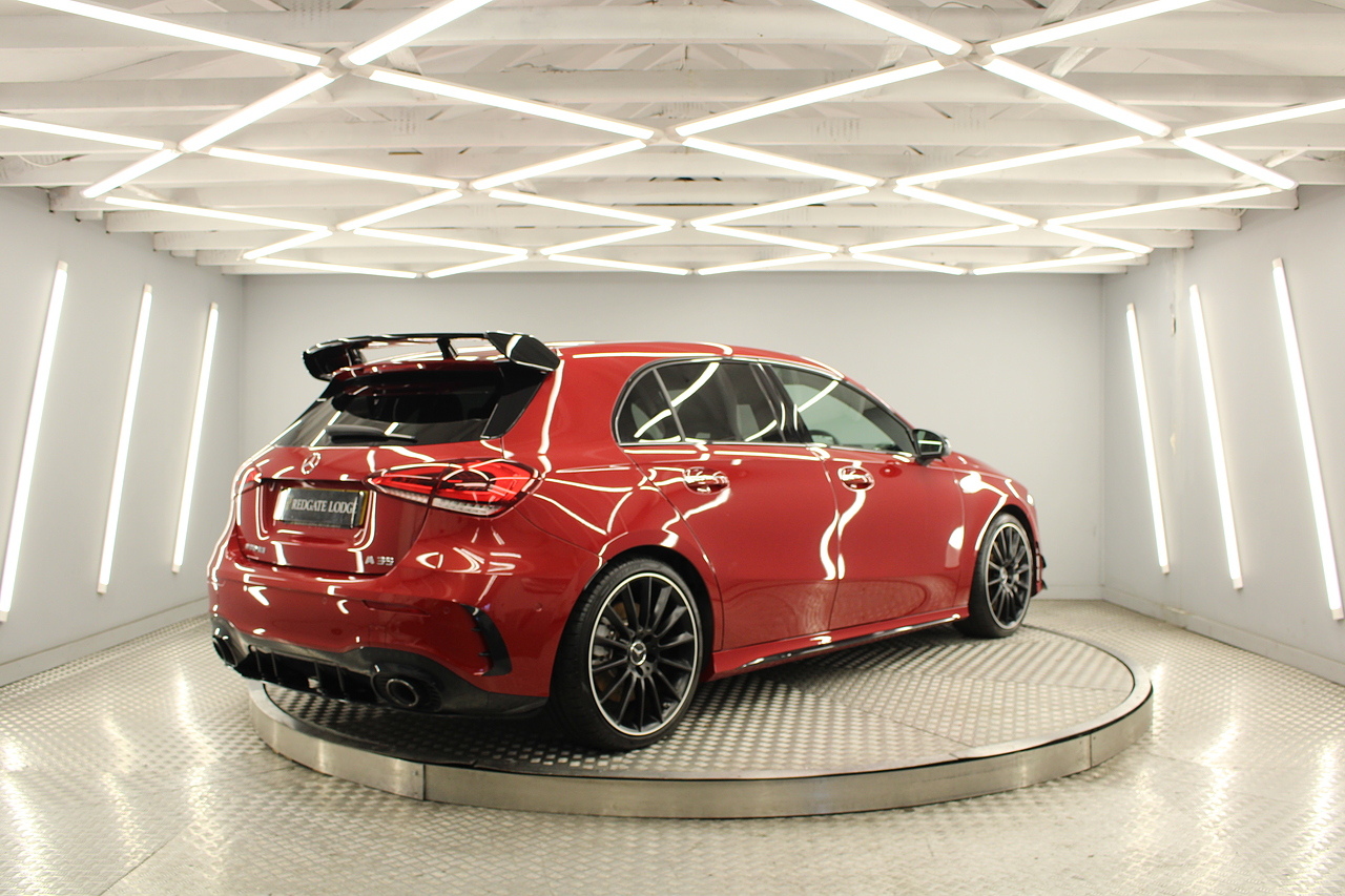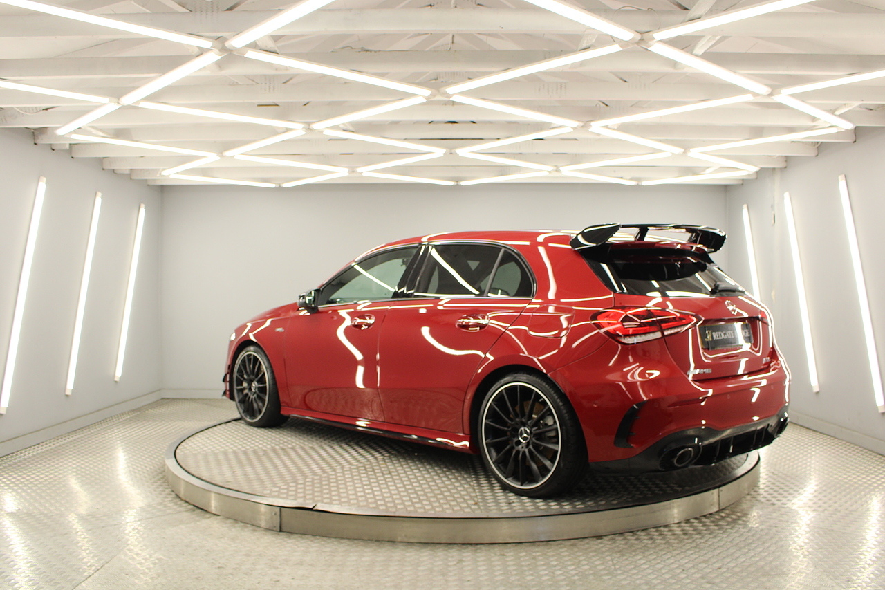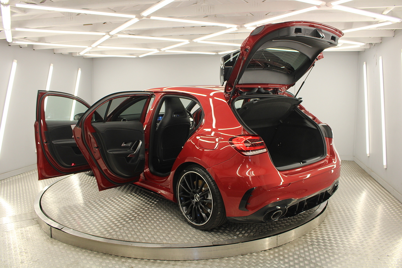 Finished in the stunning Patagonia red with the AMG styling plus the aero package 19'' wheels, panoramic sunroof and privacy glass all give the AMG a menacing look, it looks every bit the hot hatch that it is.