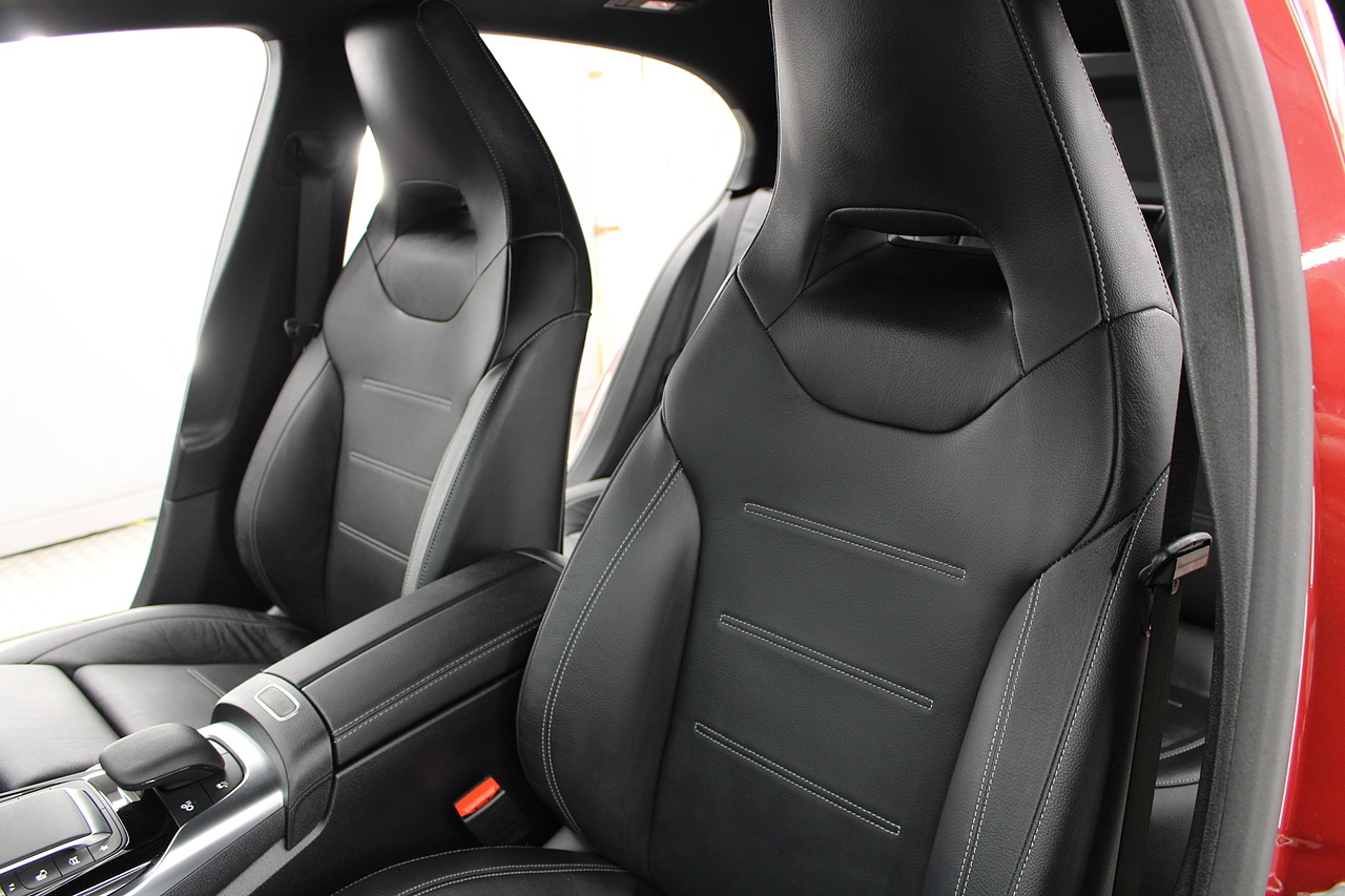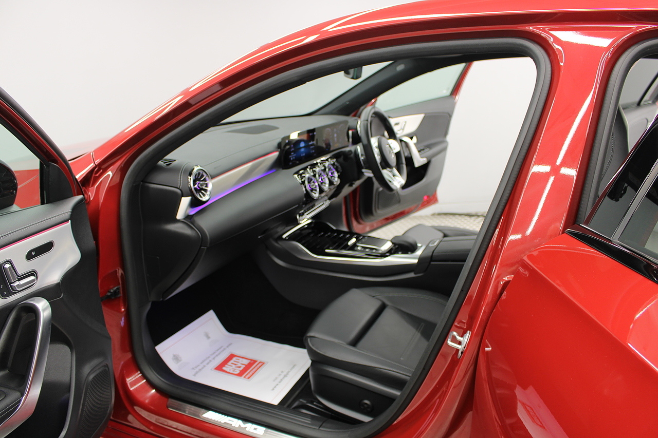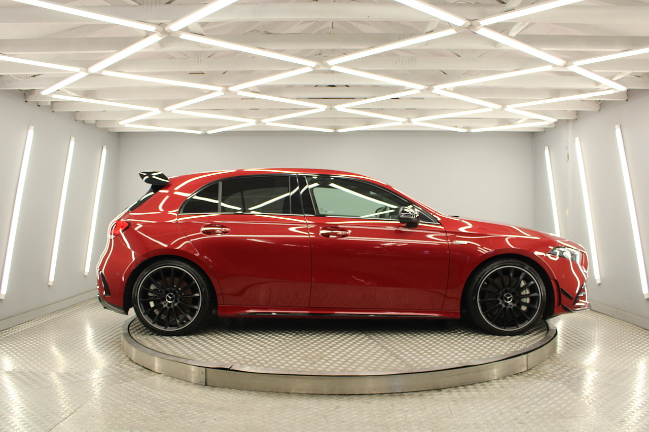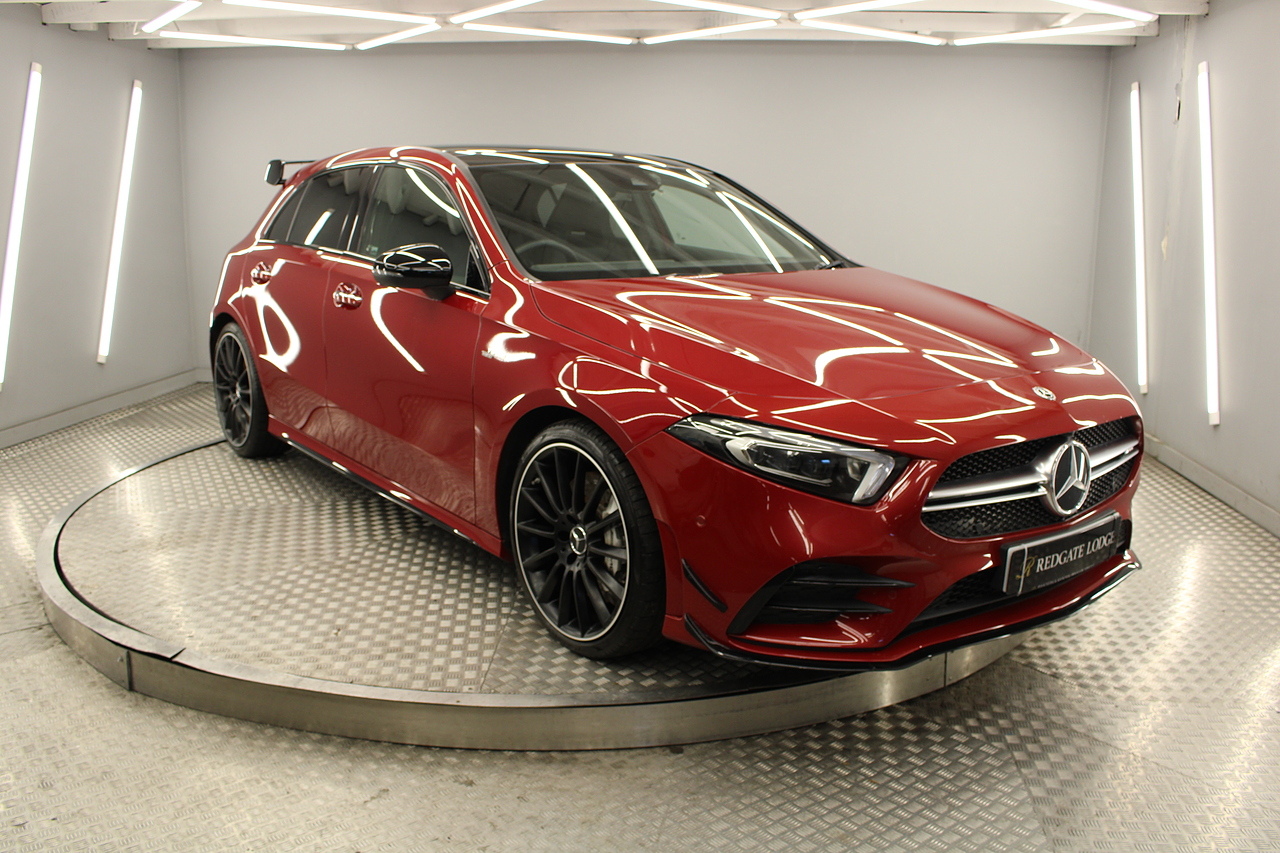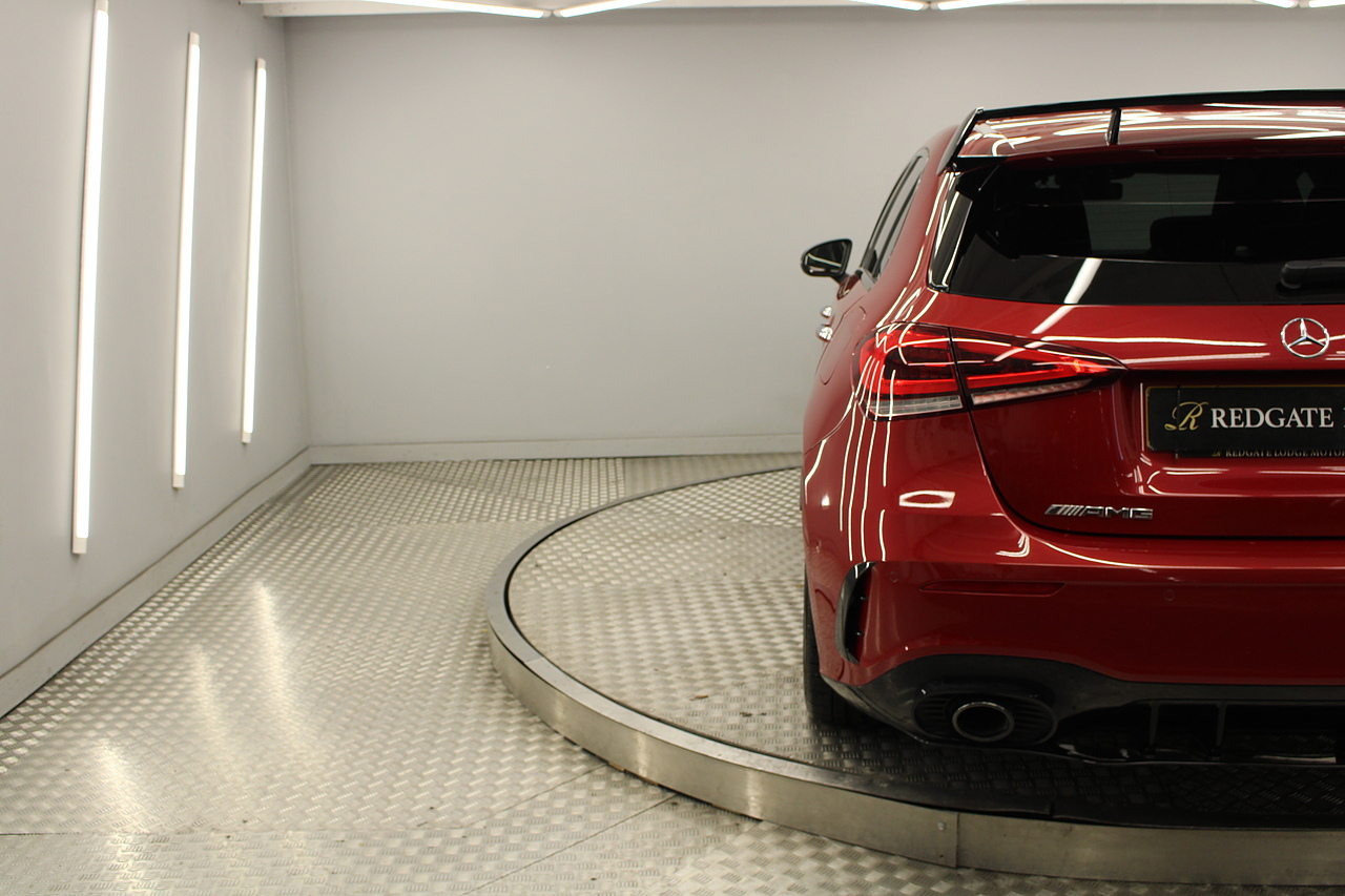 Finished in the stunning Patagonia red with the AMG styling plus the aero package 19'' wheels, panoramic sunroof and privacy glass all give the AMG a menacing look, it looks every bit the hot hatch that it is.