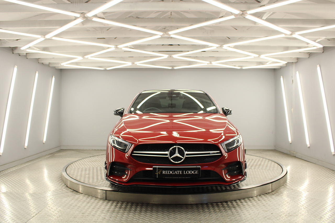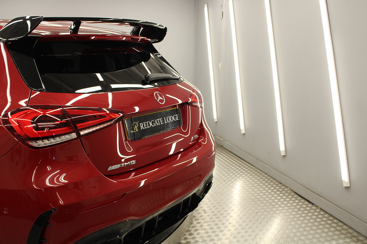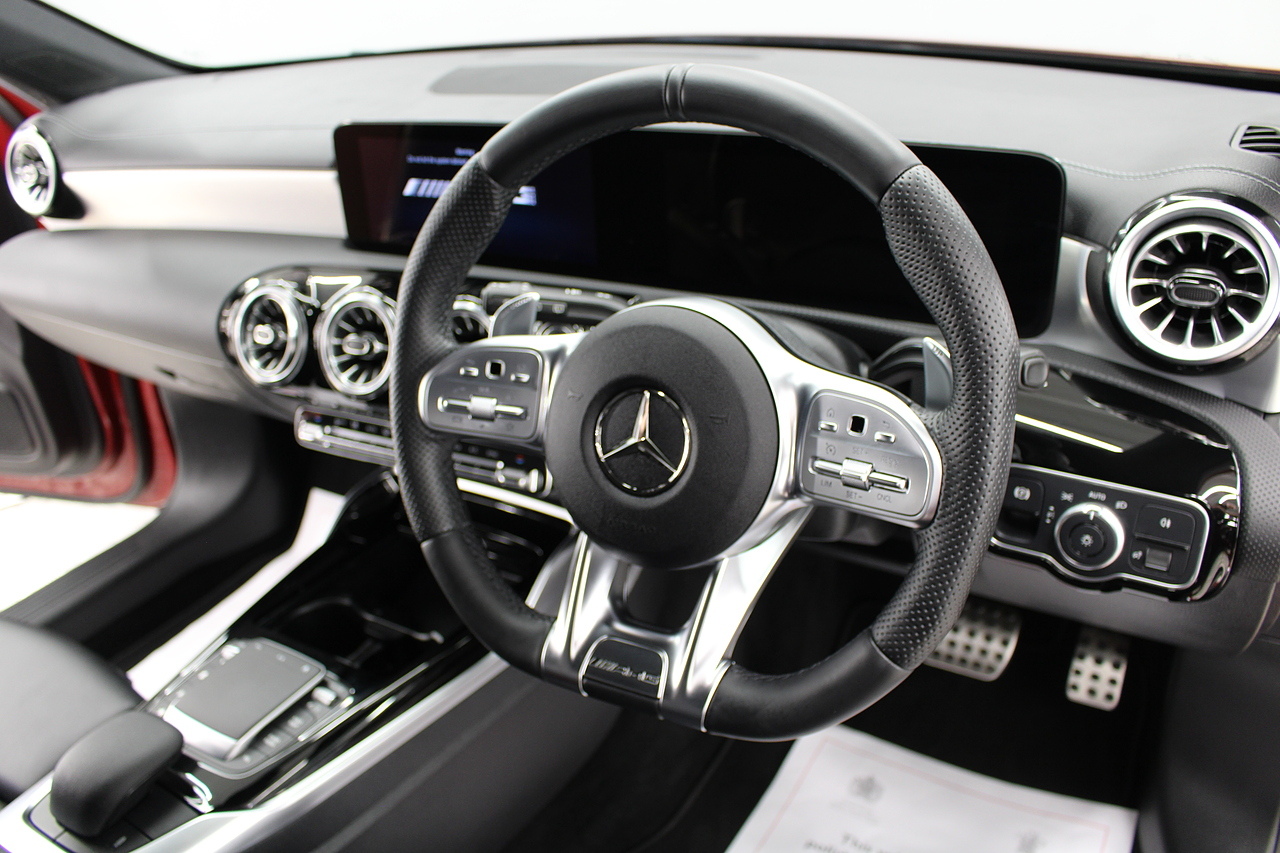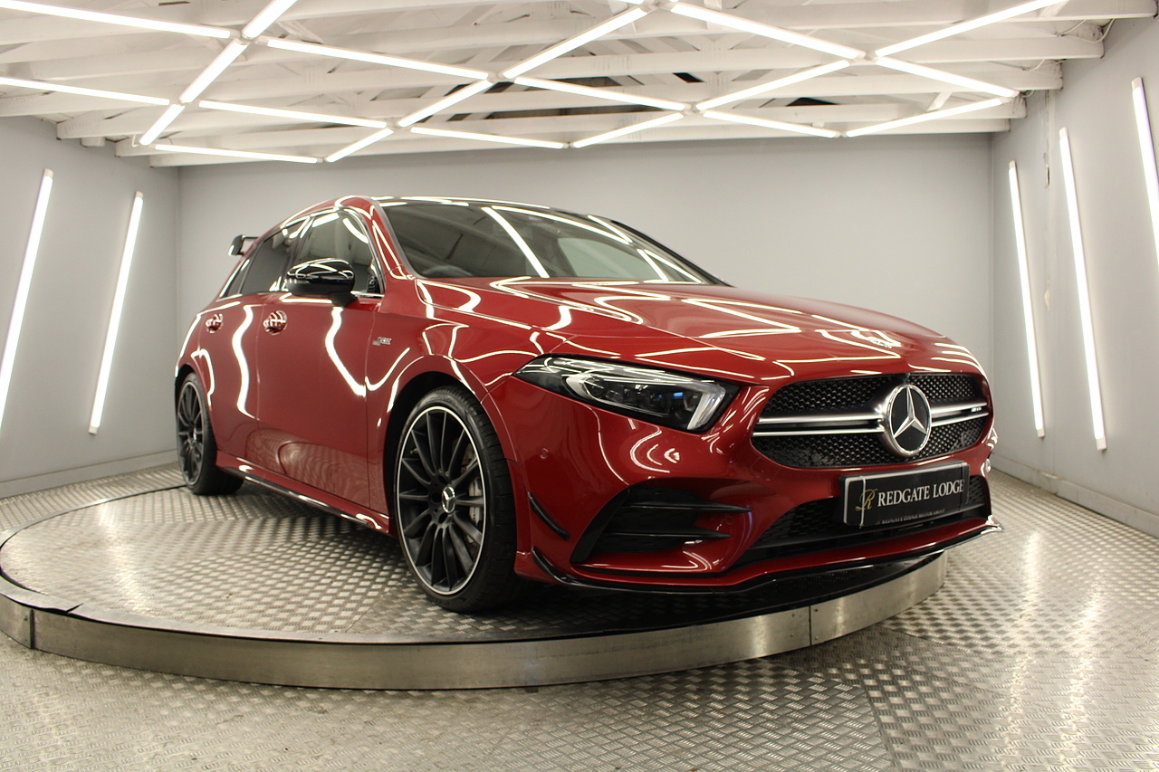 Finished in the stunning Patagonia red with the AMG styling plus the aero package 19'' wheels, panoramic sunroof and privacy glass all give the AMG a menacing look, it looks every bit the hot hatch that it is.