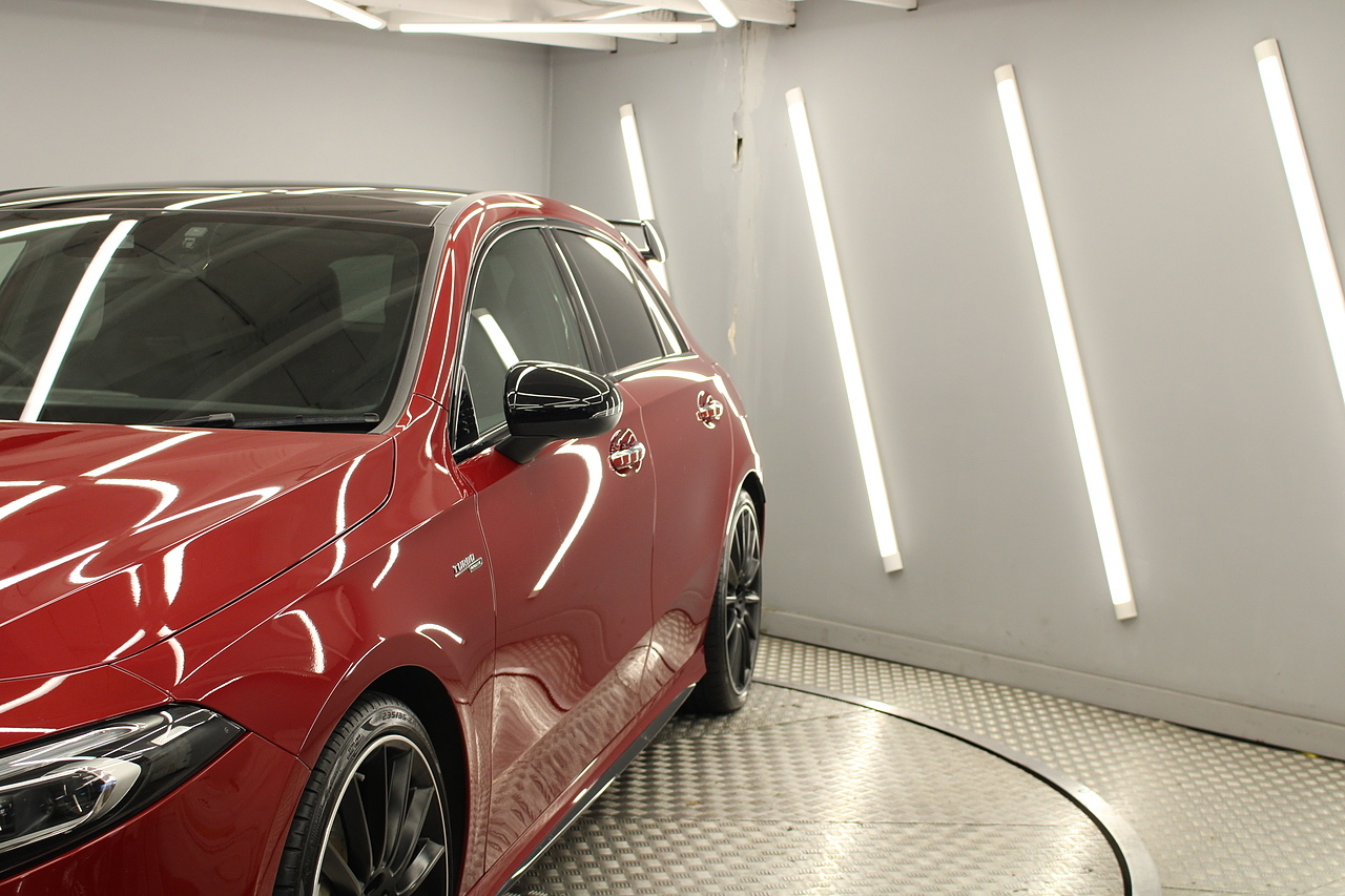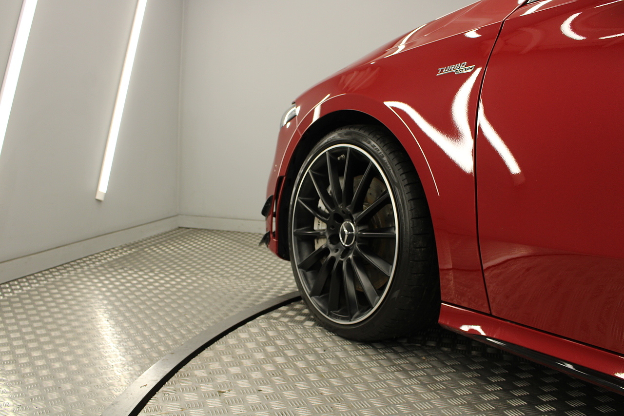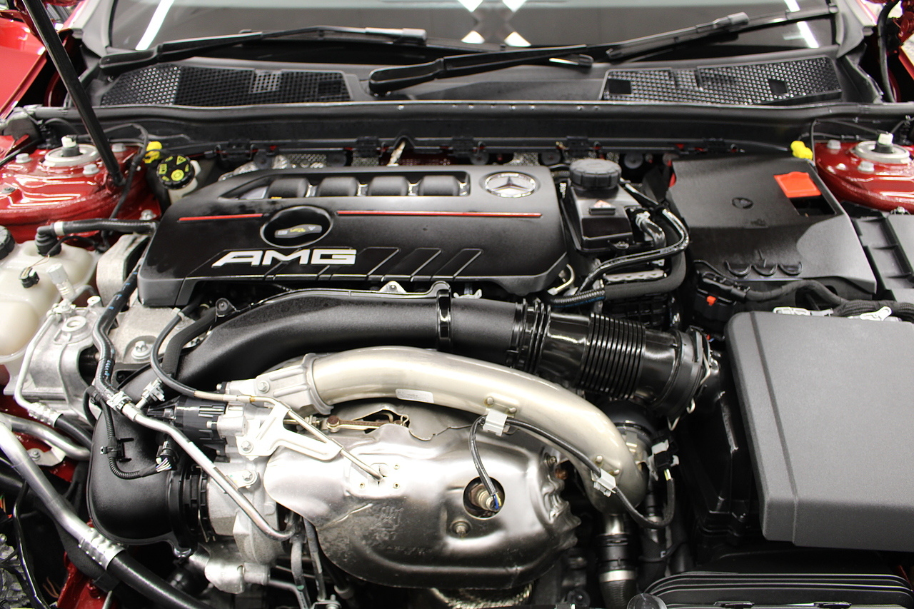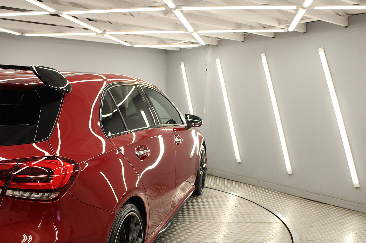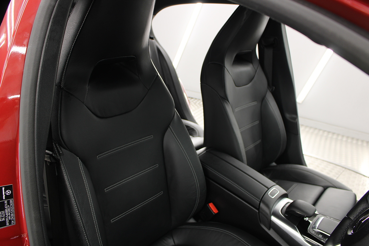 Finished in the stunning Patagonia red with the AMG styling plus the aero package 19'' wheels, panoramic sunroof and privacy glass all give the AMG a menacing look, it looks every bit the hot hatch that it is.
