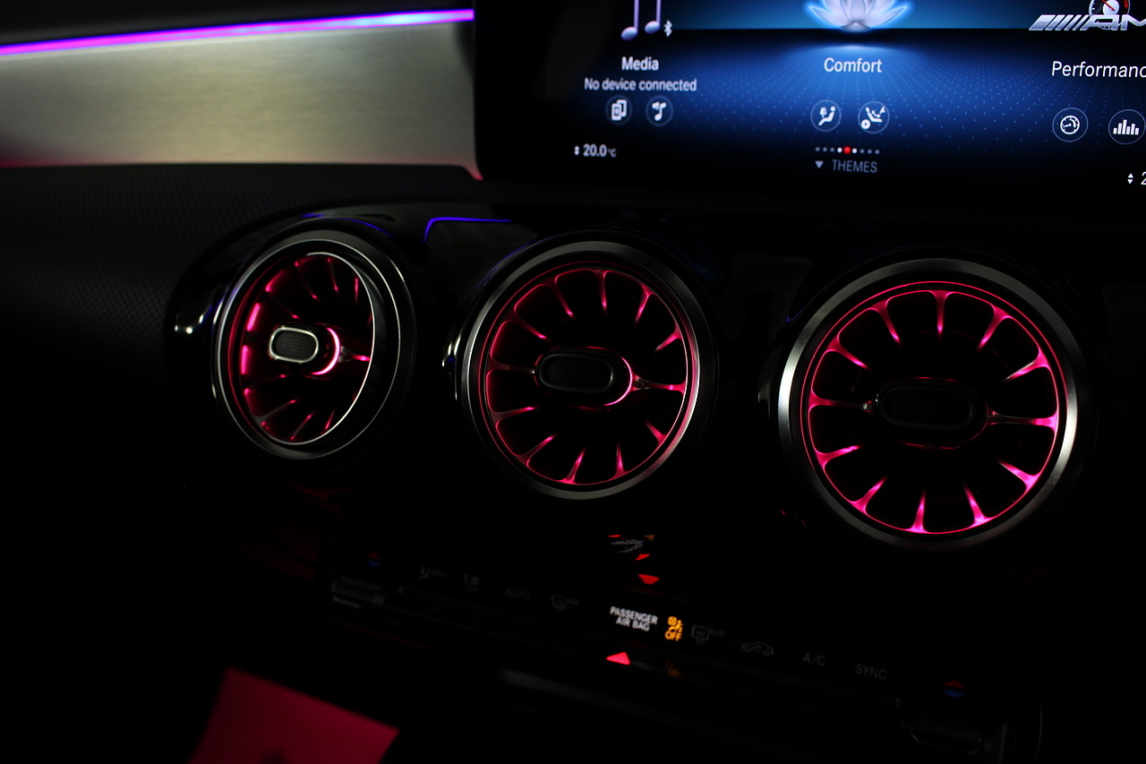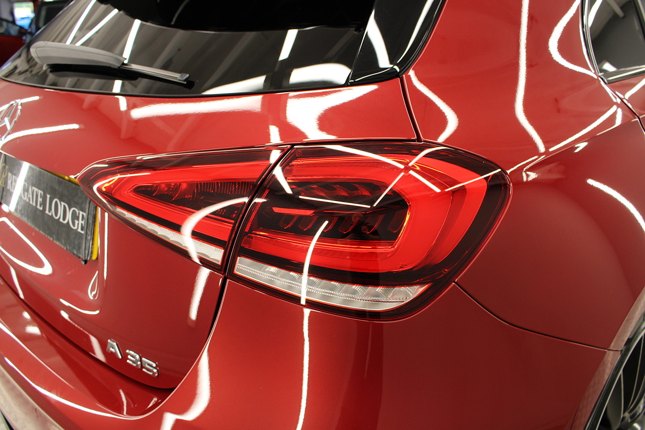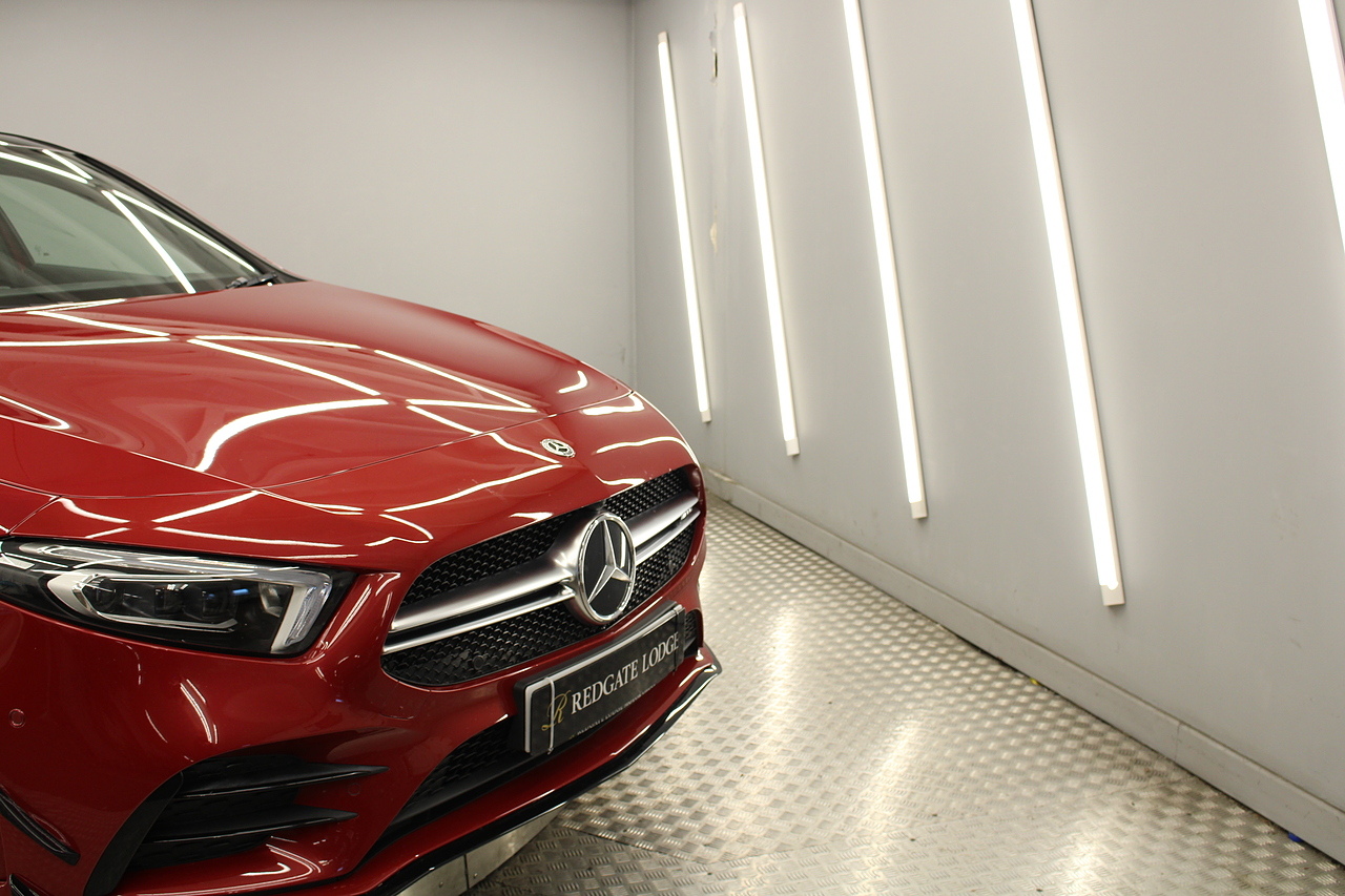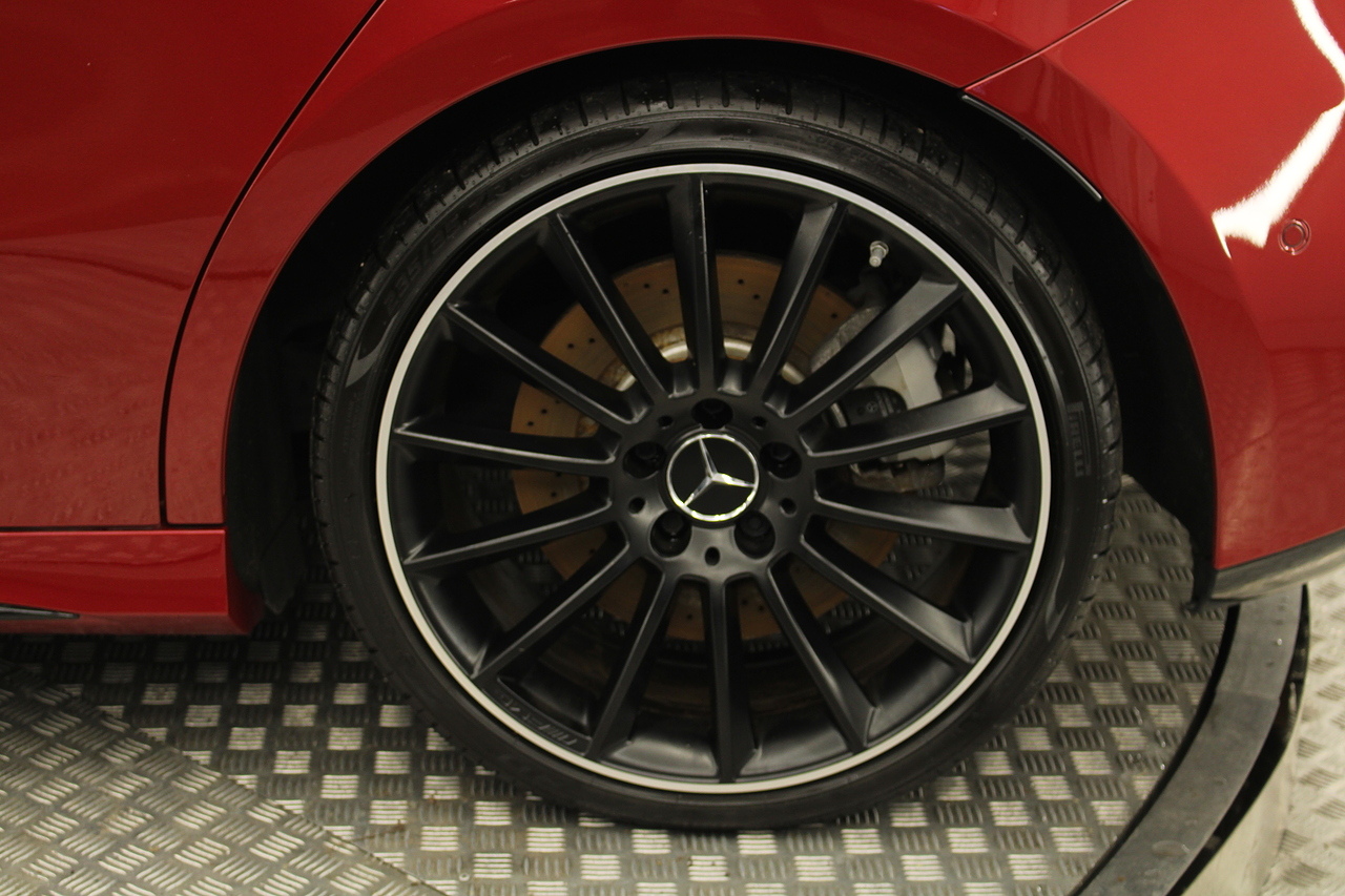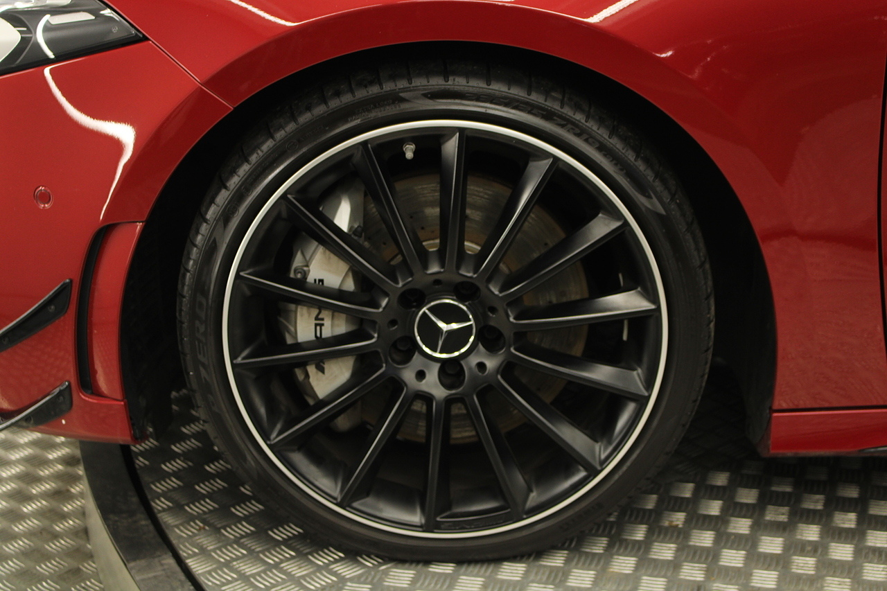 Finished in the stunning Patagonia red with the AMG styling plus the aero package 19'' wheels, panoramic sunroof and privacy glass all give the AMG a menacing look, it looks every bit the hot hatch that it is.