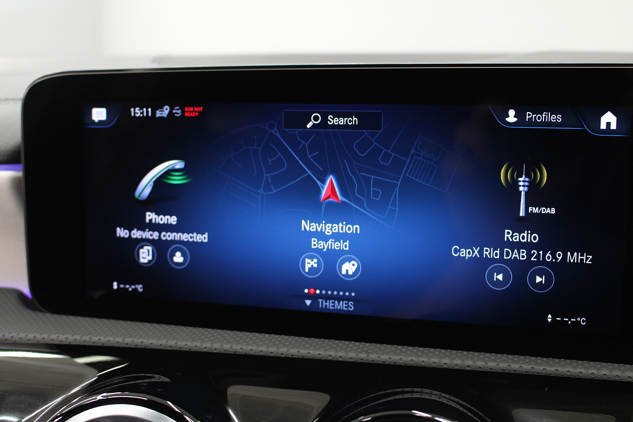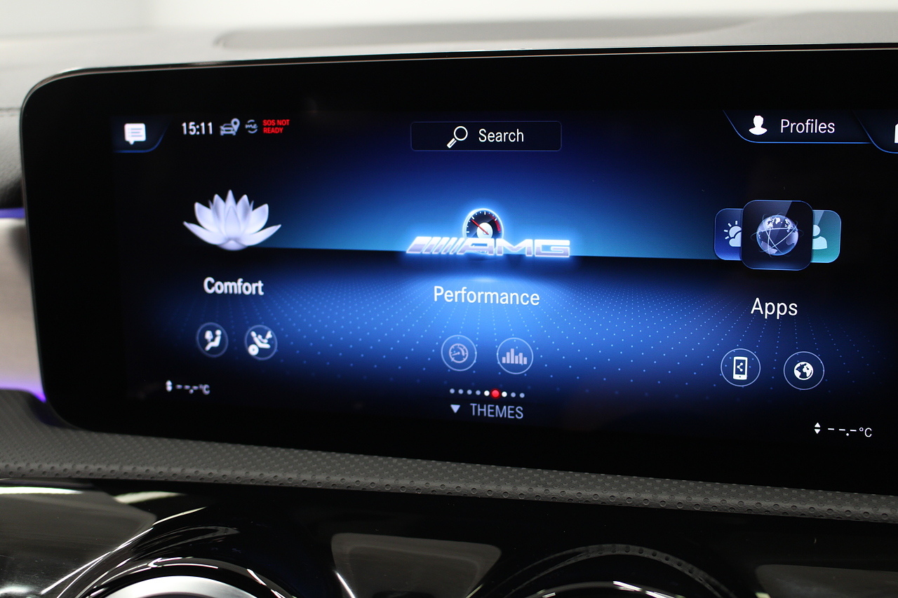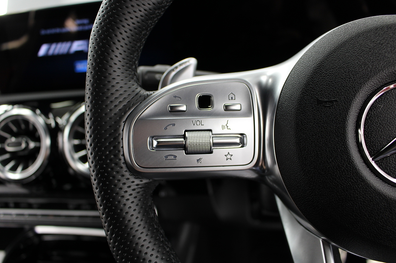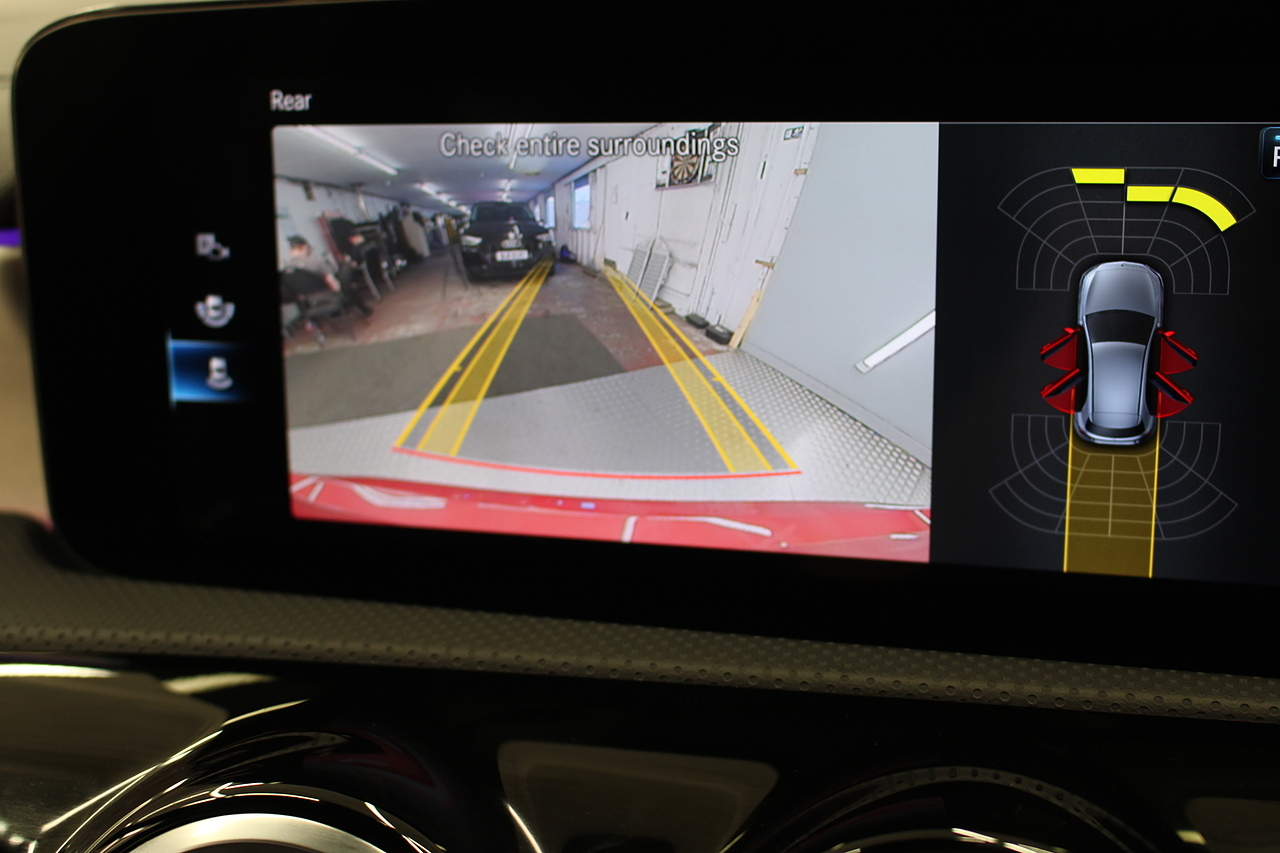 The interior comes trimmed with the beautiful AMG sport seats trimmed in black leather and alcantara with brushed aluminium dash trims, and plenty of tech with a large double display screen with satellite navigation, DAB radio, bluetooth telephone and media, cruise control, rear parking camera and virtual cockpit display.