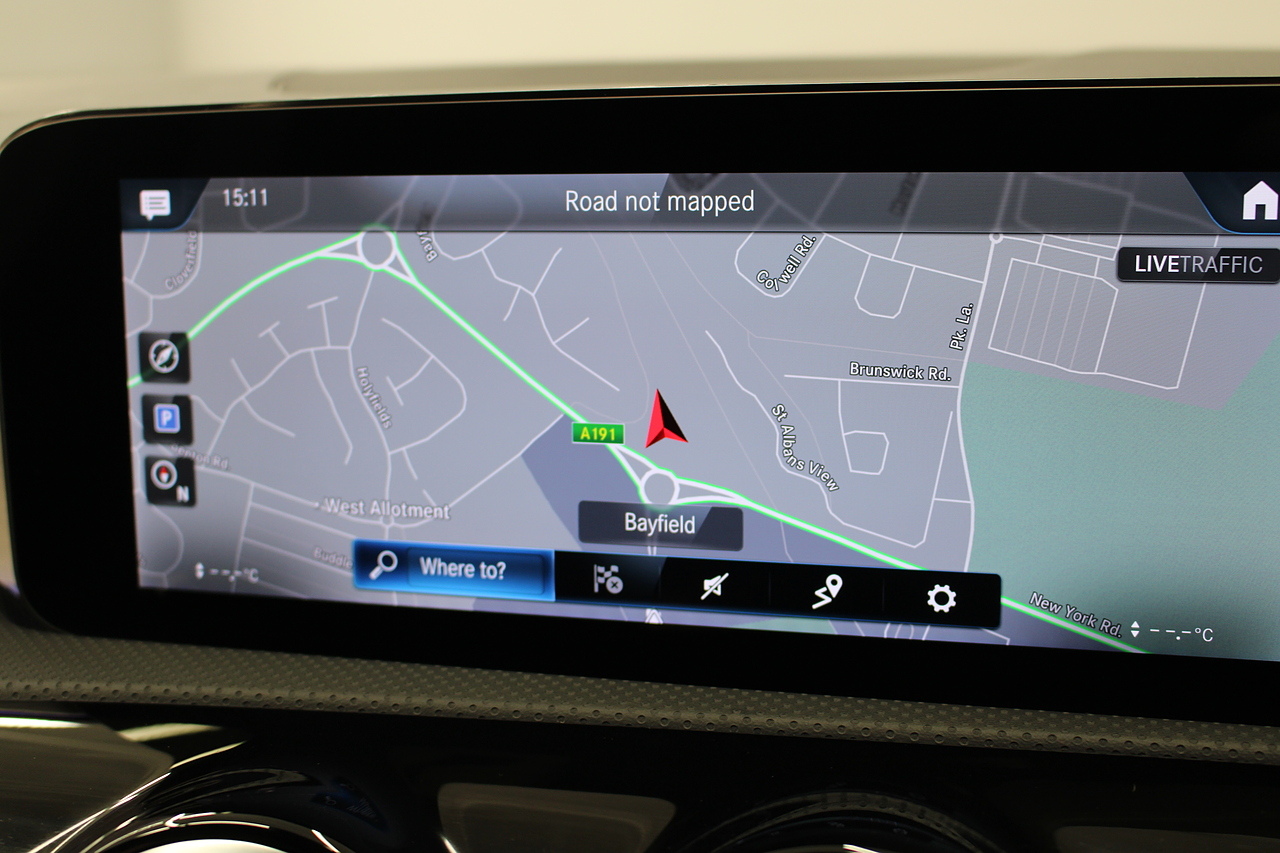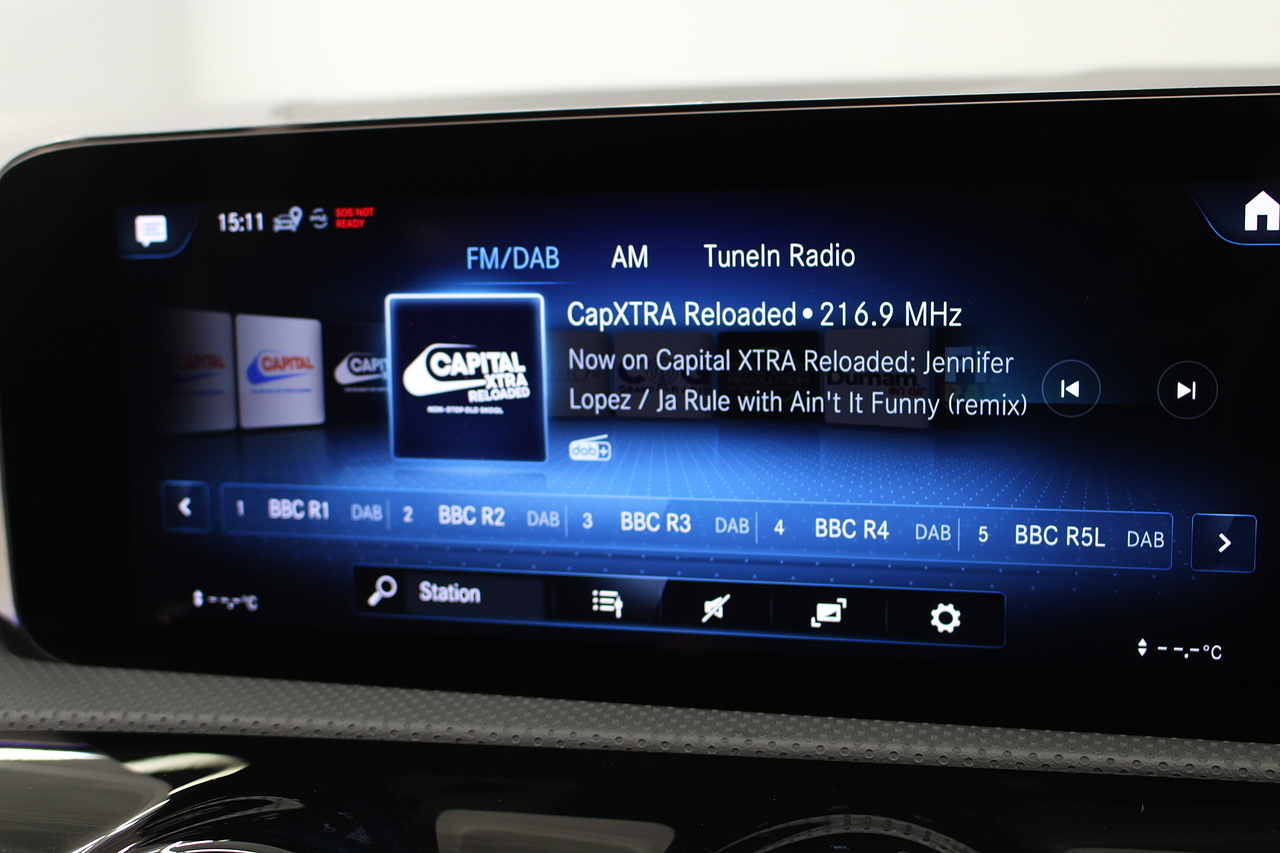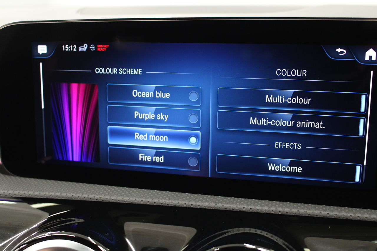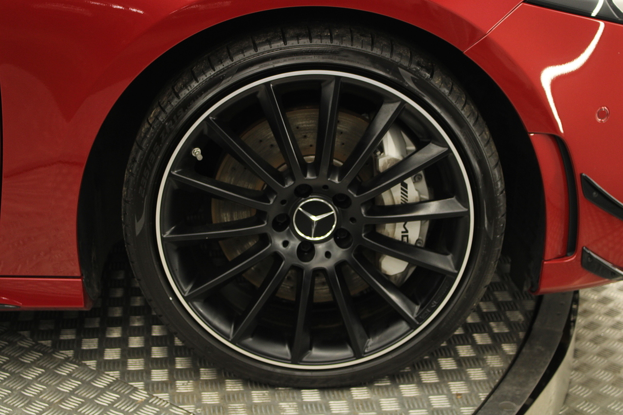 The interior comes trimmed with the beautiful AMG sport seats trimmed in black leather and alcantara with brushed aluminium dash trims, and plenty of tech with a large double display screen with satellite navigation, DAB radio, bluetooth telephone and media, cruise control, rear parking camera and virtual cockpit display.