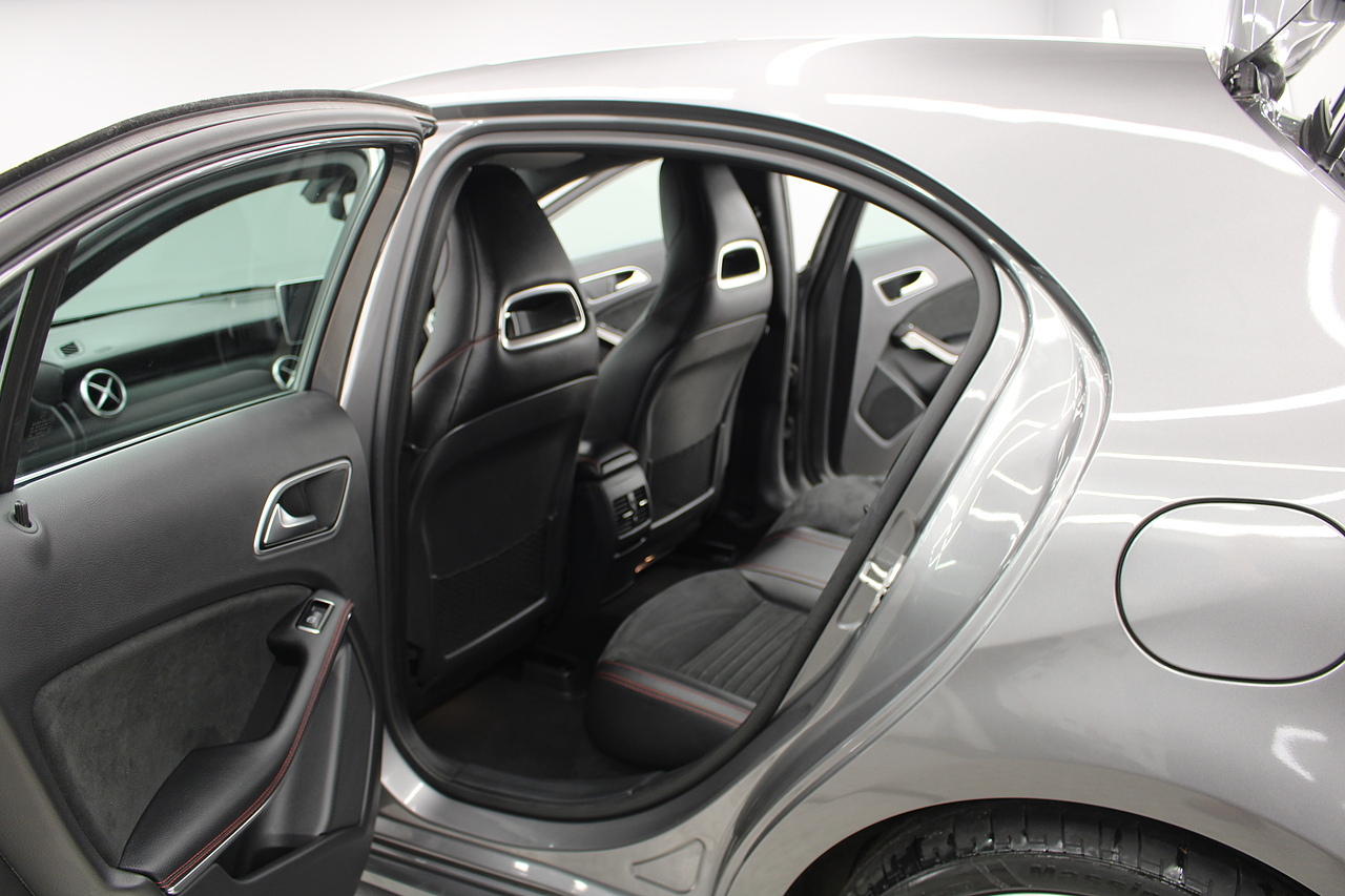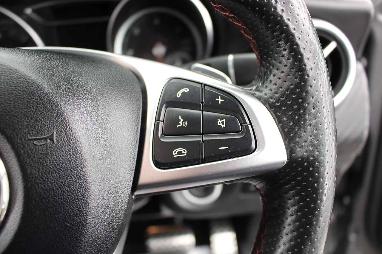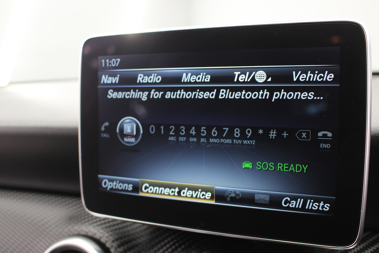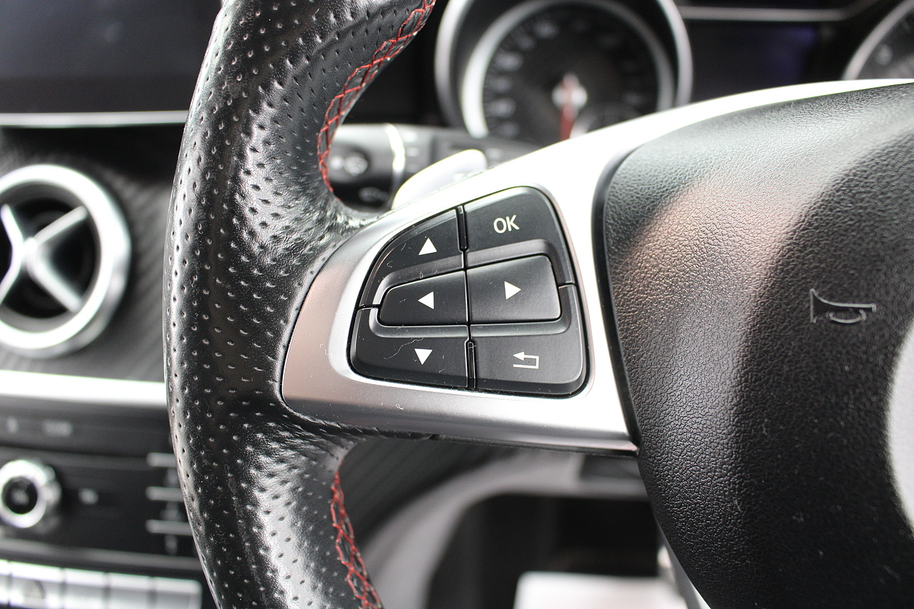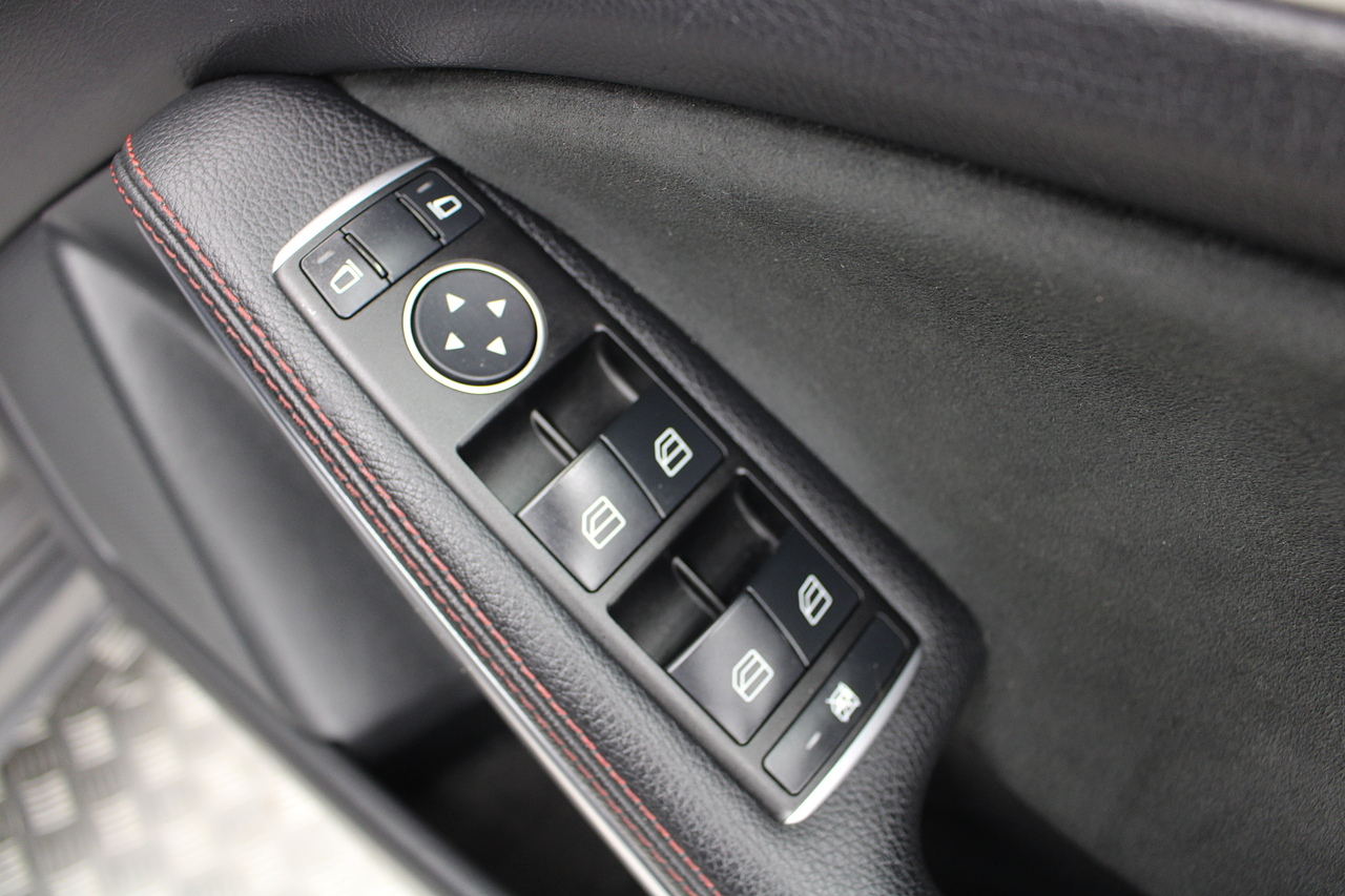 To the inside premium materials are used as you'd expect, with supportive and seats trimmed in black artico leather and with dark grey alcantara centres, with the front seats being both power adjustable and with memory function setting and heated, the centre of the dash houses a large full colour screen located in the middle of the dash with satellite navigation, reverse parking camera display, FM radio, Bluetooth connectivity with audio streaming, and also cruise control, this generation of the Mercedes Benz A Class is sleeker and longer, with styling that could turn the heads of traditional Volkswagen Golf buyers.