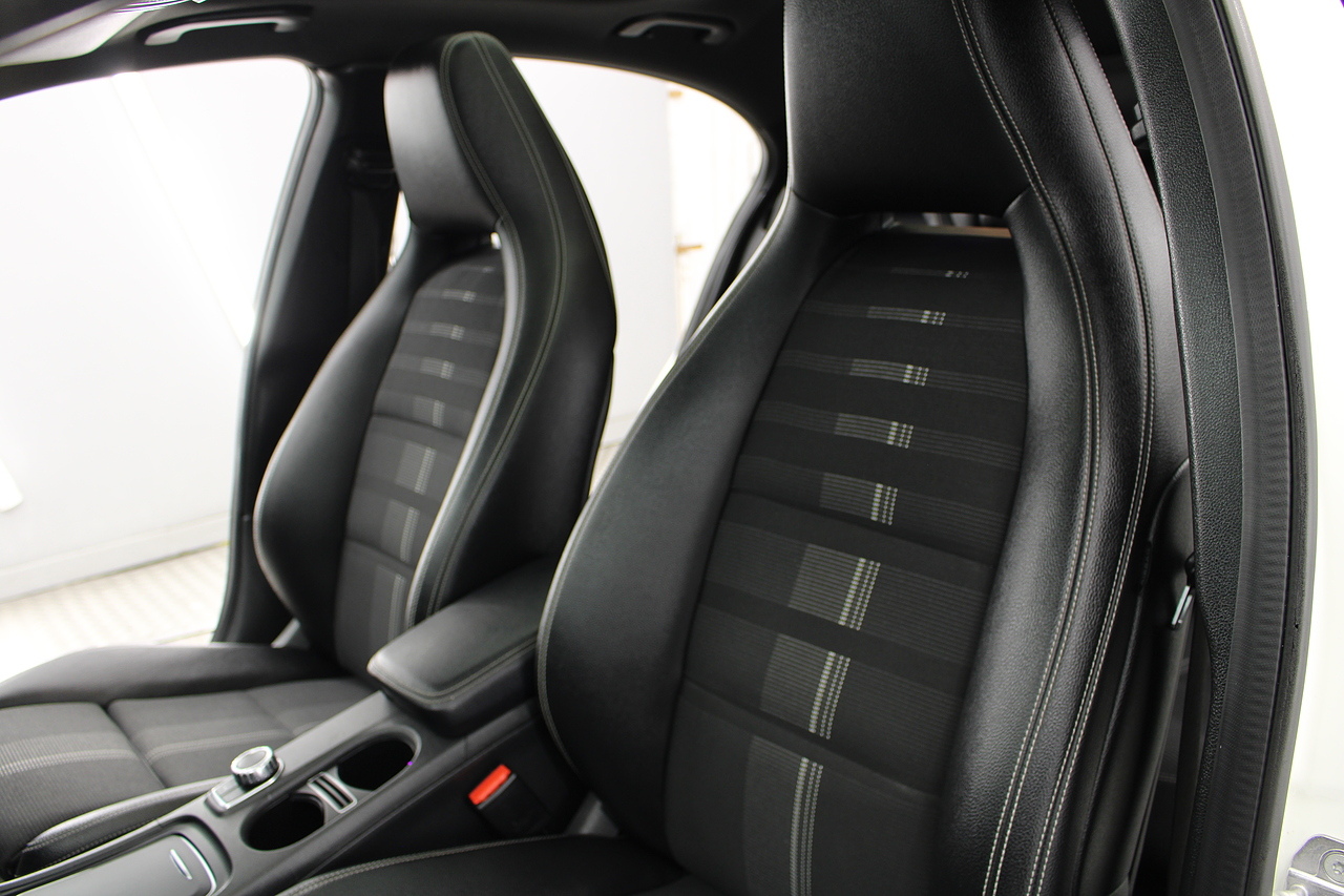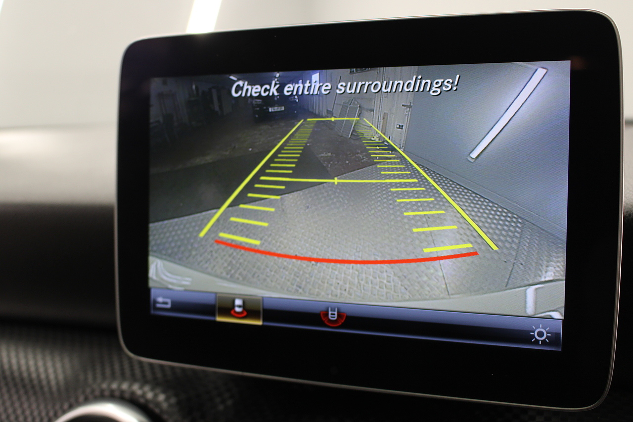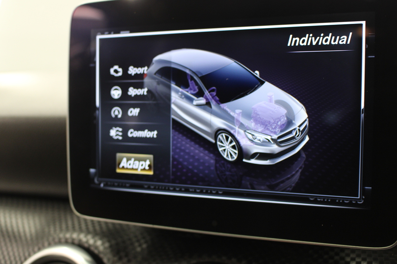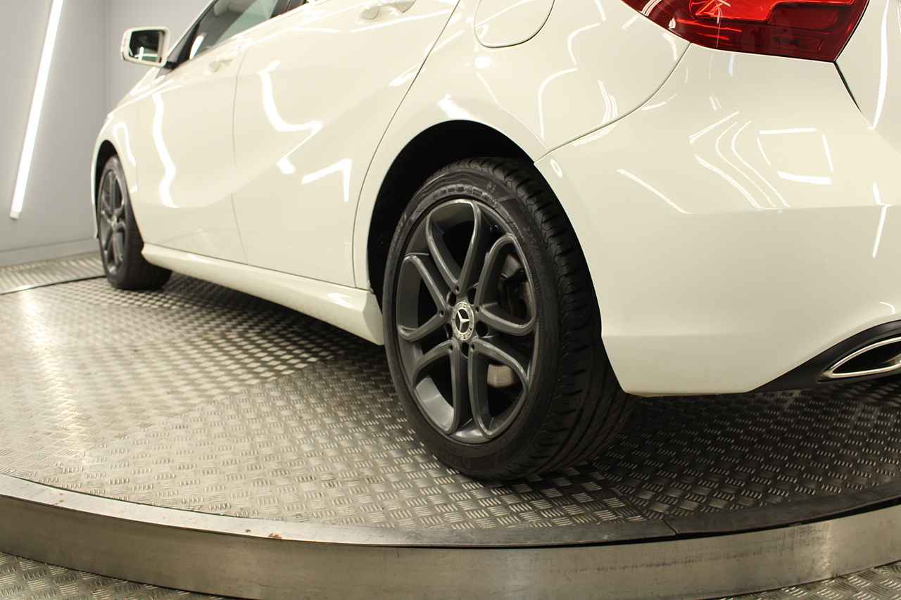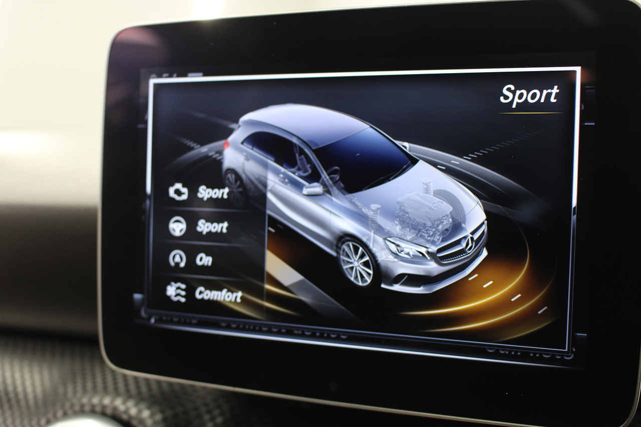 To the inside premium materials are used as you'd expect, with supportive and seats trimmed in black artico partial leather with heated seats, the centre of the dash houses a large full colour screen located in the middle of the dash with satellite navigation, reverse parking camera display, FM radio, Bluetooth connectivity with audio streaming, and also cruise control, this generation of the Mercedes Benz A Class is sleeker and longer, with styling that could turn the heads of traditional Volkswagen Golf buyers.