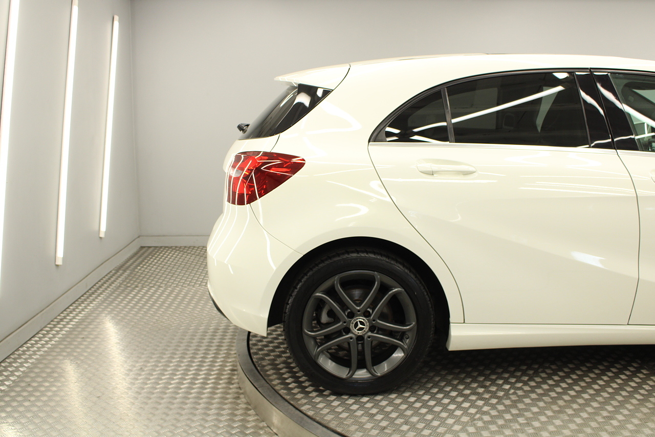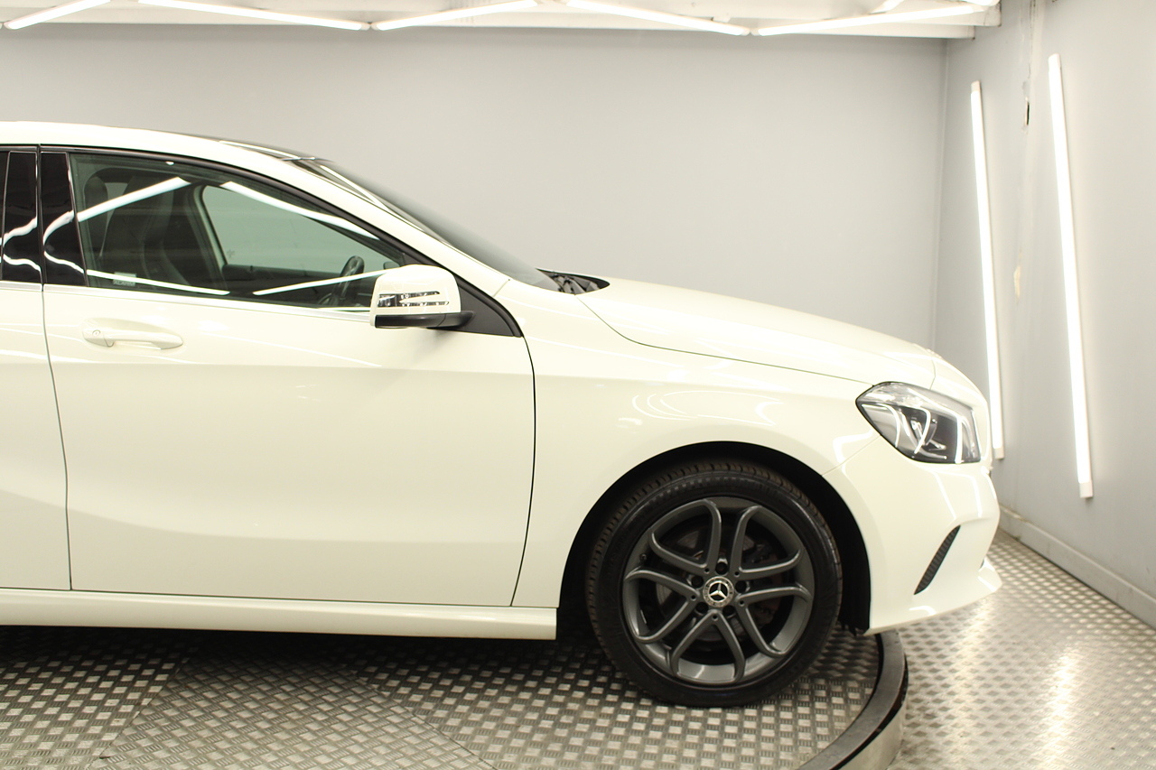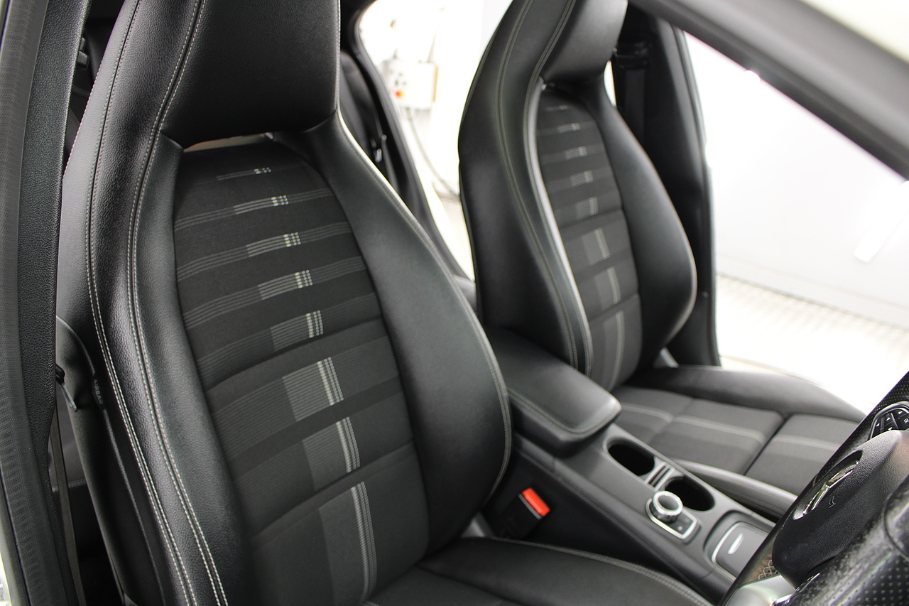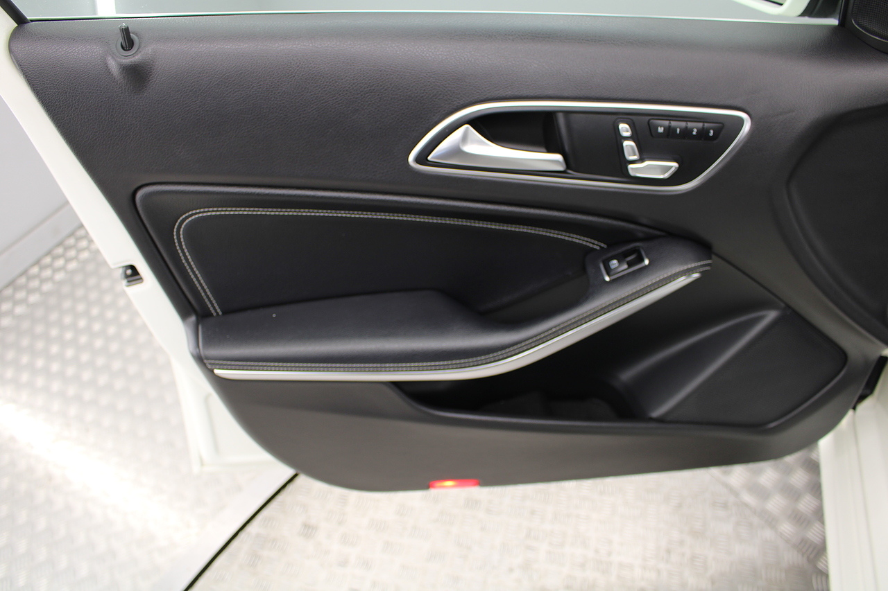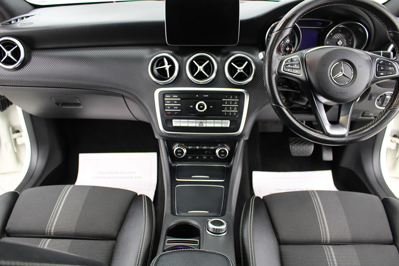 To the inside premium materials are used as you'd expect, with supportive and seats trimmed in black artico partial leather with heated seats, the centre of the dash houses a large full colour screen located in the middle of the dash with satellite navigation, reverse parking camera display, FM radio, Bluetooth connectivity with audio streaming, and also cruise control, this generation of the Mercedes Benz A Class is sleeker and longer, with styling that could turn the heads of traditional Volkswagen Golf buyers.