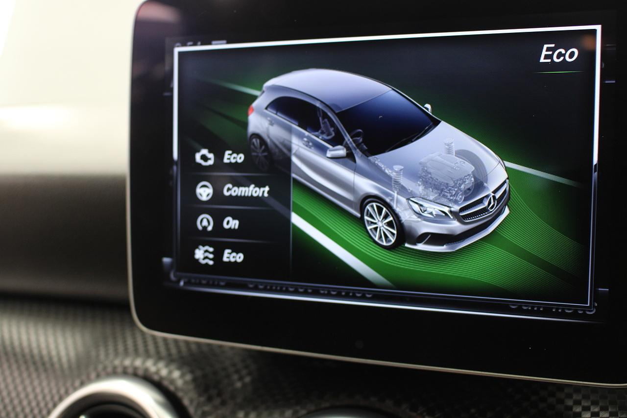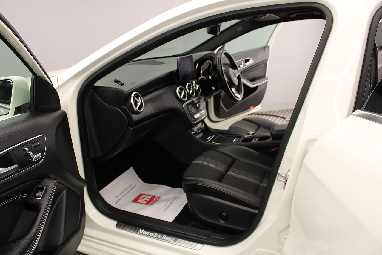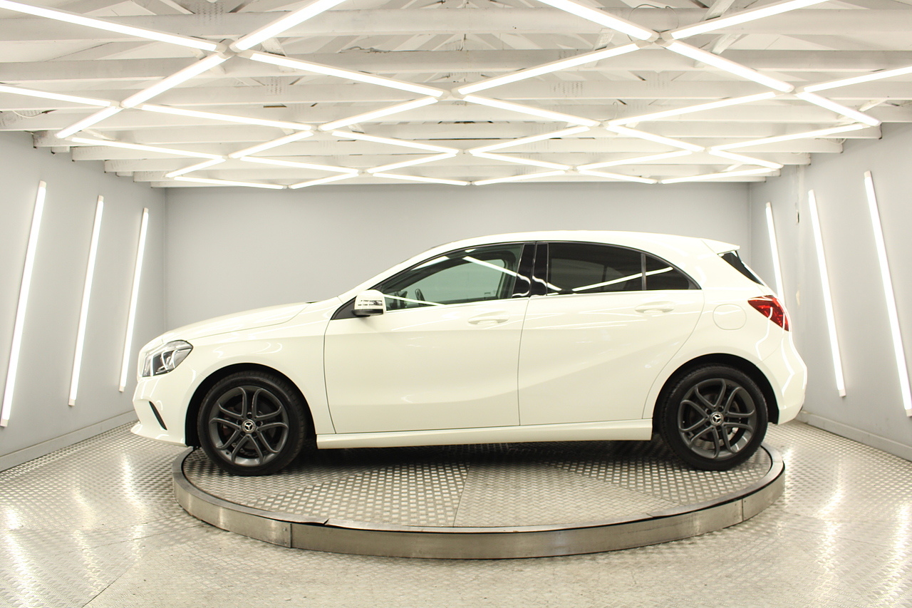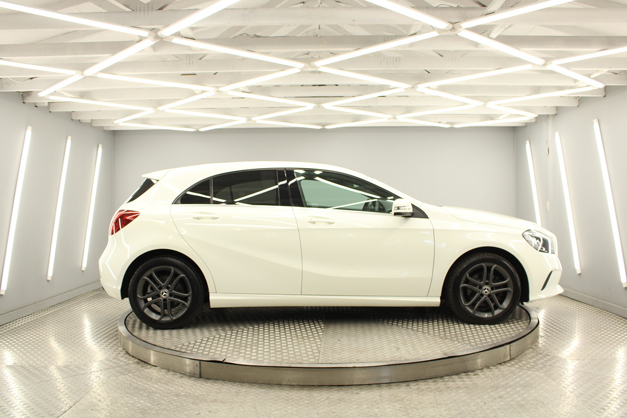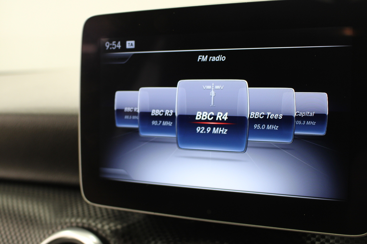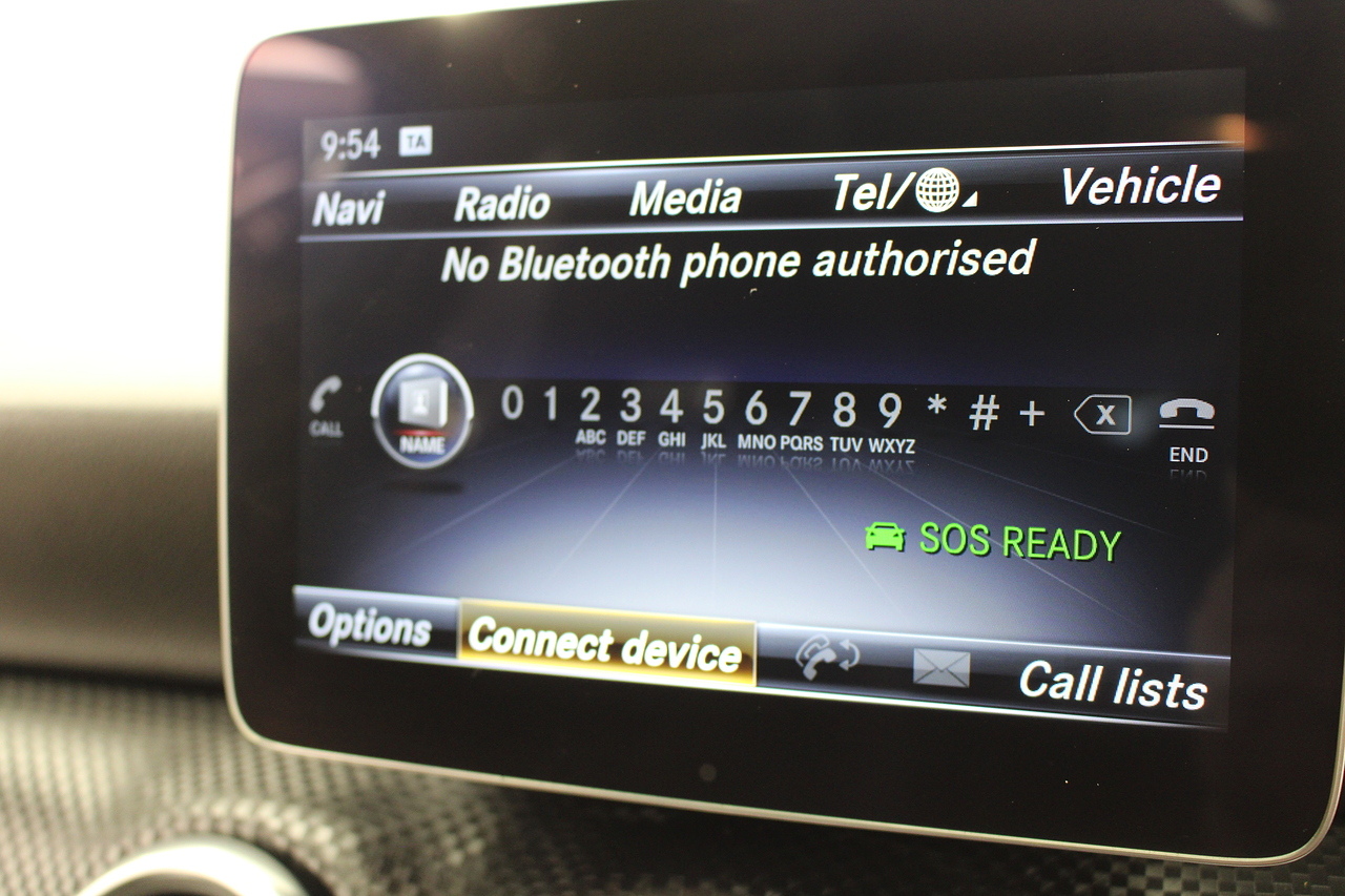 To the inside premium materials are used as you'd expect, with supportive and seats trimmed in black artico partial leather with heated seats, the centre of the dash houses a large full colour screen located in the middle of the dash with satellite navigation, reverse parking camera display, FM radio, Bluetooth connectivity with audio streaming, and also cruise control, this generation of the Mercedes Benz A Class is sleeker and longer, with styling that could turn the heads of traditional Volkswagen Golf buyers.