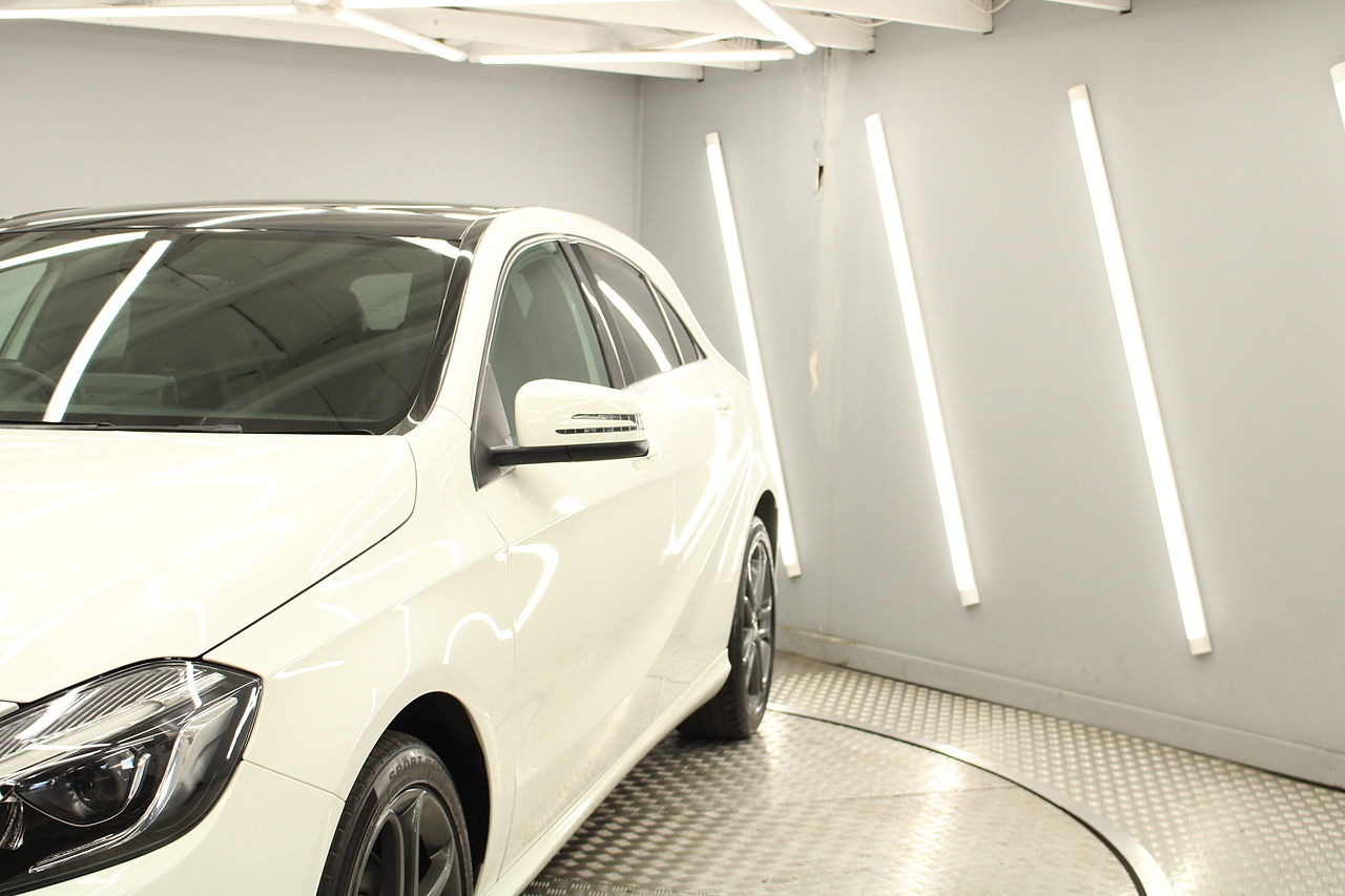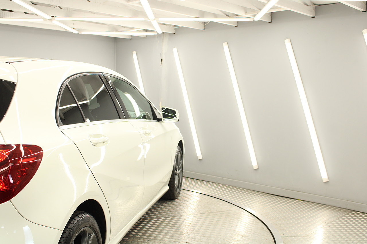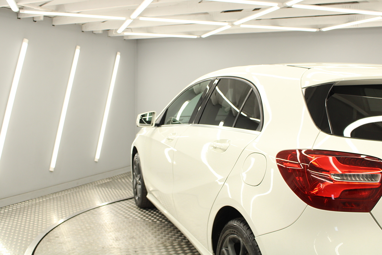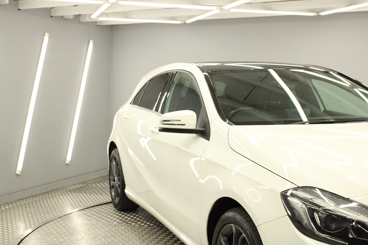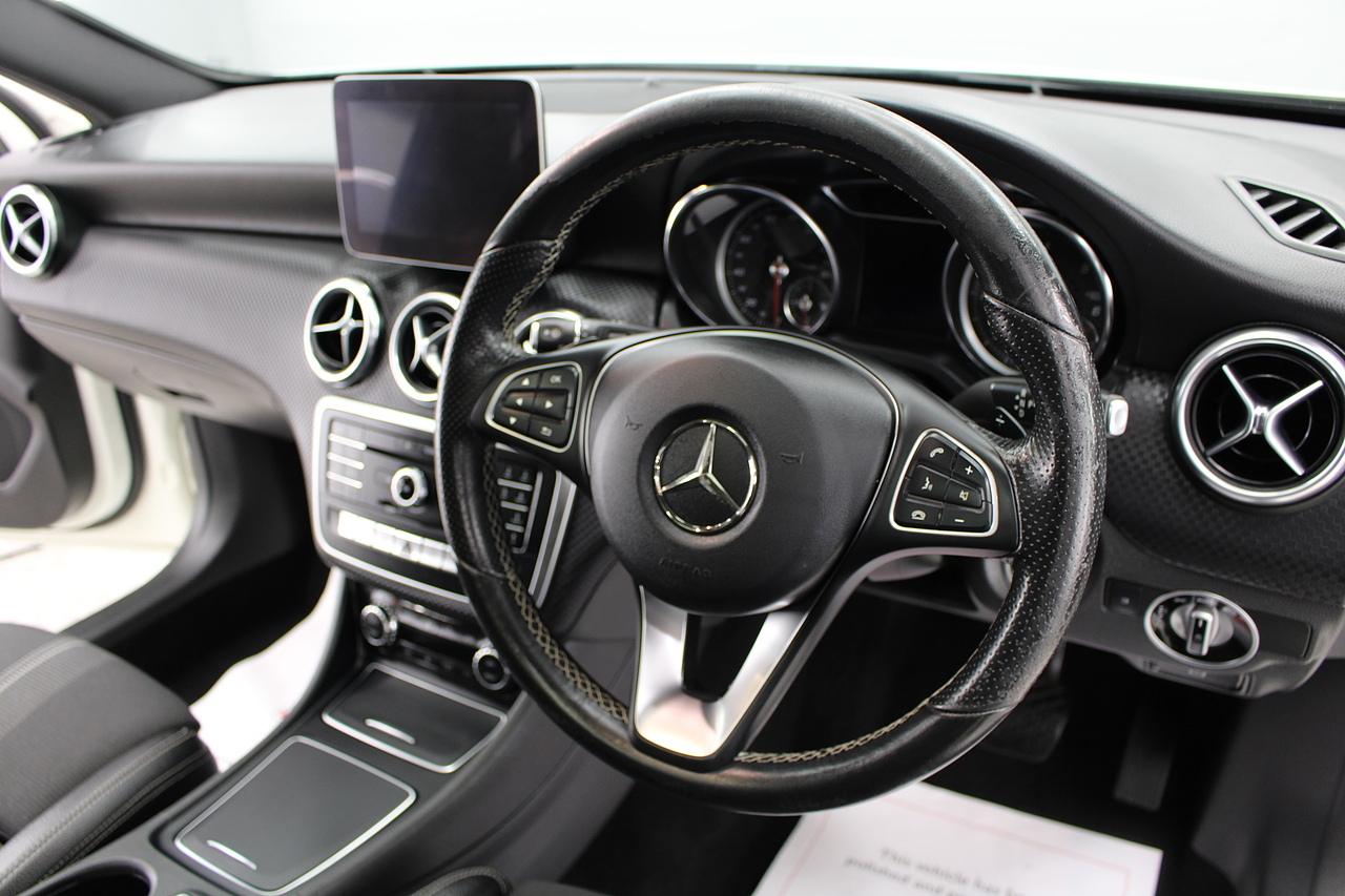 To the inside premium materials are used as you'd expect, with supportive and seats trimmed in black artico partial leather with heated seats, the centre of the dash houses a large full colour screen located in the middle of the dash with satellite navigation, reverse parking camera display, FM radio, Bluetooth connectivity with audio streaming, and also cruise control, this generation of the Mercedes Benz A Class is sleeker and longer, with styling that could turn the heads of traditional Volkswagen Golf buyers.