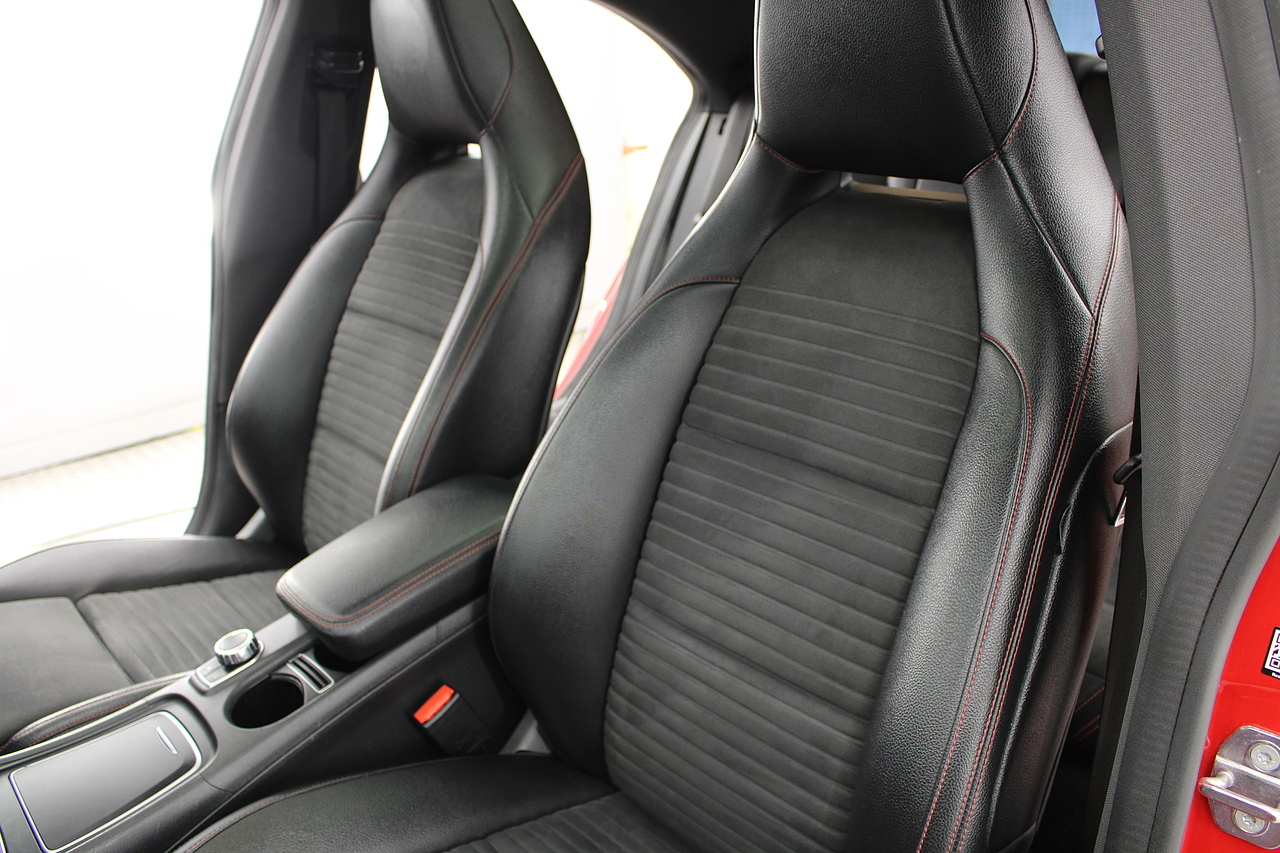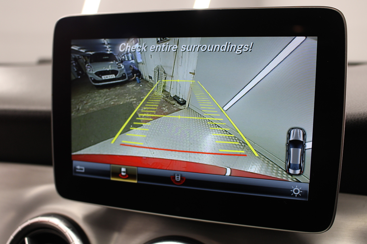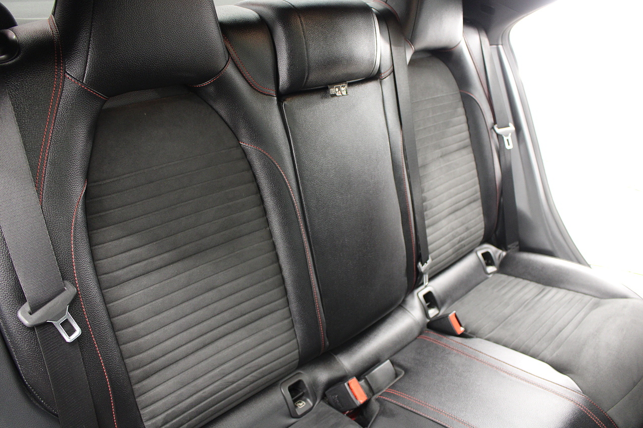 As we move onto the interior, with sports seats trimmed black leather and alcantara, and the front seats are also heated and added practicality with isofix anchorage points. This Mercedes has all the mod con’s you’d expect, in the centre of the dashboard there is a large display unit with, satellite navigation, DAB radio, bluetooth telephone connection, apple car play, android auto, beautiful ambient lighting plus handy driver aids such as cruise control and front and rear parking sensors with rear camera.