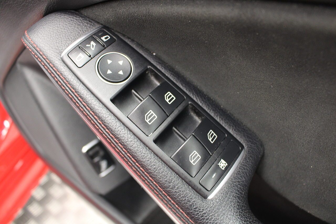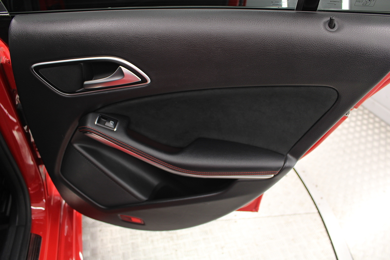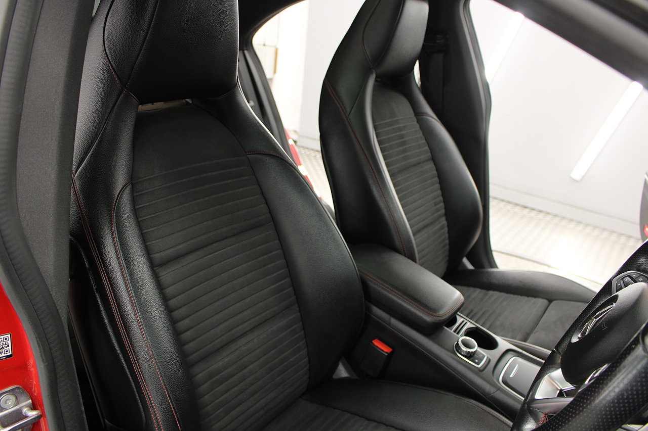 As we move onto the interior, with sports seats trimmed black leather and alcantara, and the front seats are also heated and added practicality with isofix anchorage points. This Mercedes has all the mod con’s you’d expect, in the centre of the dashboard there is a large display unit with, satellite navigation, DAB radio, bluetooth telephone connection, apple car play, android auto, beautiful ambient lighting plus handy driver aids such as cruise control and front and rear parking sensors with rear camera.