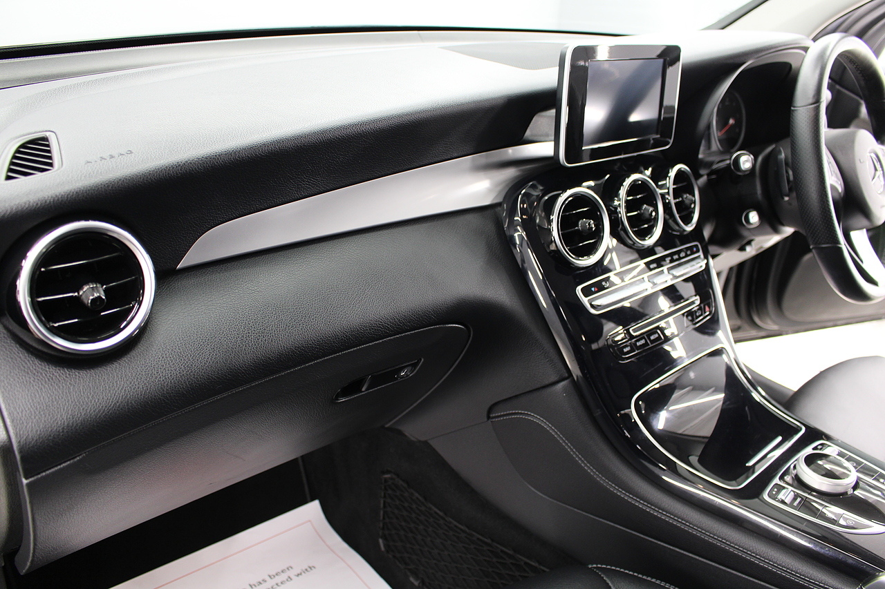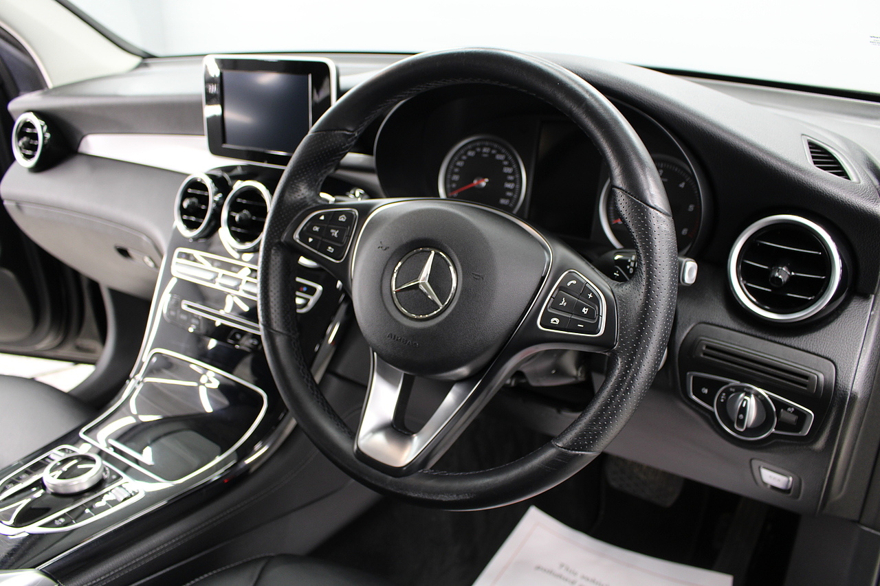 To the inside premium materials are used as you'd expect, with supportive and comfortable leather seats with heated option along with power adjustment, a large full colour screen located in the middle of the dash finished in the beautiful gloss black. Additionally, this GLC also comes with air conditioning, Bluetooth connectivity with audio streaming, premium sound system, full colour screen with satellite navigation and rear parking camera and also cruise control. The Mercedes-Benz GLC is the manufacturer's volume-selling family SUV. Large enough to easily take four passengers without being an out-and-out luxury vehicle in the same way as the Mercedes-Benz GLE. It's the SUV equivalent to the popular C-Class saloon, in a way, and shares its underpinnings and interior with that model.