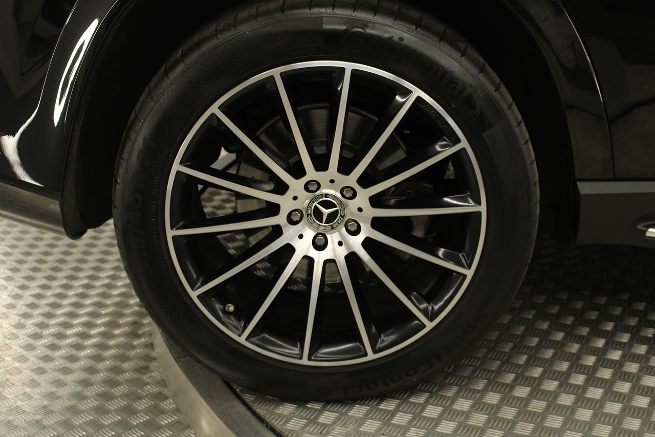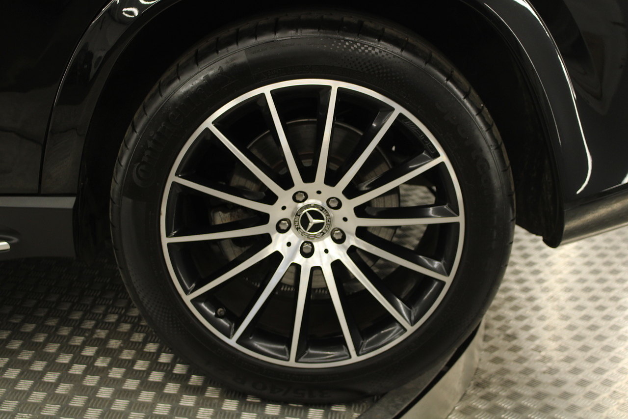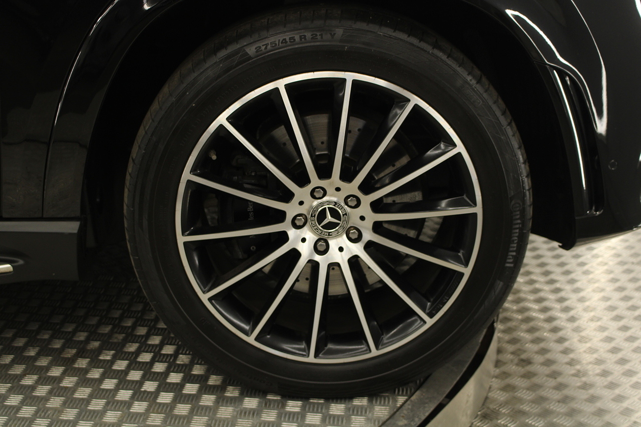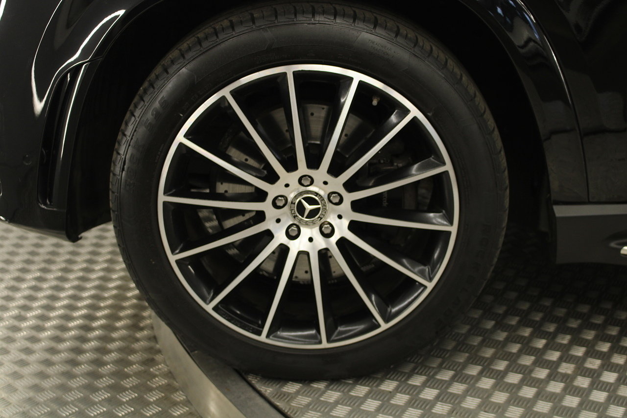 To the outside, finished in the gorgeous obsidian black bodywork, with the 21'' diamond cut multi spoke alloy wheels, and the privacy glass, which really sets off this fantastic looking GLE.