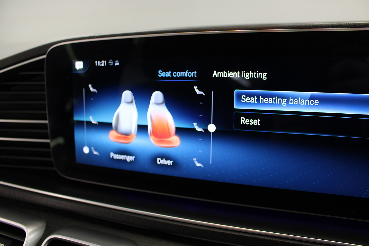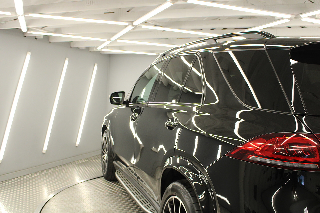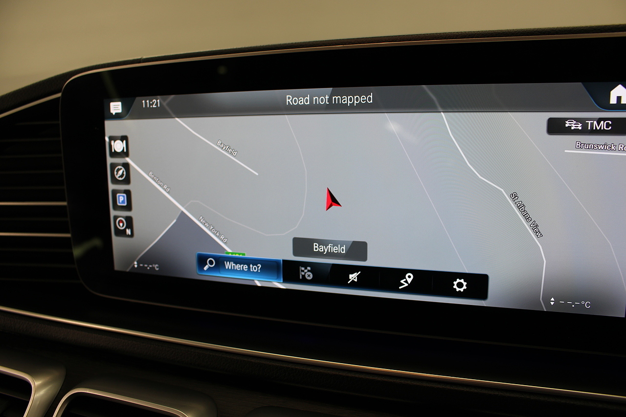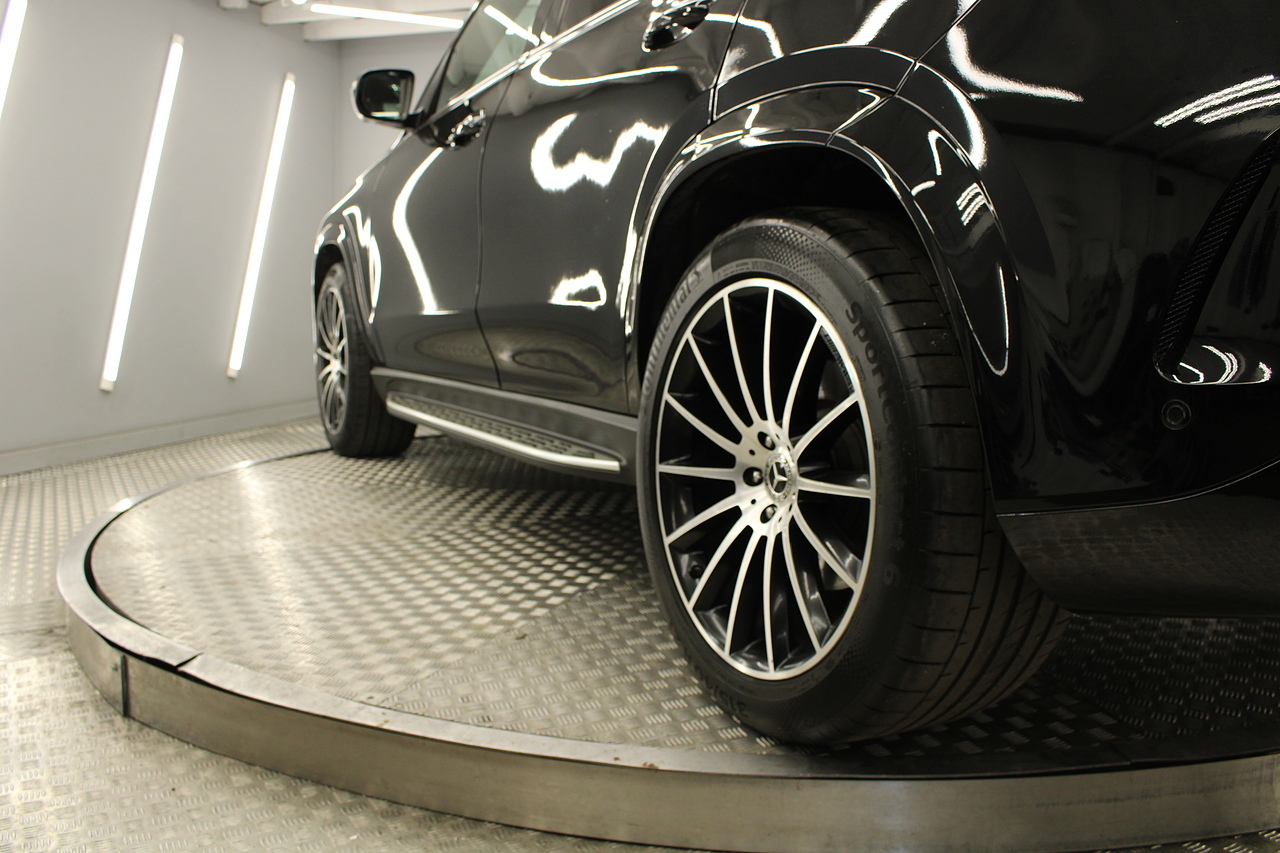 To the outside, finished in the gorgeous obsidian black bodywork, with the 21'' diamond cut multi spoke alloy wheels, and the privacy glass, which really sets off this fantastic looking GLE.