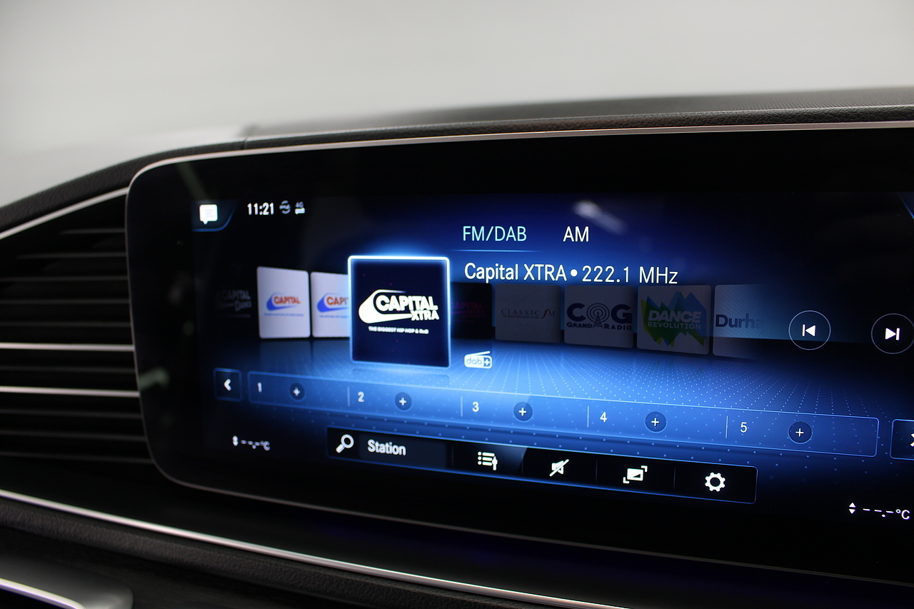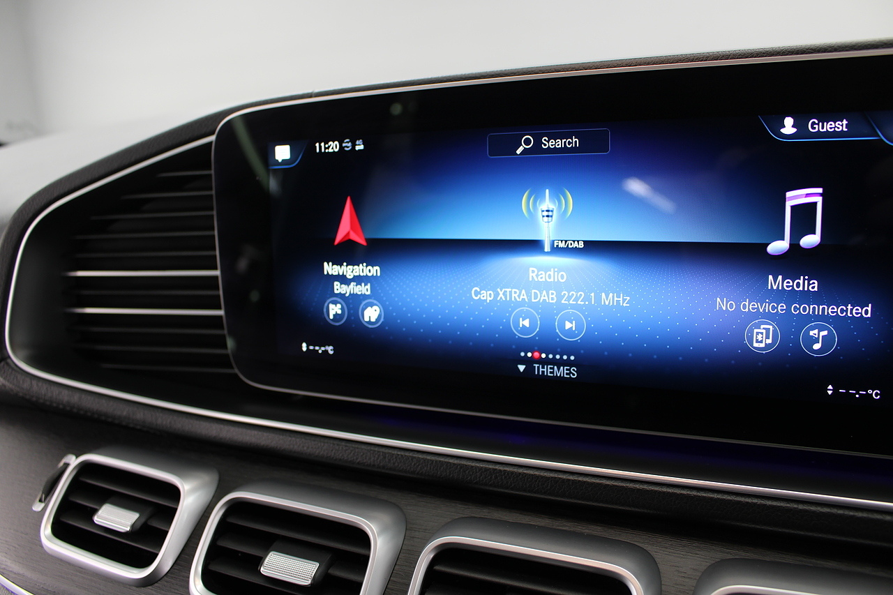 To the inside premium materials are used as you'd expect, with supportive and comfortable leather seats with heated option with power adjustment front and rear, 3rd row seating making this a 7 seater, a large full colour screen located in the middle of the dash which incorporates satellite navigation, DAB radio, apple car play, android auto, Bluetooth connectivity with audio streaming, premium sound system and driver aids such as cruise control, attention assist, lane keeping, traffic sign recognition, rear parking camera with top view. The Mercedes-Benz GLE is the manufacturer's superb luxury family SUV.