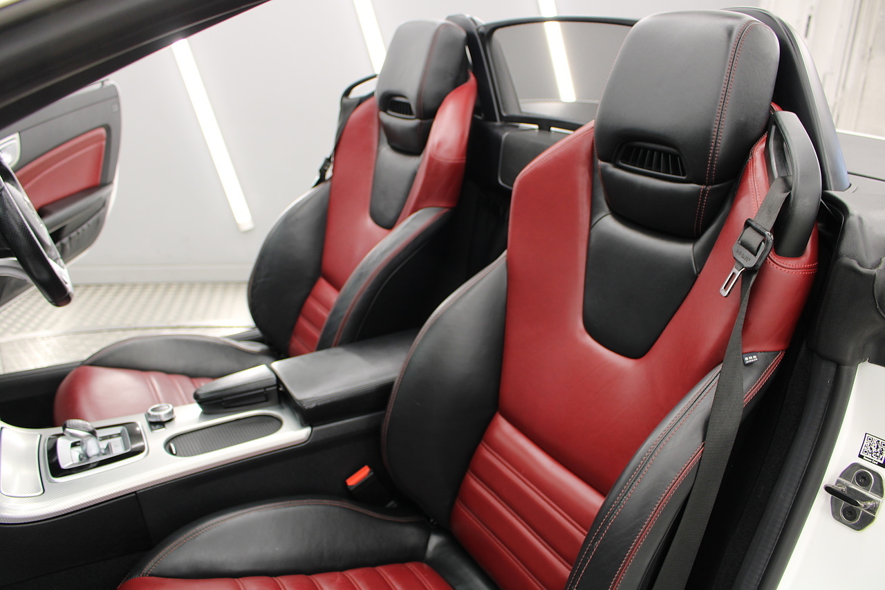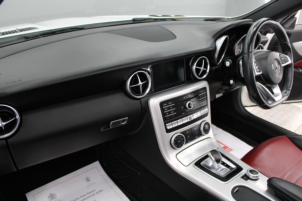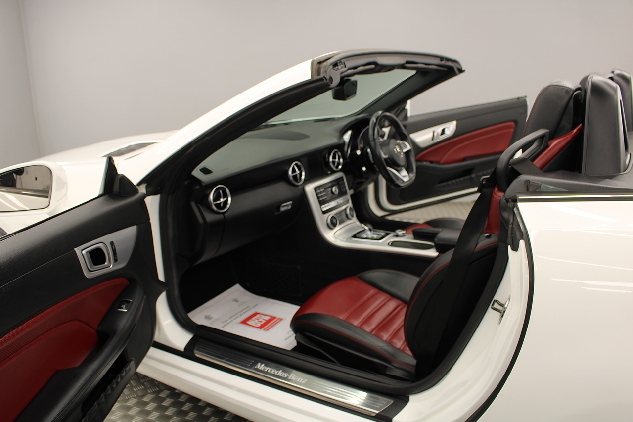 The interior is trimmed in stunning black and deep red leather interior, with the air scarf, cruise control, air conditioning, CD Radio with MP3 functionality, satellite navigation, cruise control, To celebrate its 125th anniversary year in 2011, the SLC has been given a classic face, resembling the legendary 190 SL from the 1950s which is regarded by many enthusiasts as being the original 'SLC'. The SLC has always been one of the most interesting cars when it comes to new technology: the first SLK (1996) had the first ever hard folding roof that could be opened and closed by the touch of a button.