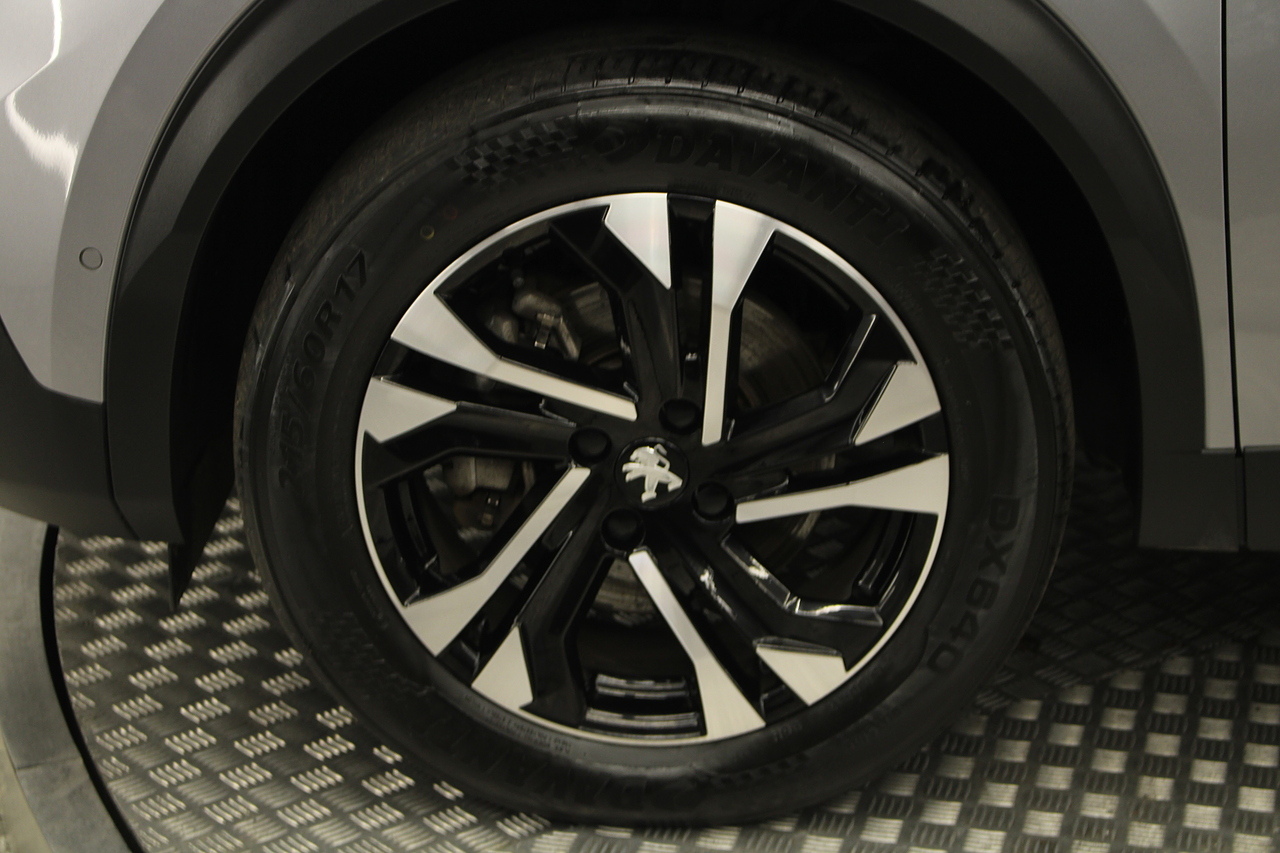 To the outside we see the metallic grey paintwork, the diamond cut 17 inch alloy wheels and the satin finished roof bars adding extra practicality to this already practical car.