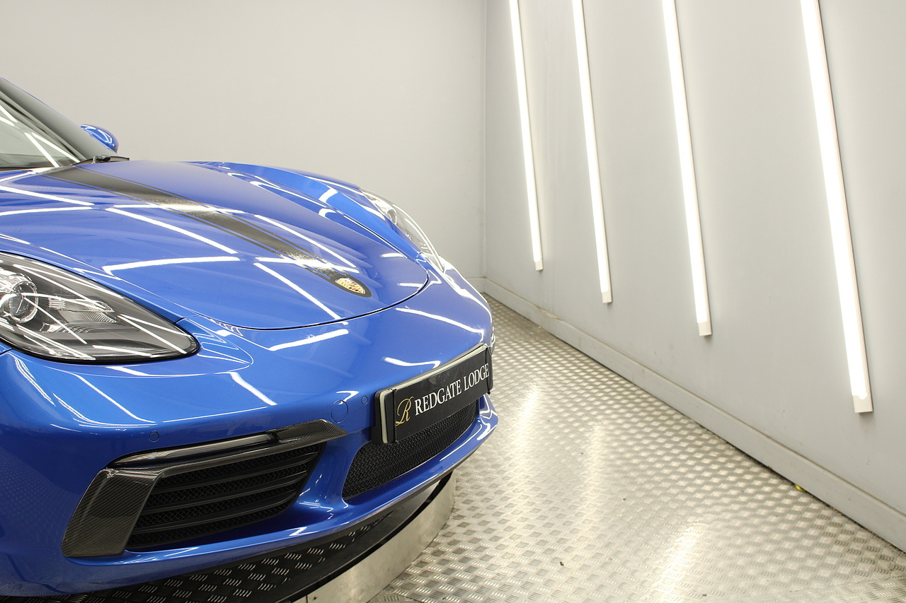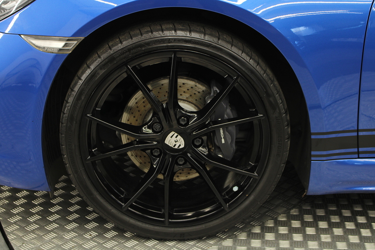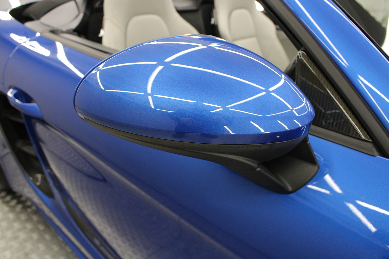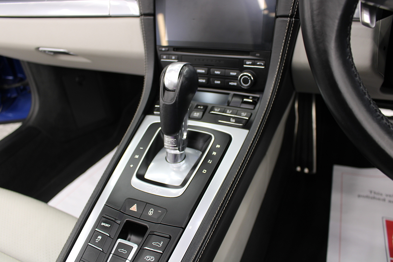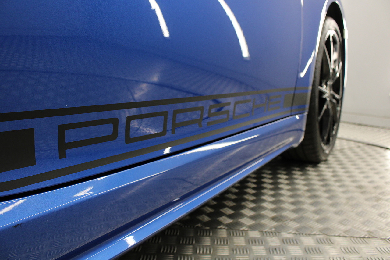 Finished in the beautiful sapphire blue with unmistakable Porsche styling 20’’ Carrera S wheels in gloss black, also with carbon fibre side vents and trims around the car and black power folding hood.