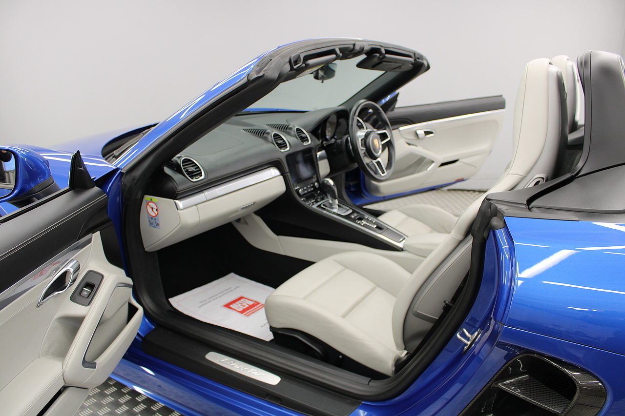 This is something rather special, our beautiful low mileage 2017 718 Porsche Boxster, this is a superb example with only 29,000 miles, It comes with a brilliant specification with £12,500 in factory options. The cars performance needs no introduction, powered by the 2.0 turbo engine producing an excellent 296 BHP, capable of 0-60 in just 4.9 seconds and go on to 170 MPH and sound superb with the sports exhaust option.