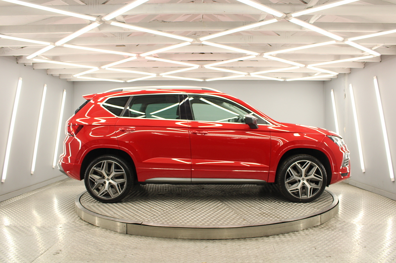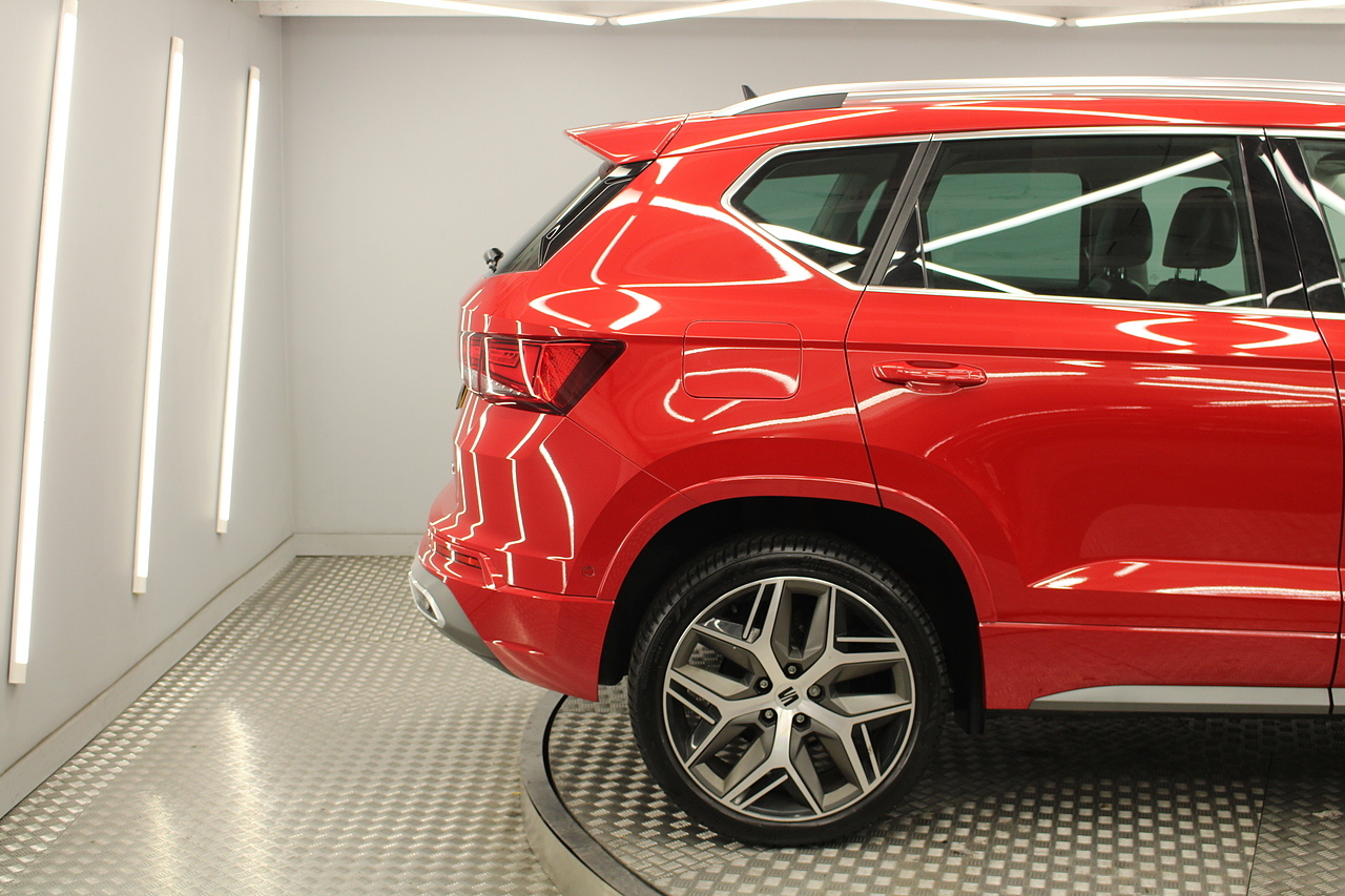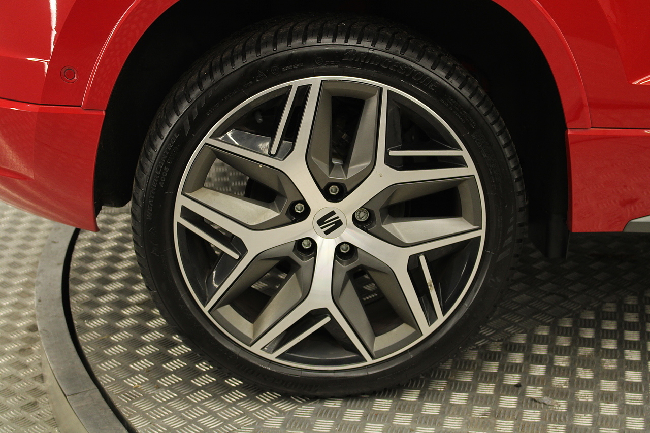 Finished in the stunning velvet red metallic the Ateca does have sporty styling, as it is the FR Sport model, in addition to this, the Ateca has diamond cut 19'' wheels, tinted rear windows, aluminium roof bars and rear spoiler. This is a head turning Mini Crossover SUV.