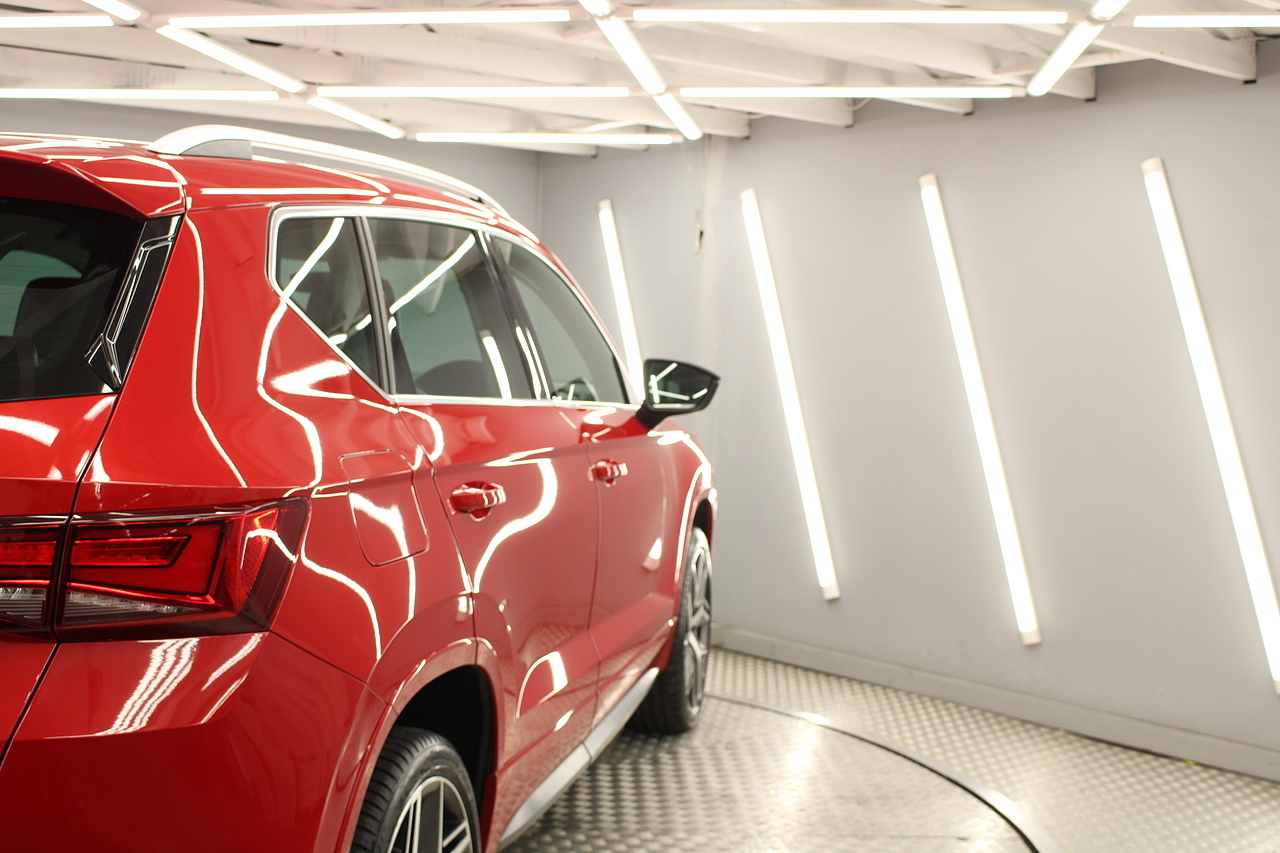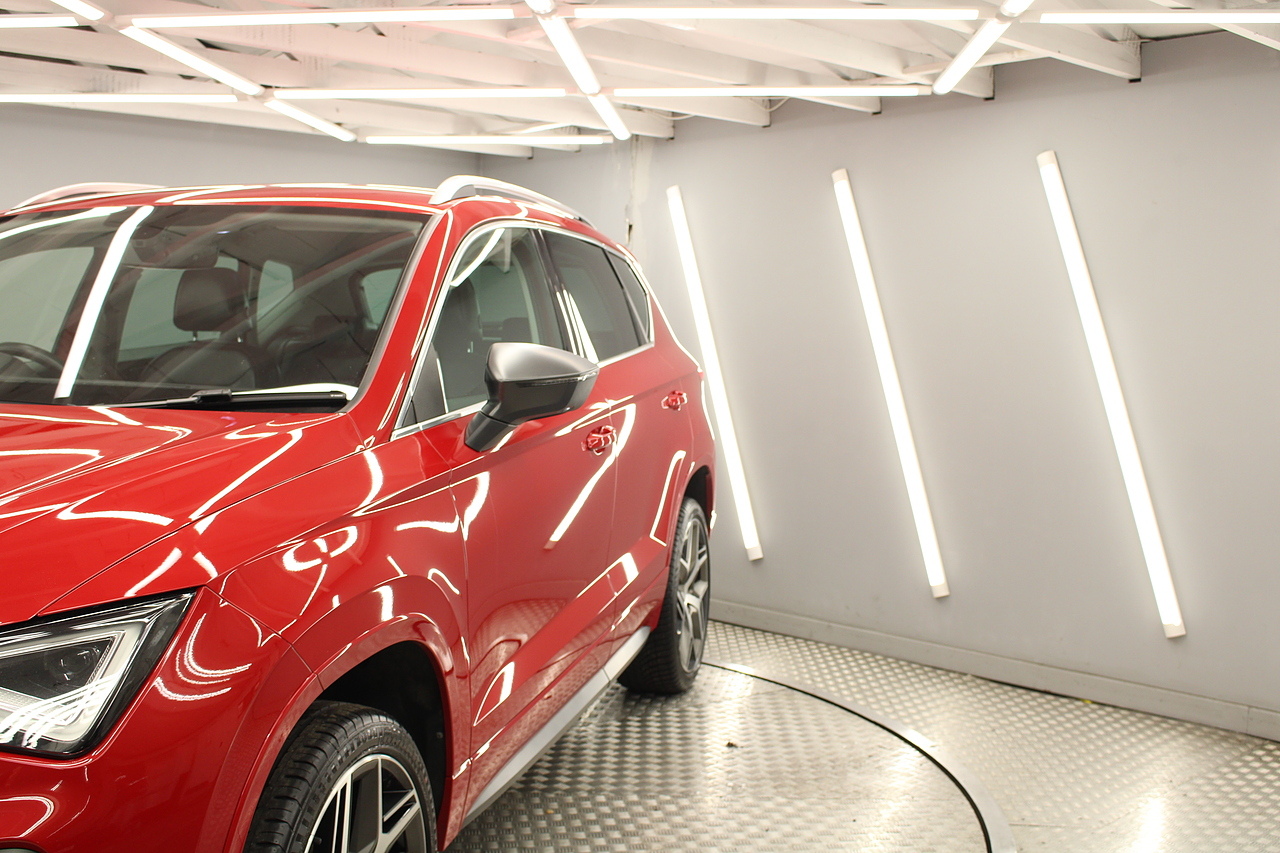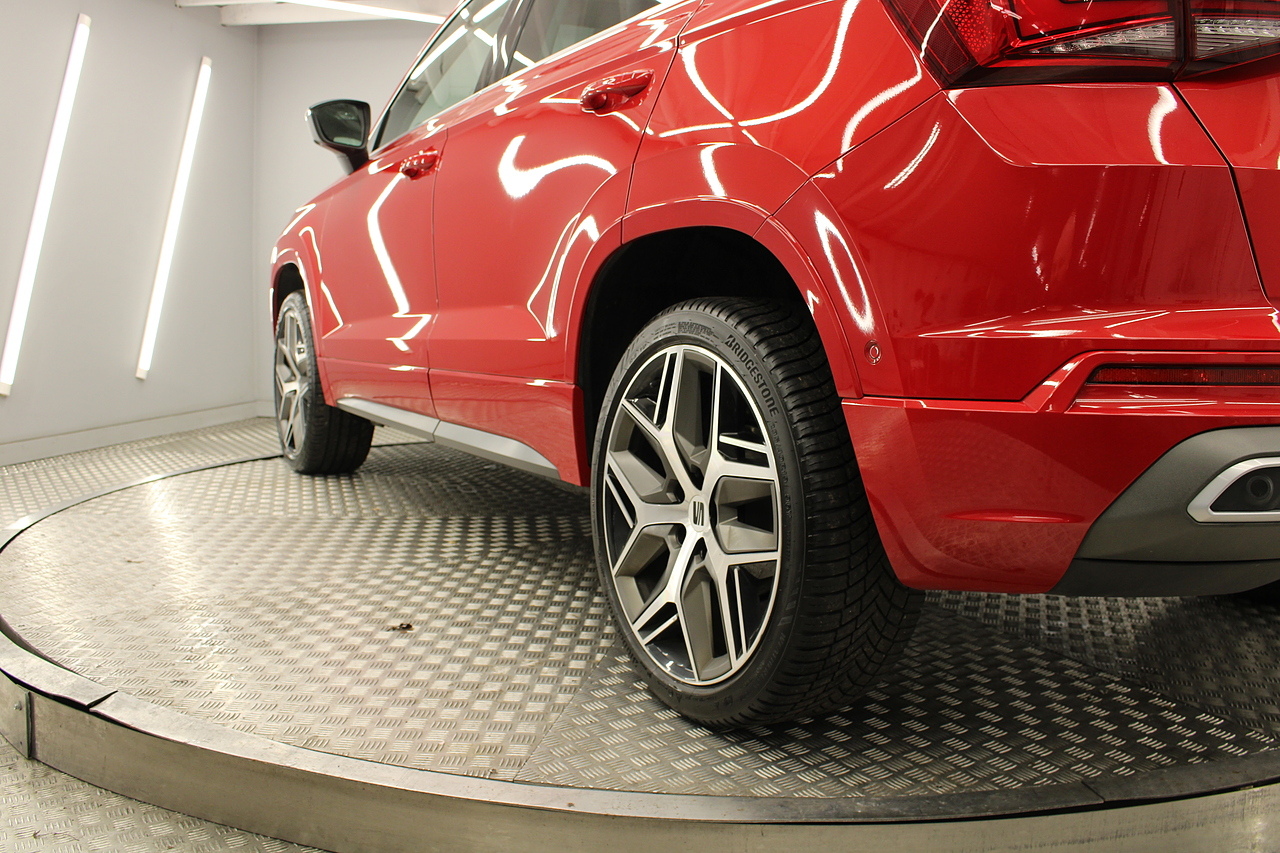 Finished in the stunning velvet red metallic the Ateca does have sporty styling, as it is the FR Sport model, in addition to this, the Ateca has diamond cut 19'' wheels, tinted rear windows, aluminium roof bars and rear spoiler. This is a head turning Mini Crossover SUV.