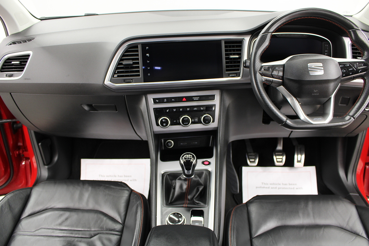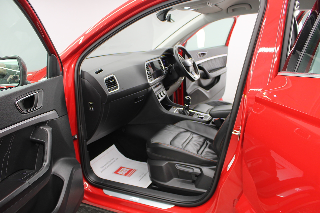 The specification of the Ateca includes, Satellite Navigation, full leather interior with heated front seat option and power adjustment with memory settings, Digital cockpit, DAB radio, apple car play and android auto, satellite navigation, adaptive cruise control, LED headlights, dual zone climate, and of course front and rear parking sensors. So if you are looking for a great looking and secure family SUV, you've come to the right place.