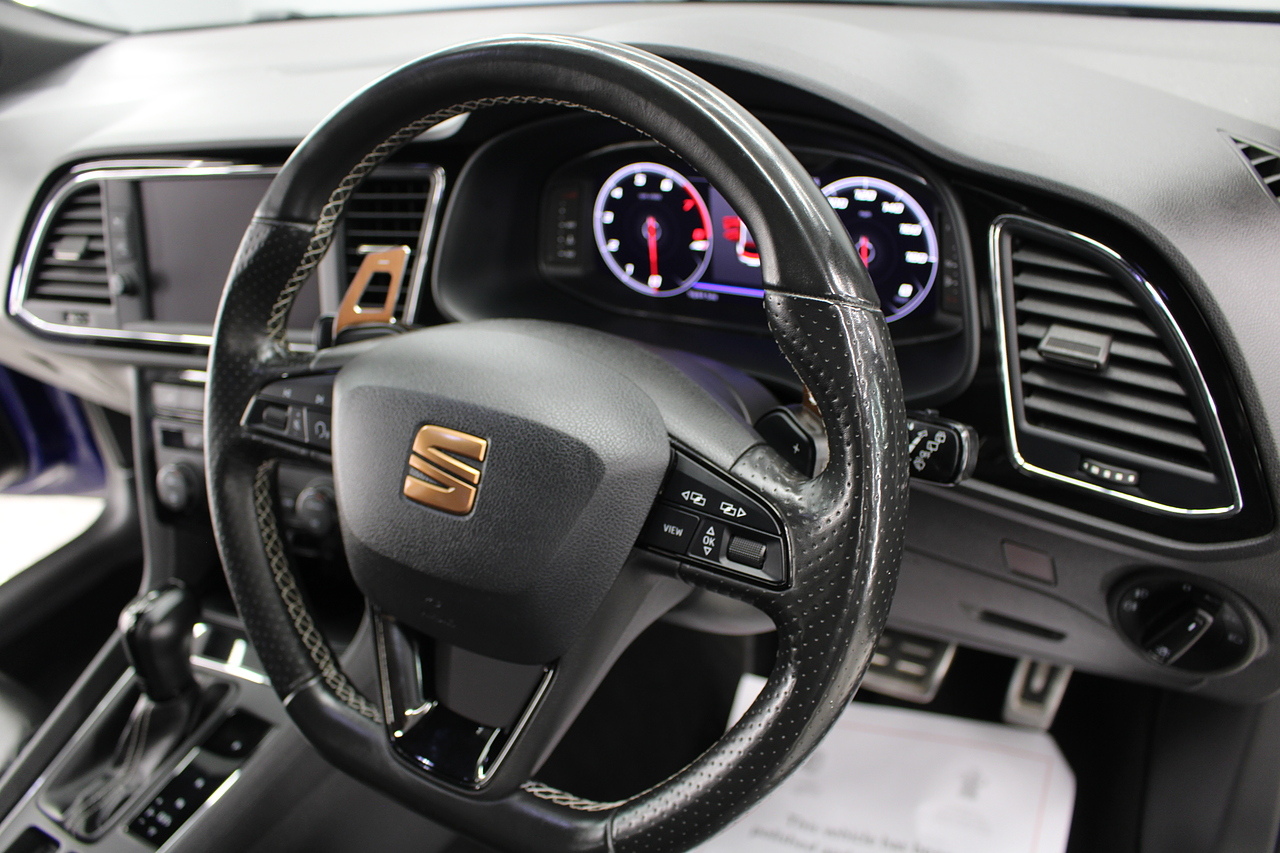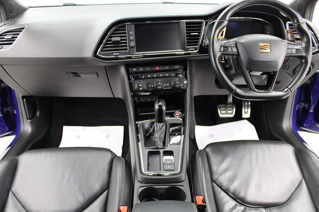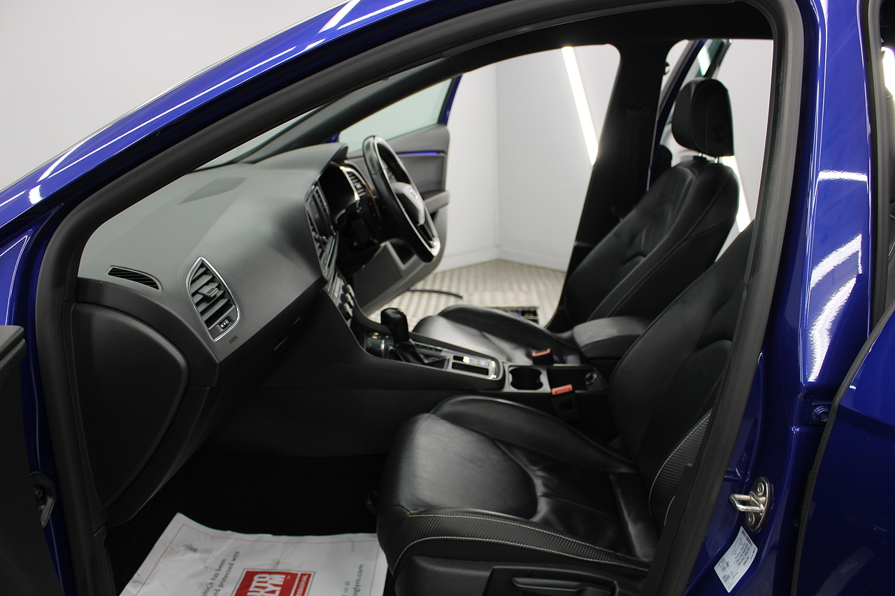 To the interior, you'll see the very comfortable and supportive sports seats trimmed in black leather, with the seats having power adjustment and are also heated, beautiful touches of piano black across the centre console, Bluetooth connectivity, full colour touch screen with DAB radio, voice command, as well as also benefitting from rear parking sensors. If the prodigious FR version simply is not enough for you, it is time you meet its more muscular brother, the Seat Leon Cupra. It's also quite a lot faster on the road than offerings such as the Ford Focus ST, and comfier and more accessible than all of the above.