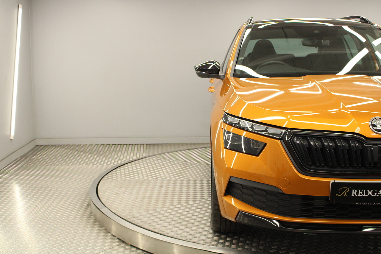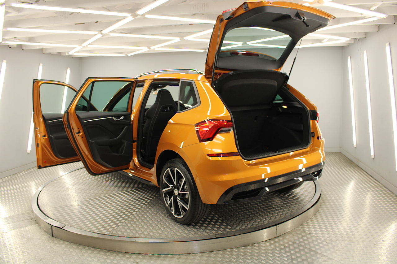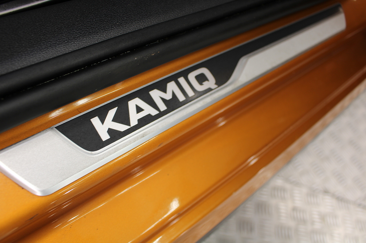 This Kamiq does comes with, sports interior with red highlights, dual zone climate control, cruise control, virtual cockpit display, DAB radio and satellite navigation, Bluetooth connectivity, steering wheel mounted controls, headlight and rain sensors, rear and forward parking aid, 12v power adapter and ISOFIX anchorage points. With sharp styling, a comfortable cabin and one of the best handling in its class, the Kamiq is a superb all round SUV. It is considerably smaller than the Kodiaq, making it much easier to drive and park, but still offers decent interior space and a large boot too.