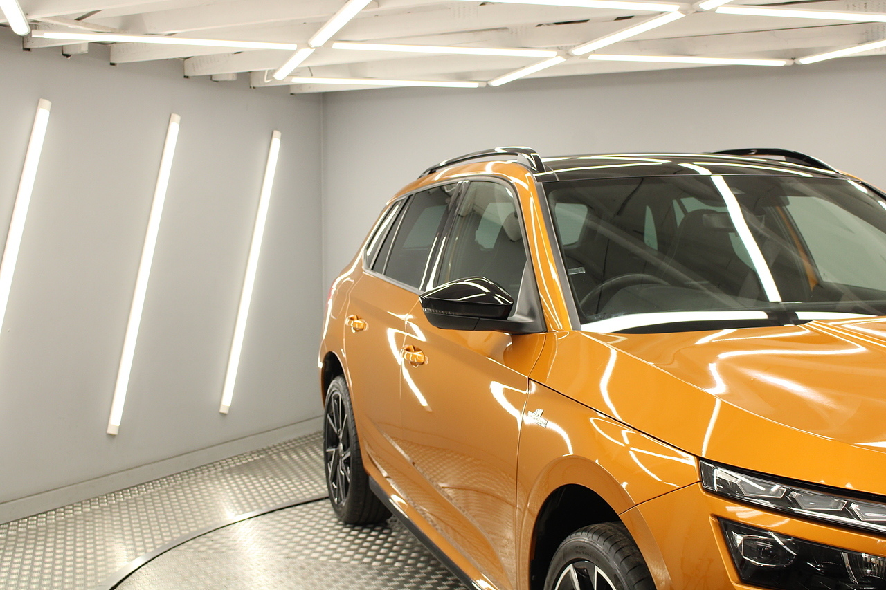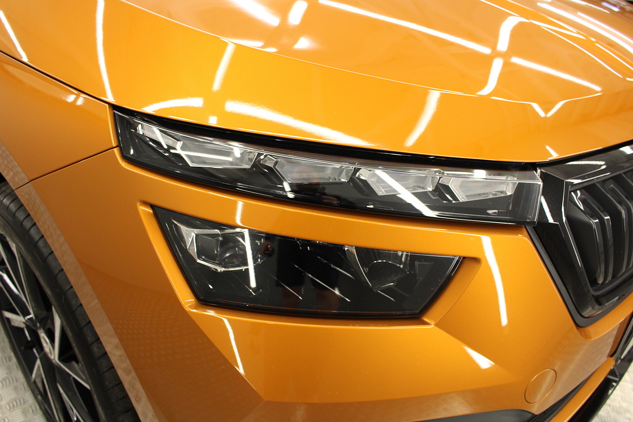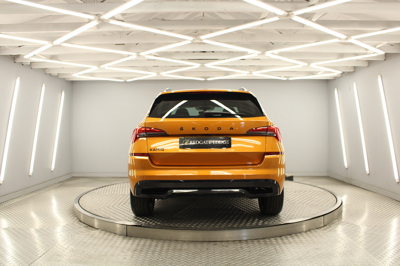 This Kamiq does comes with, sports interior with red highlights, dual zone climate control, cruise control, virtual cockpit display, DAB radio and satellite navigation, Bluetooth connectivity, steering wheel mounted controls, headlight and rain sensors, rear and forward parking aid, 12v power adapter and ISOFIX anchorage points. With sharp styling, a comfortable cabin and one of the best handling in its class, the Kamiq is a superb all round SUV. It is considerably smaller than the Kodiaq, making it much easier to drive and park, but still offers decent interior space and a large boot too.