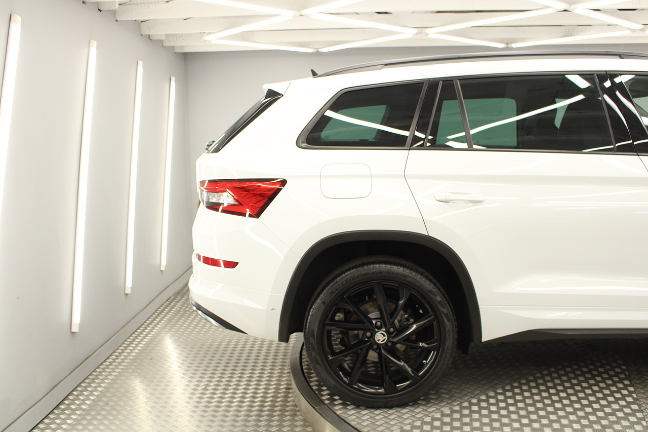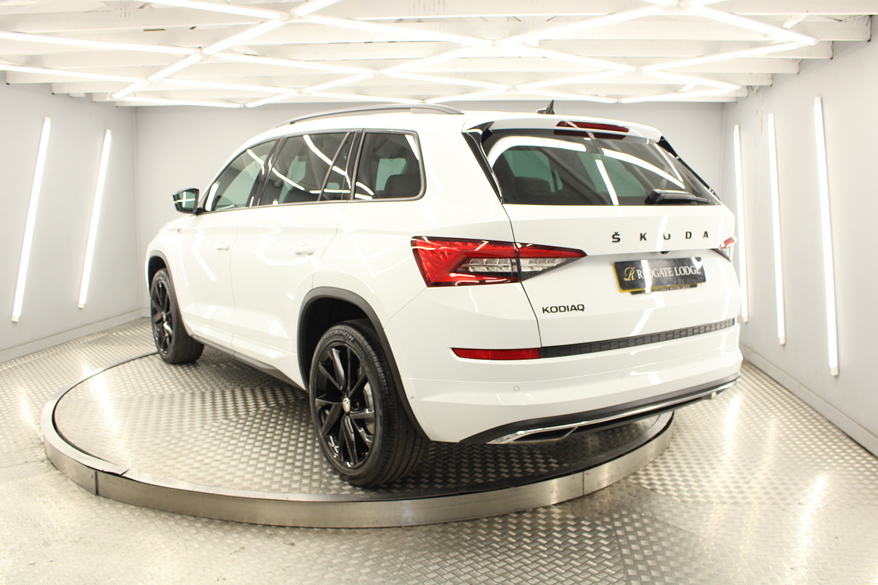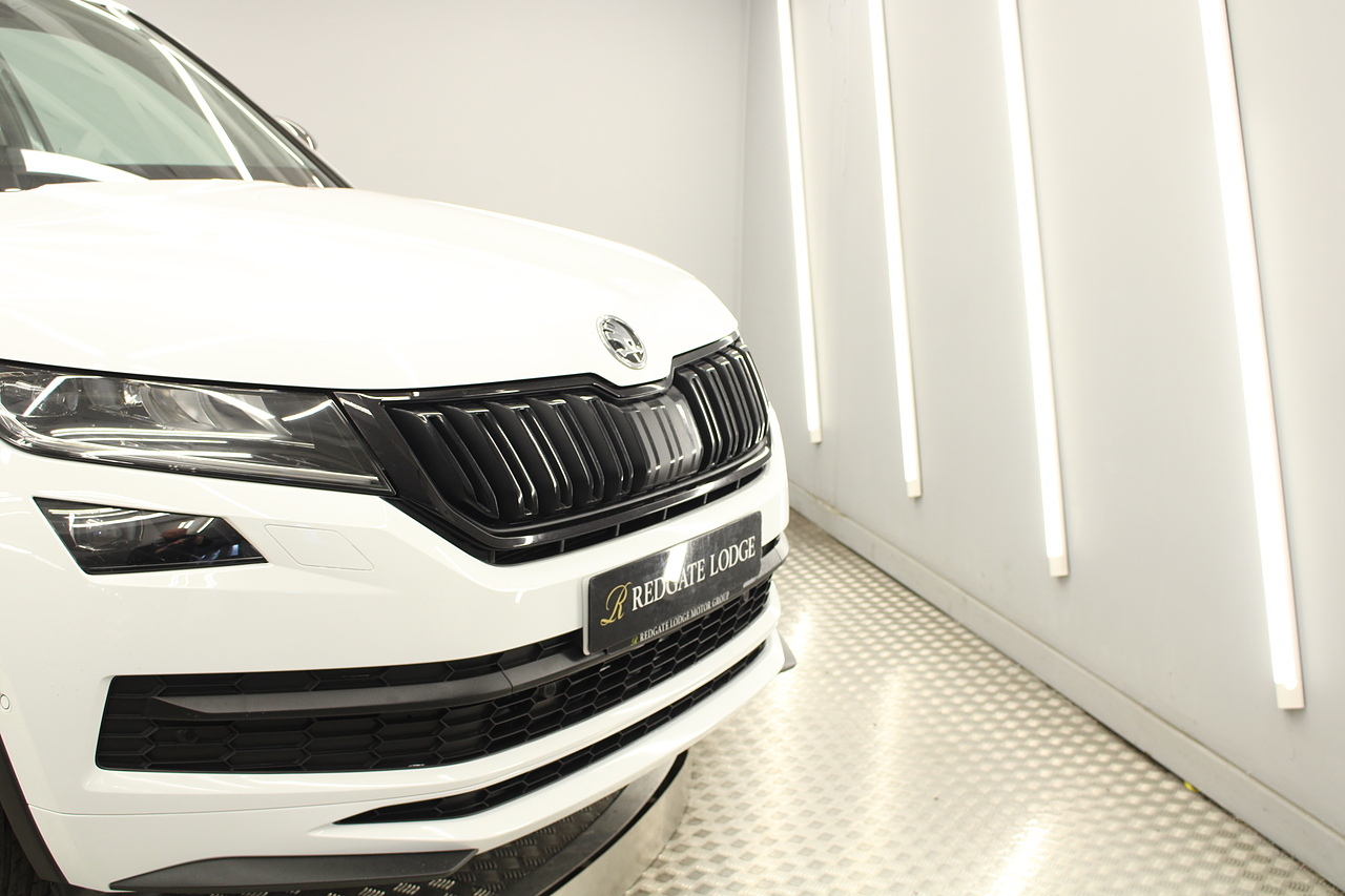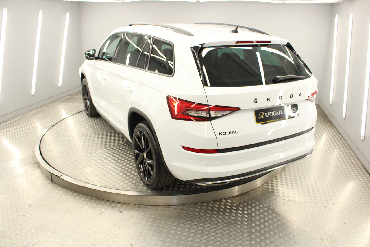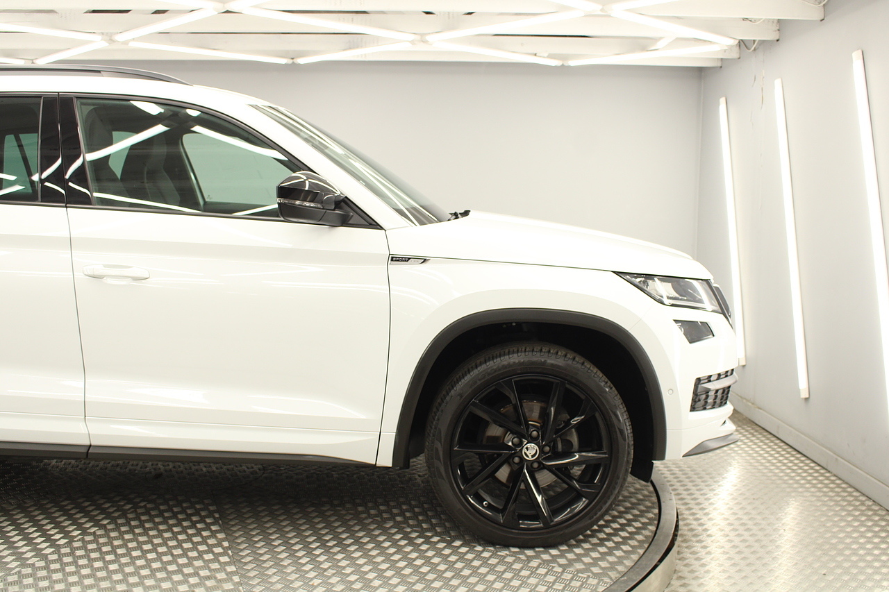 This is our fantastic looking 2021 Skoda Kodiaq Sport line, finished in the beautiful moon white this really is a fantastic looking capable SUV. Powered by the 148 BHP 1.5 TSI petrol engine with the DSG gearbox and the 4x4 system, with the added practicality of 7 seats too.