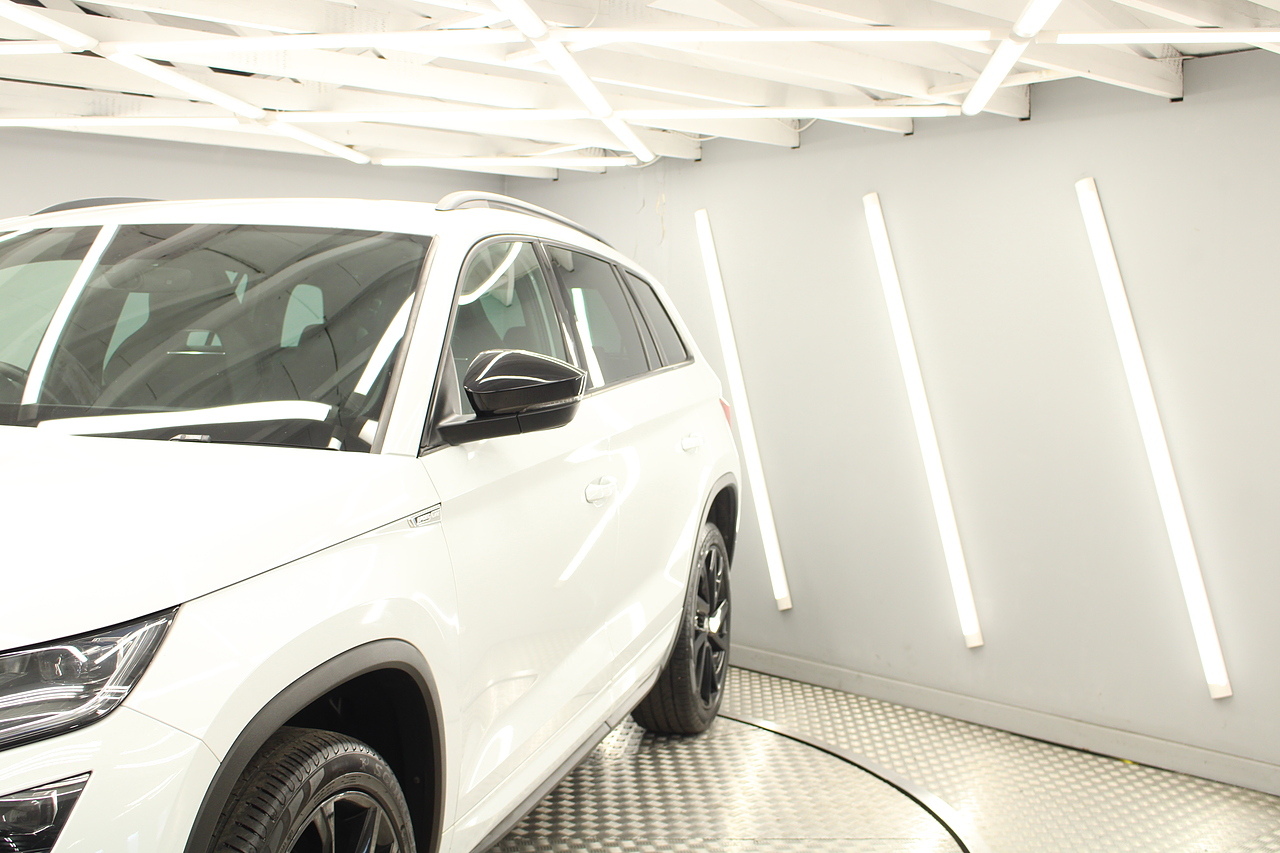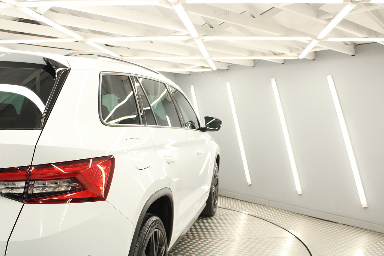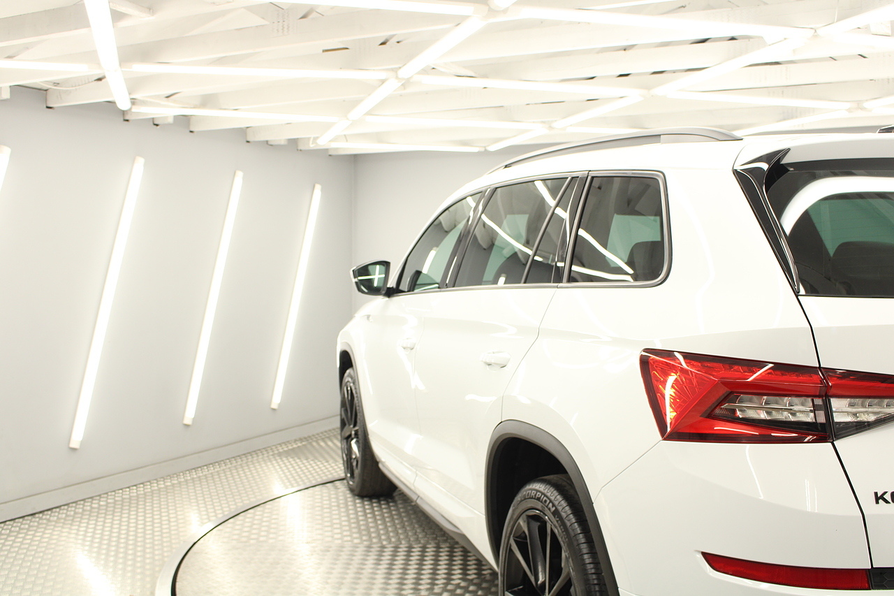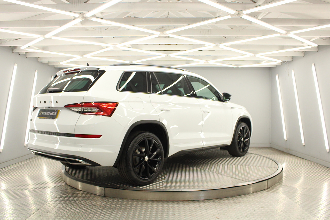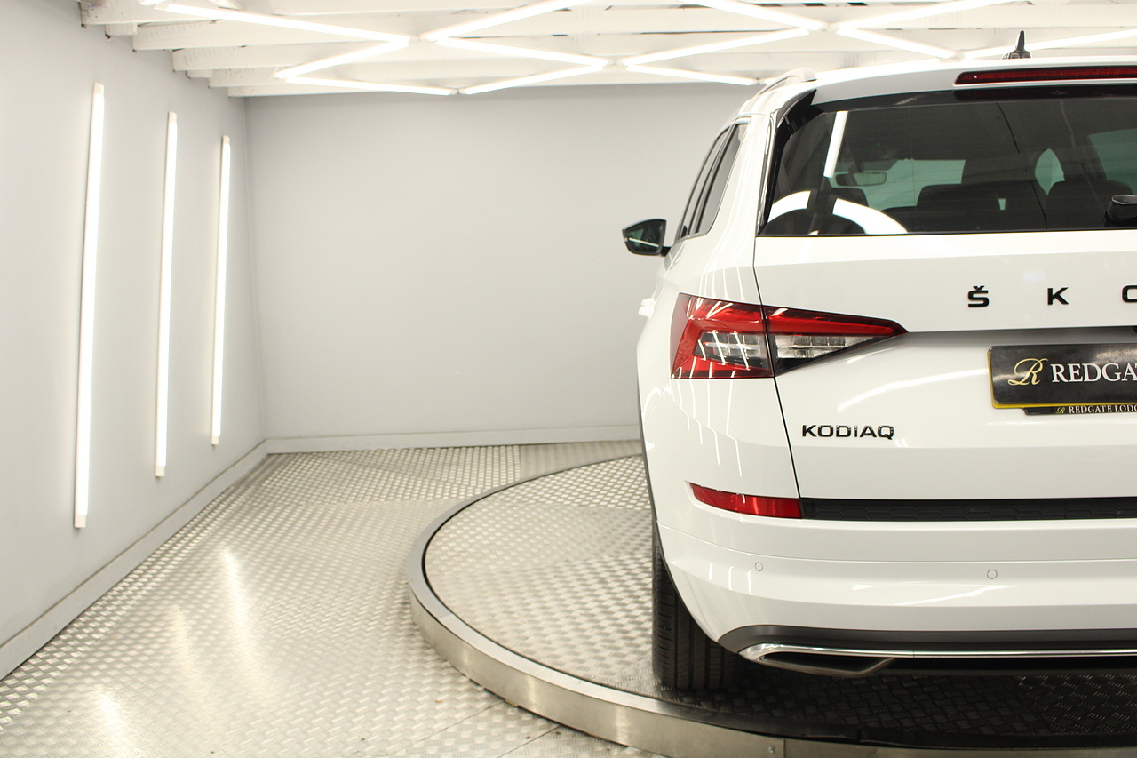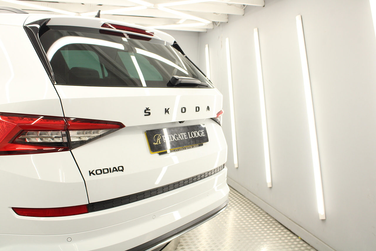 This is our fantastic looking 2021 Skoda Kodiaq Sport line, finished in the beautiful moon white this really is a fantastic looking capable SUV. Powered by the 148 BHP 1.5 TSI petrol engine with the DSG gearbox and the 4x4 system, with the added practicality of 7 seats too.