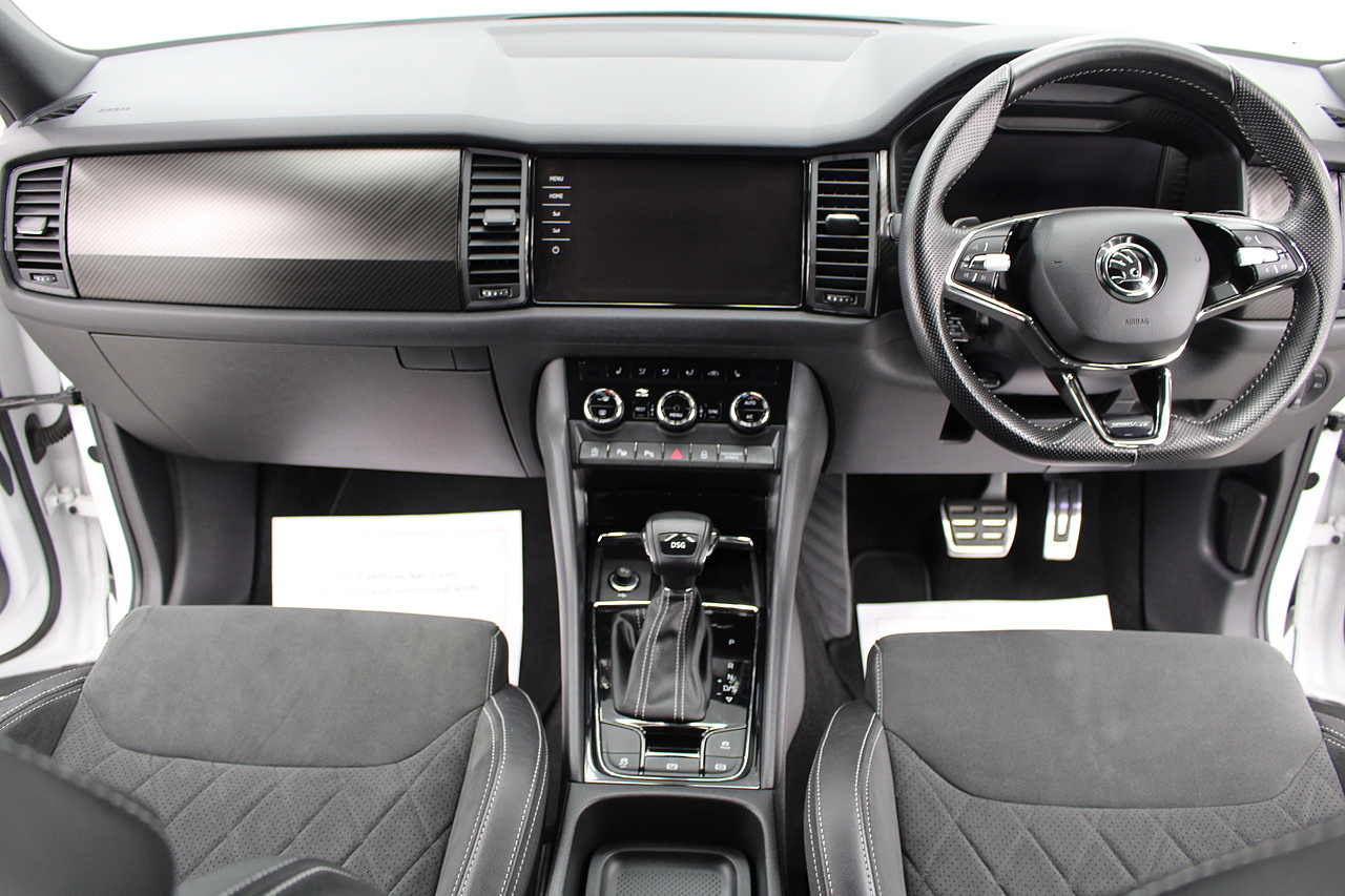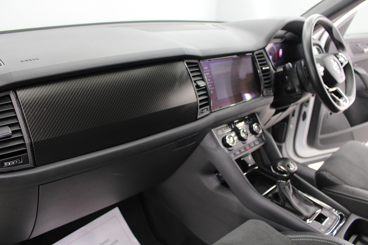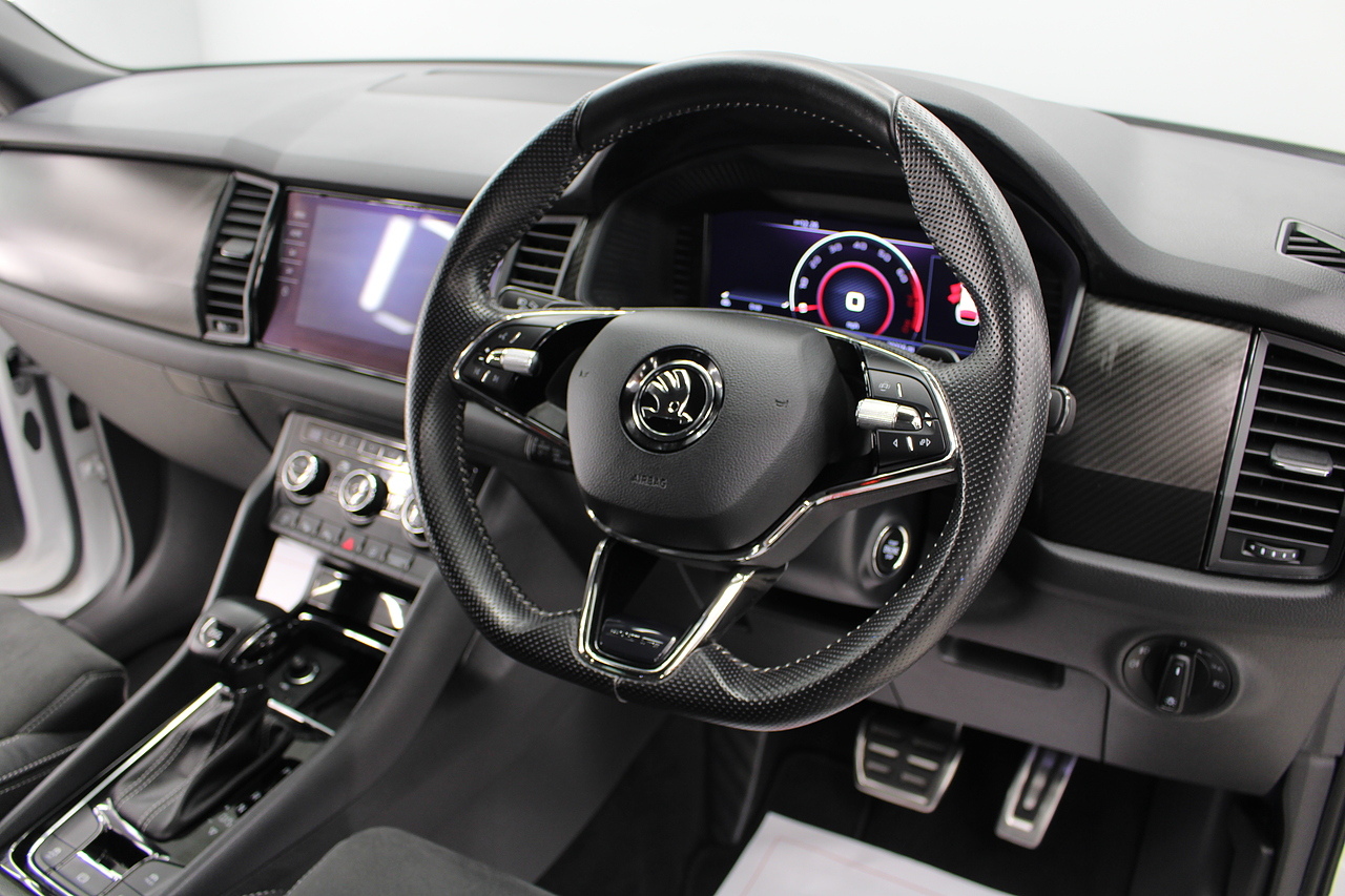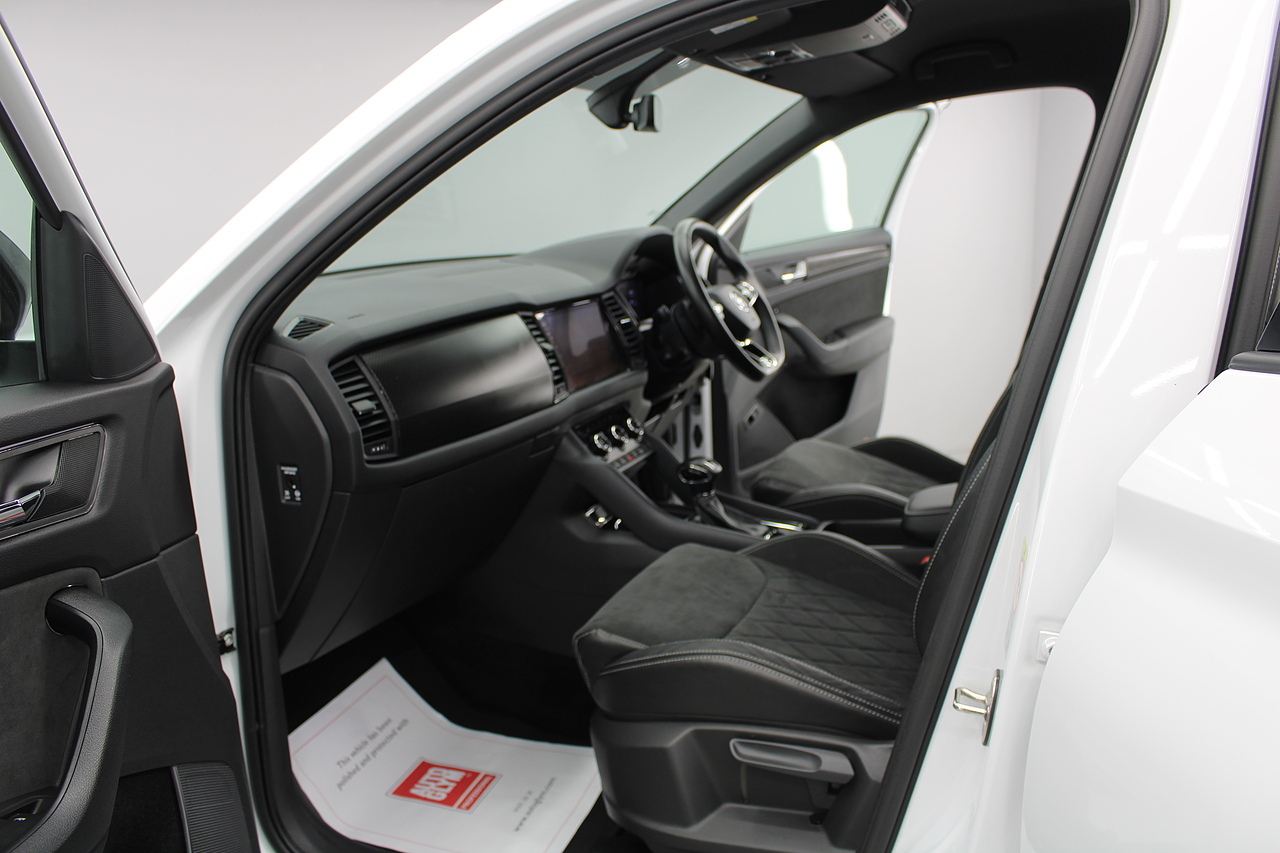 The specifications of this particular example include, VRS look sports seats with heated front seat option, 20'' alloy wheels and with gloss black exterior highlights, virtual cockpit display, full colour screen display with Columbus satellite navigation and apple car play, rear park sensors with rear camera, dual zone air conditioning, Bluetooth telephone connectivity, canton sound system upgrade, adaptive cruise control, LED lighting, well equipped and powered by some impressive engines as it's pitted against some of the best 4x4s around including the BMW X's, Honda CR-V and the Ford Kuga. Objectively the Kodiaq is a strong and practical family hauler that's well-suited to modern life with kids. But the fact that it has seven-seats and costs less than many of its key rivals makes it a really compelling answer to your new car question. Despite its attention-grabbing prices, the Kodiaq is anything but a budget car and feels a rung or two above the Nissan X-Trail, while on par with the latest Kia Sorento and Hyundai Santa Fe. Inside it is well built, comfortable and there is plenty of room.