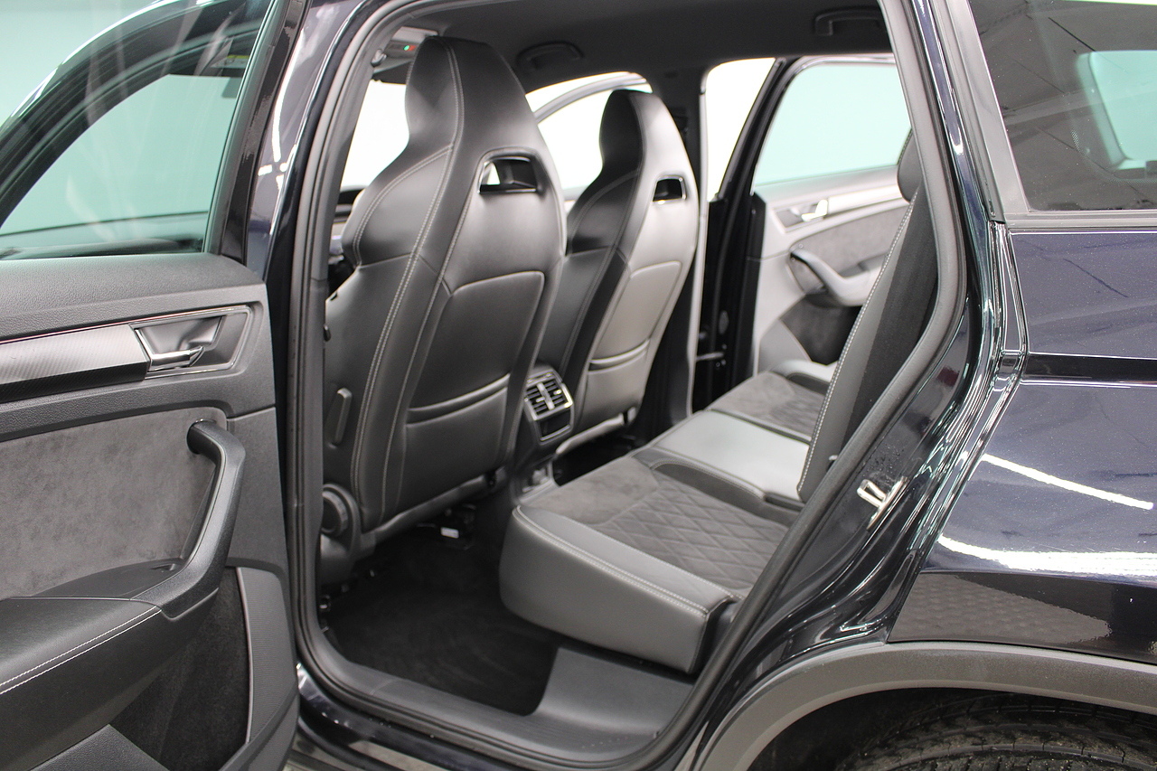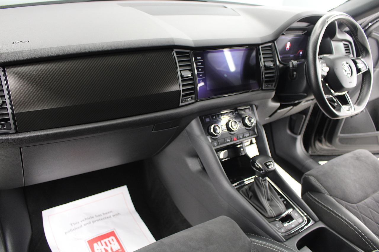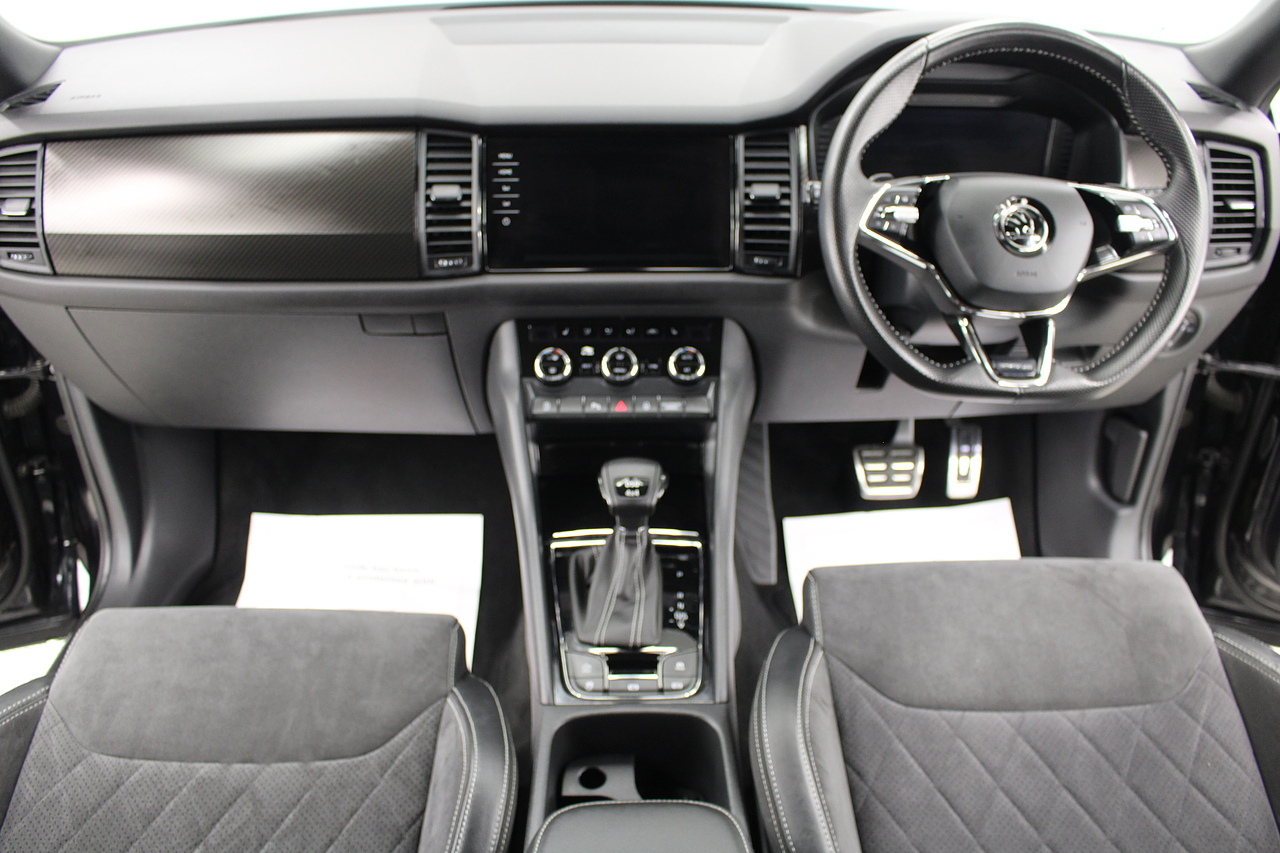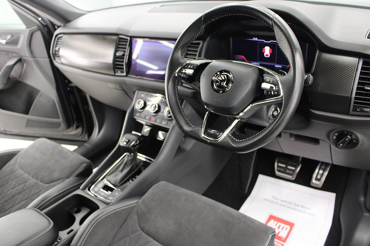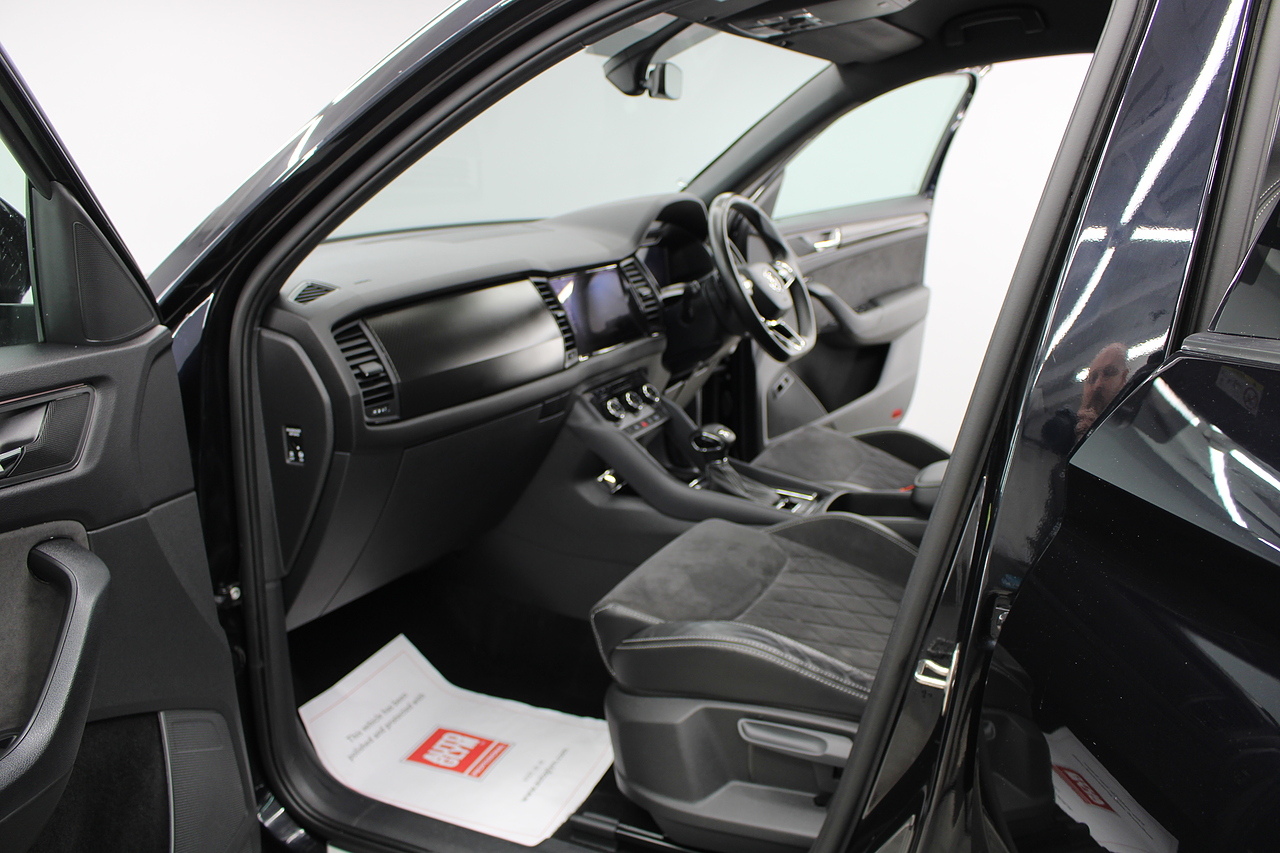 The specifications of this particular example include, VRS look sports seats with heated front seat option, 20'' alloy wheels and with some gloss black exterior highlights, full colour screen display with Columbus satellite navigation and apple car play, rear park sensors with rear camera, dual zone air conditioning, Bluetooth telephone connectivity, canton sound system upgrade, adaptive cruise control, LED lighting, well equipped and powered by some impressive engines as it's pitted against some of the best 4x4s around including the BMW X's, Honda CR-V and the Ford Kuga. Objectively the Kodiaq is a strong and practical family hauler that's well-suited to modern life with kids. But the fact that it has seven-seats and costs less than many of its key rivals makes it a really compelling answer to your new car question. Despite its attention-grabbing prices, the Kodiaq is anything but a budget car and feels a rung or two above the Nissan X-Trail, while on par with the latest Kia Sorento and Hyundai Santa Fe. Inside it is well built, comfortable and there is plenty of room.