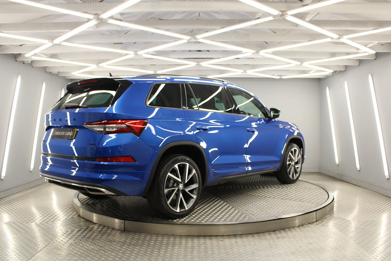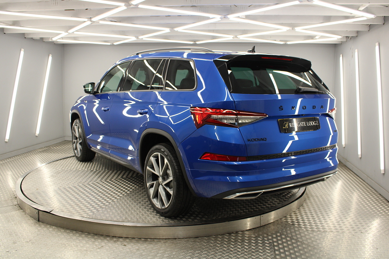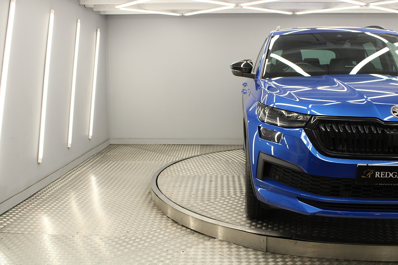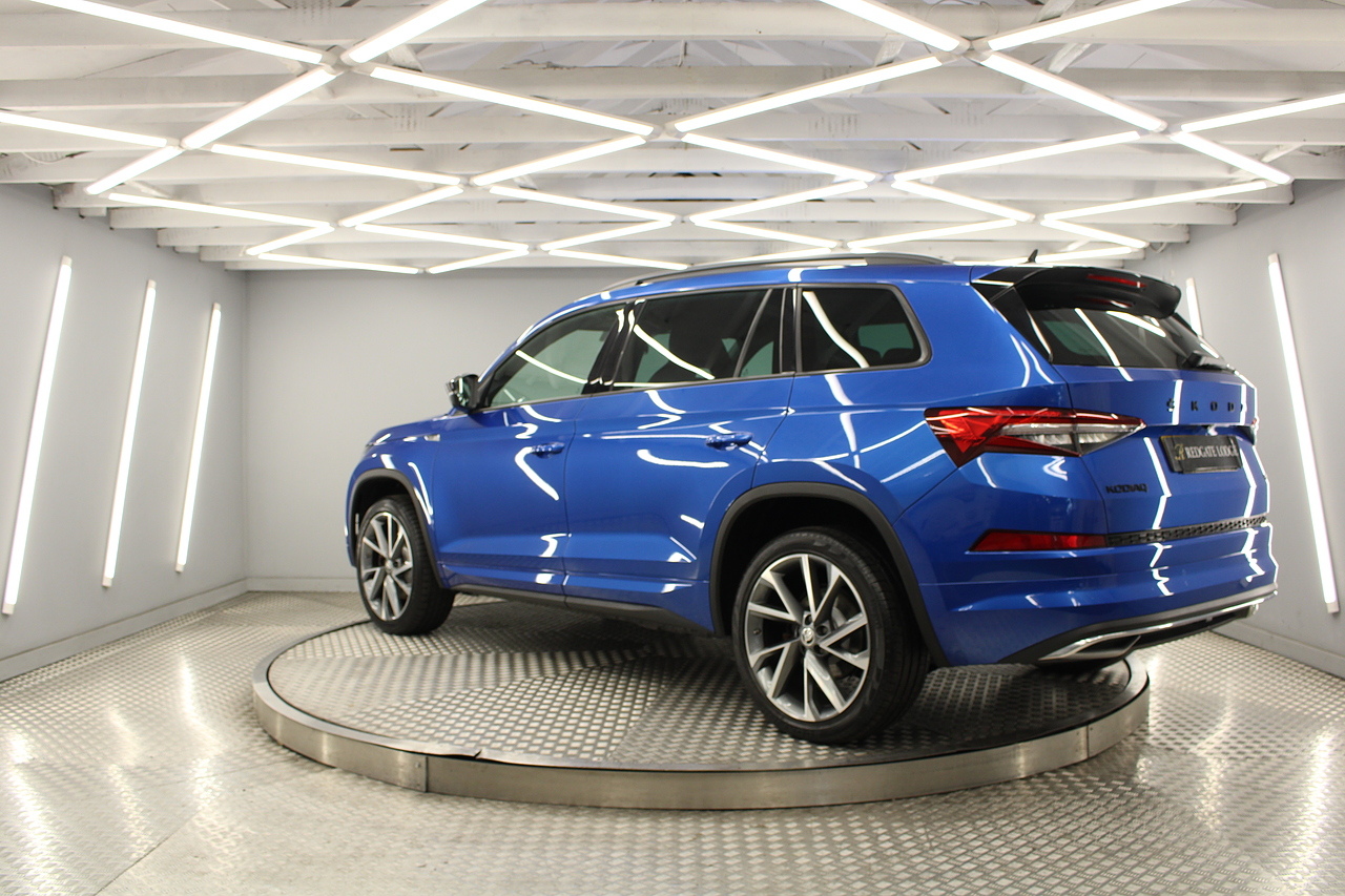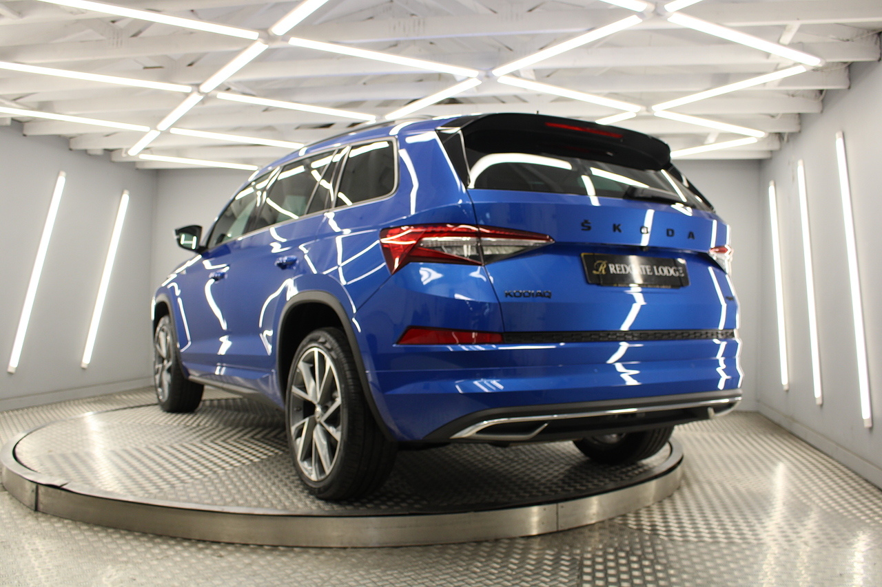 This is our fantastic looking 2021 Skoda Kodiaq Sport line, finished in the stunning race blue this really is a fantastic looking capable SUV. Powered by the 197 BHP 2.0 TDI engine with the DSG gearbox and the 4x4 system, with the added practicality of 7 seats too.