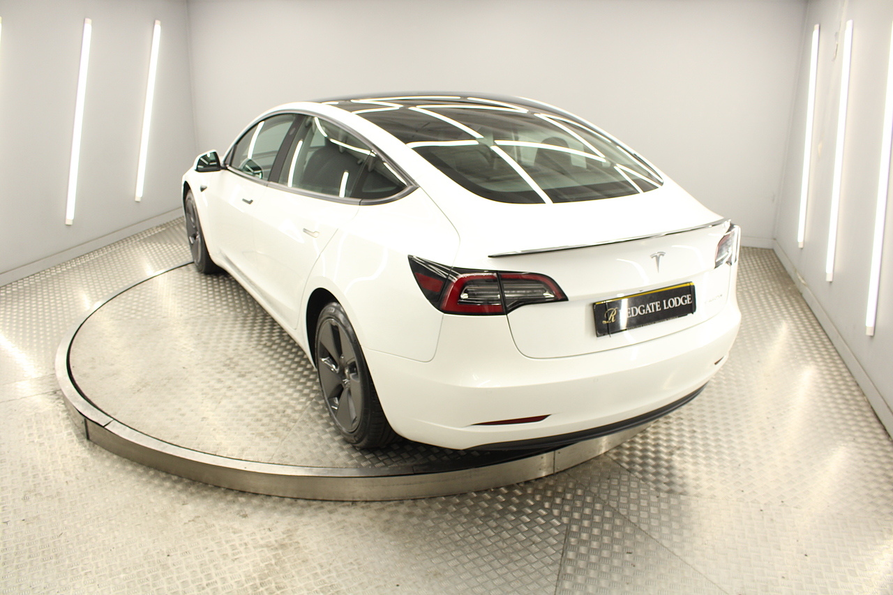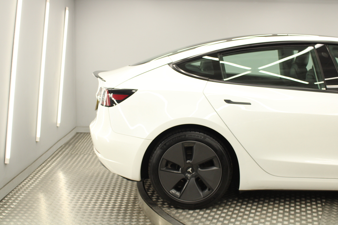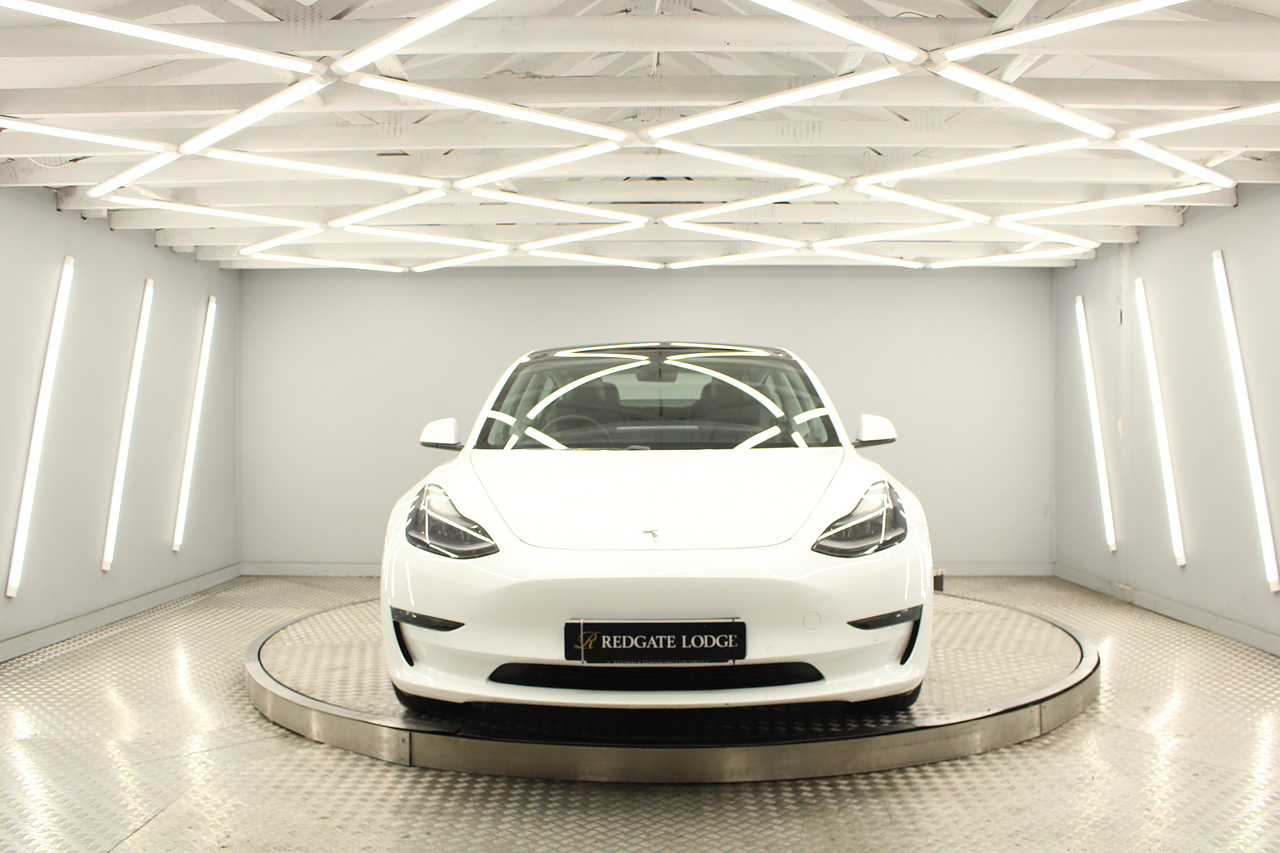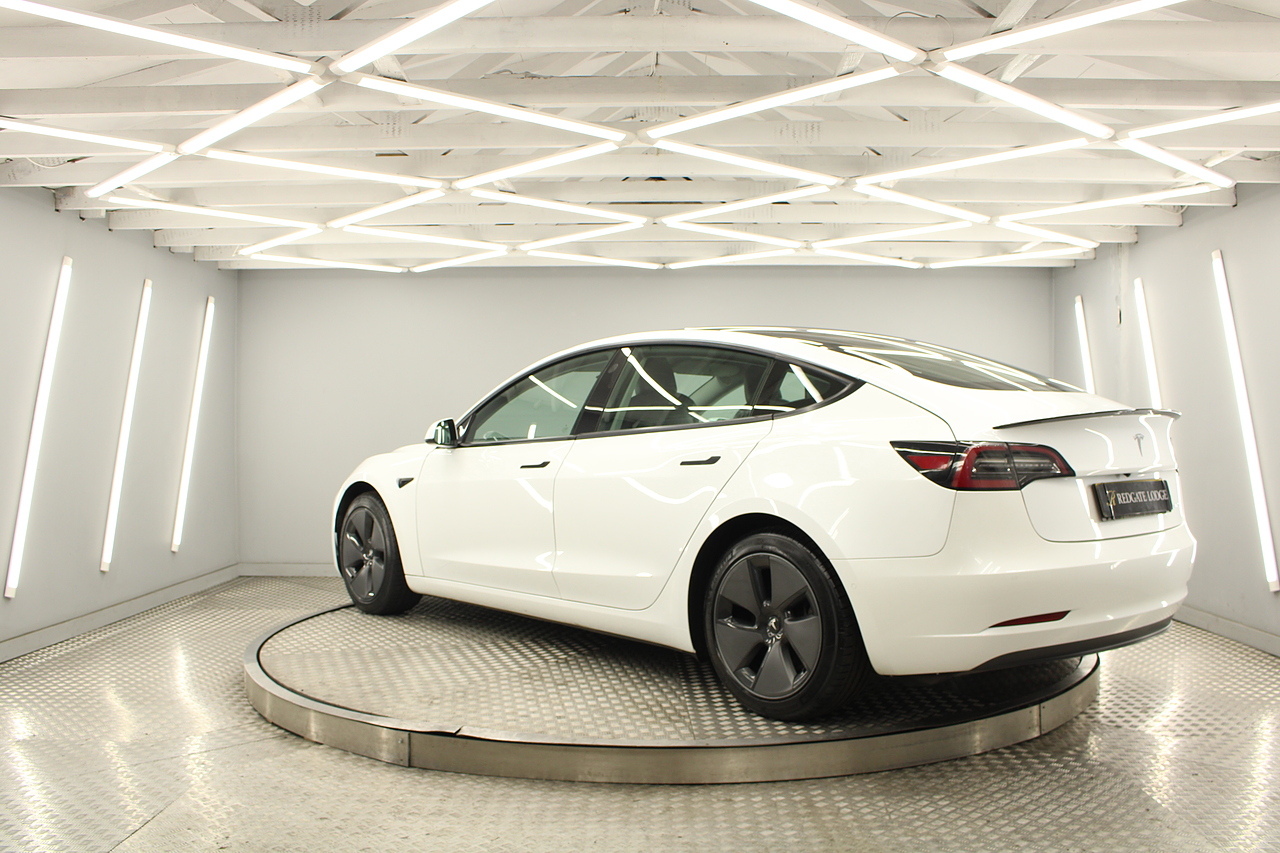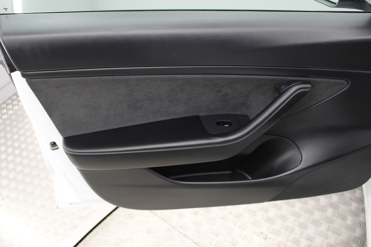 The interior is very well laid out and uncomplicated with a superb central control unit which controls everything from the climate control, heated seats both front and rear along with the heated steering wheel, 360 camera system, satellite navigation, parking assist features all around the car and an array of applications, plus fun apps such as the light show, romance setting and games, there are also handy driver aids such as cruise control with auto braking, power tailgate the parking cameras all round with sentry mode to keep an eye on your car whilst you are not in it, All of this can also be controlled by an app and set the internal temperature remotely before you get into the car, meaning no more freezing mornings or red hot uncomfortable summers getting into the car. The seats are trimmed in black premium engineered material, with power adjustment and heated function with smart light wood panels across the dashboard. This Model 3 is a superb all round car than can do every thing you would need from a family car.