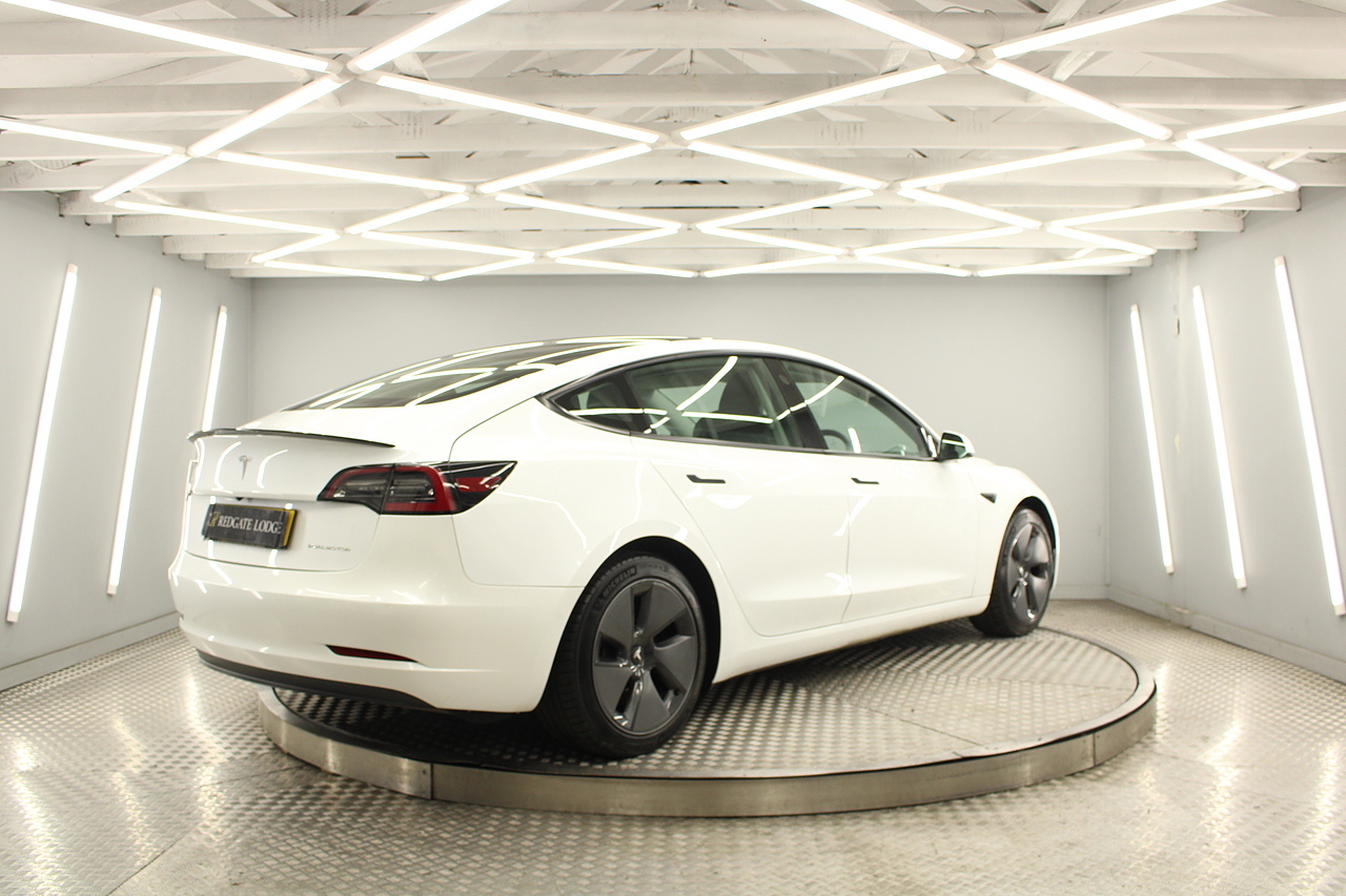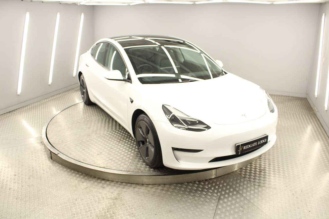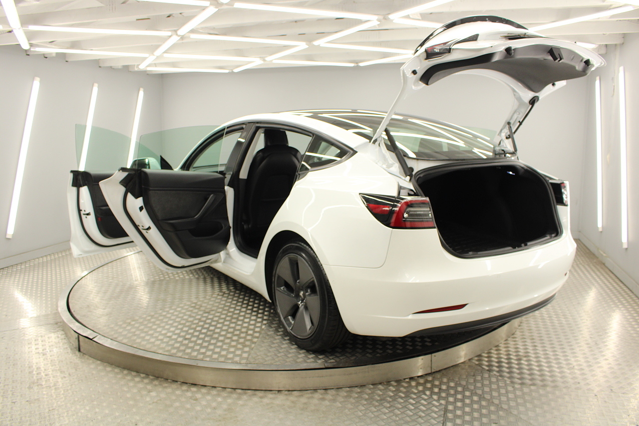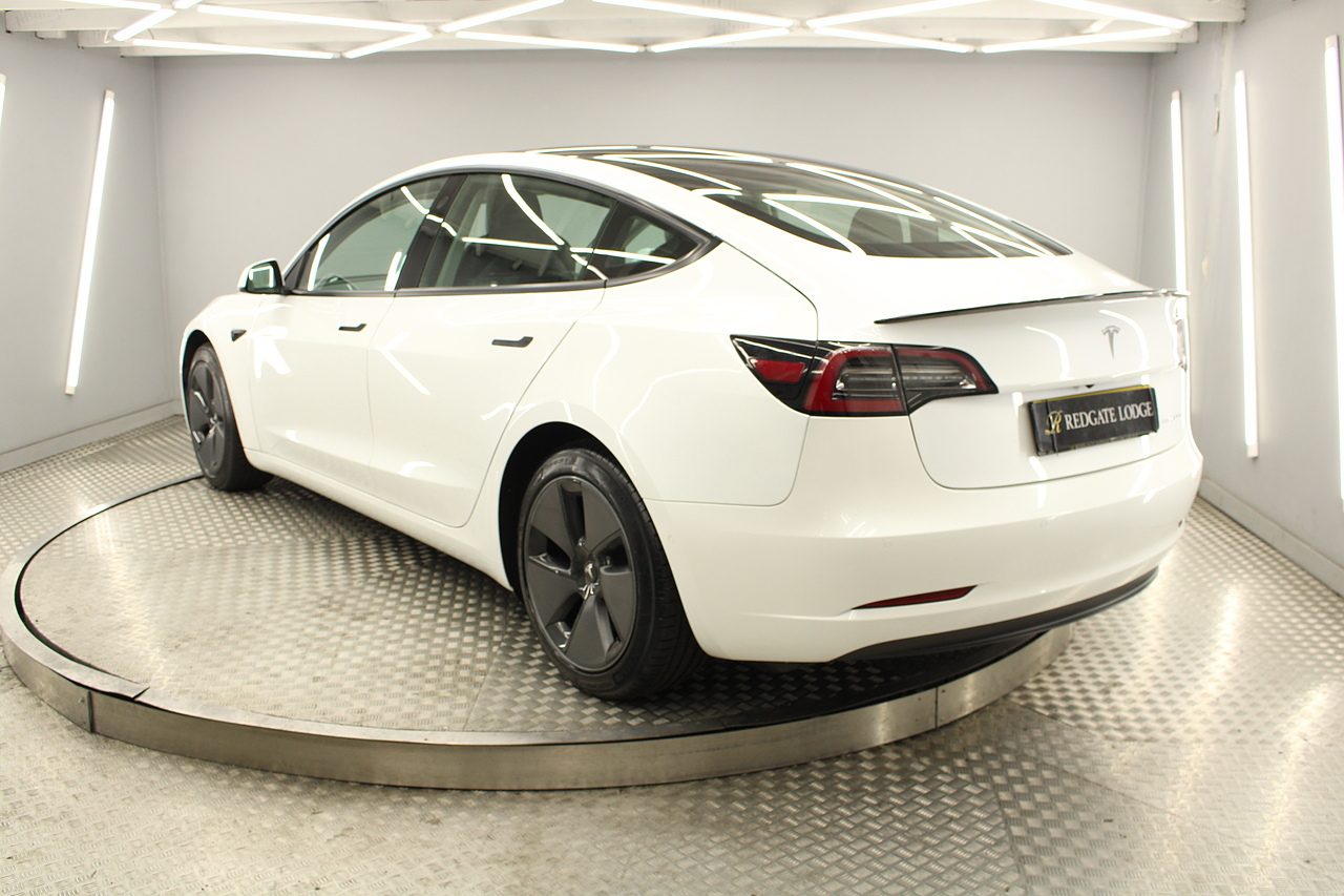 The interior is very well laid out and uncomplicated with a superb central control unit which controls everything from the climate control, heated seats both front and rear along with the heated steering wheel, 360 camera system, satellite navigation, parking assist features all around the car and an array of applications, plus fun apps such as the light show, romance setting and games, there are also handy driver aids such as cruise control with auto braking, power tailgate the parking cameras all round with sentry mode to keep an eye on your car whilst you are not in it, All of this can also be controlled by an app and set the internal temperature remotely before you get into the car, meaning no more freezing mornings or red hot uncomfortable summers getting into the car. The seats are trimmed in black premium engineered material, with power adjustment and heated function with smart light wood panels across the dashboard. This Model 3 is a superb all round car than can do every thing you would need from a family car.