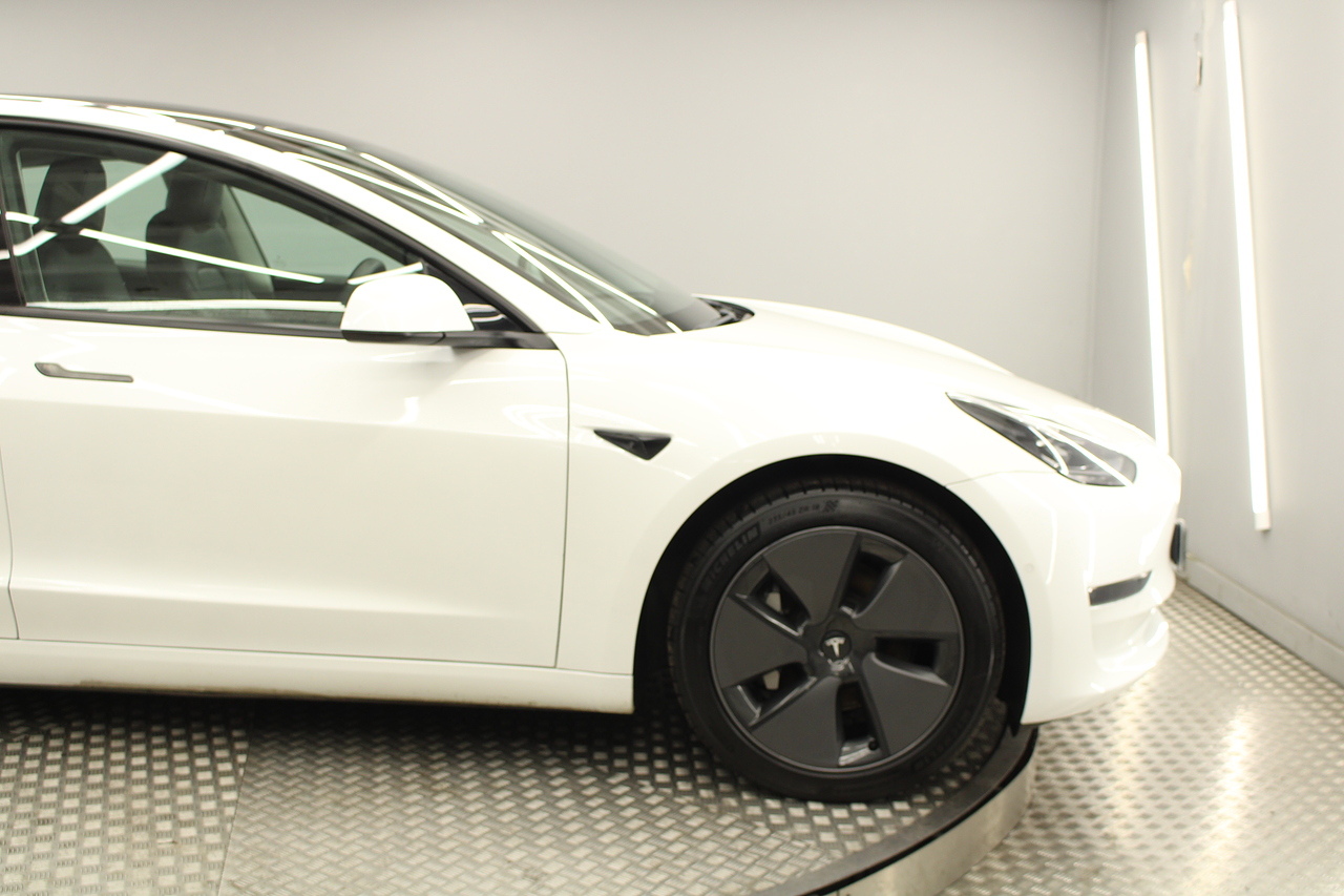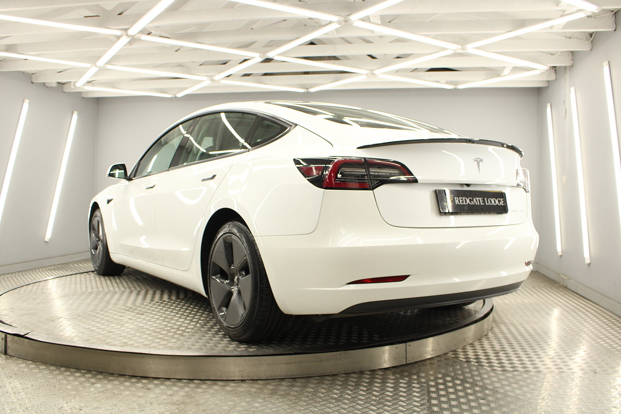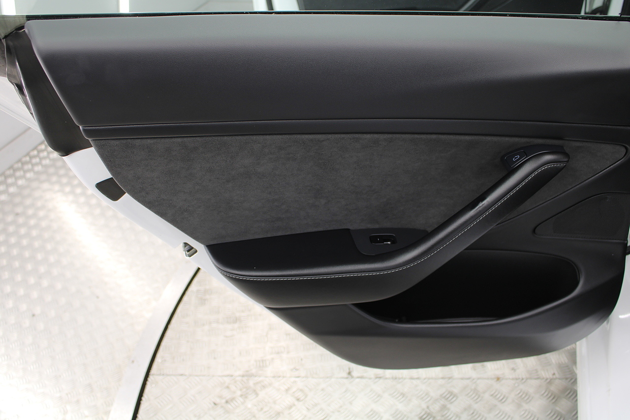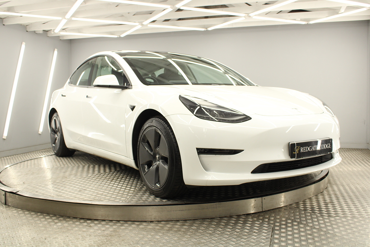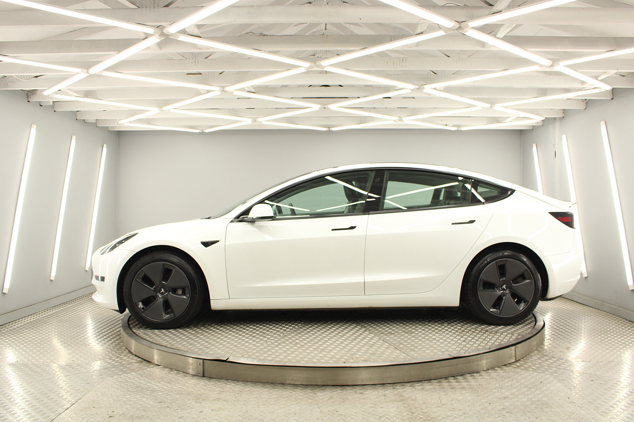 The interior is very well laid out and uncomplicated with a superb central control unit which controls everything from the climate control, heated seats both front and rear along with the heated steering wheel, 360 camera system, satellite navigation, parking assist features all around the car and an array of applications, plus fun apps such as the light show, romance setting and games, there are also handy driver aids such as cruise control with auto braking, power tailgate the parking cameras all round with sentry mode to keep an eye on your car whilst you are not in it, All of this can also be controlled by an app and set the internal temperature remotely before you get into the car, meaning no more freezing mornings or red hot uncomfortable summers getting into the car. The seats are trimmed in black premium engineered material, with power adjustment and heated function with smart light wood panels across the dashboard. This Model 3 is a superb all round car than can do every thing you would need from a family car.