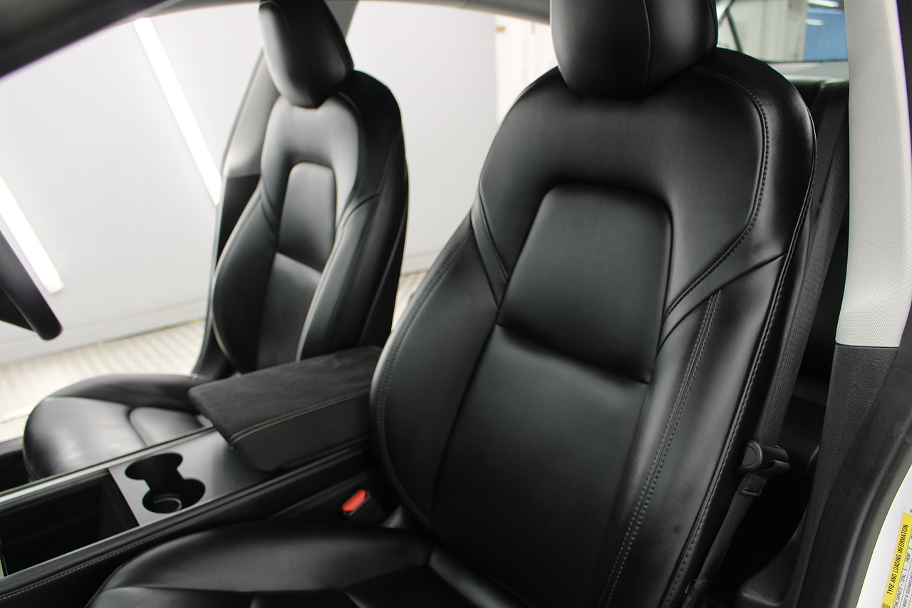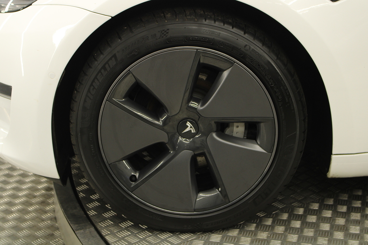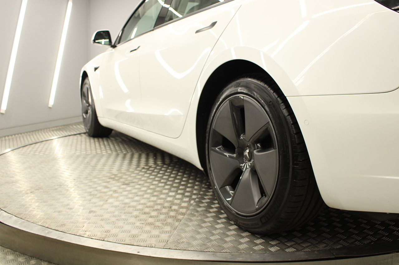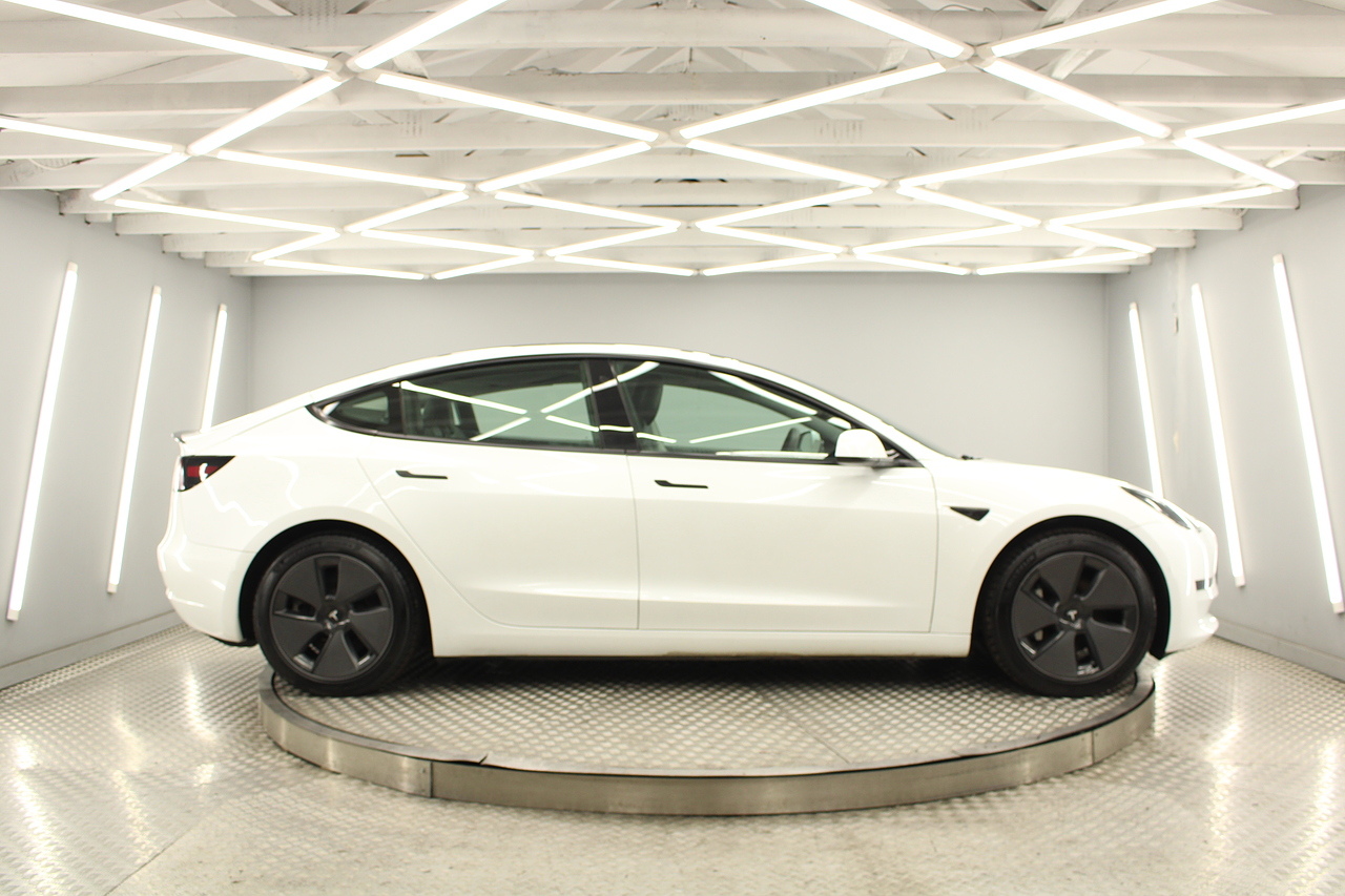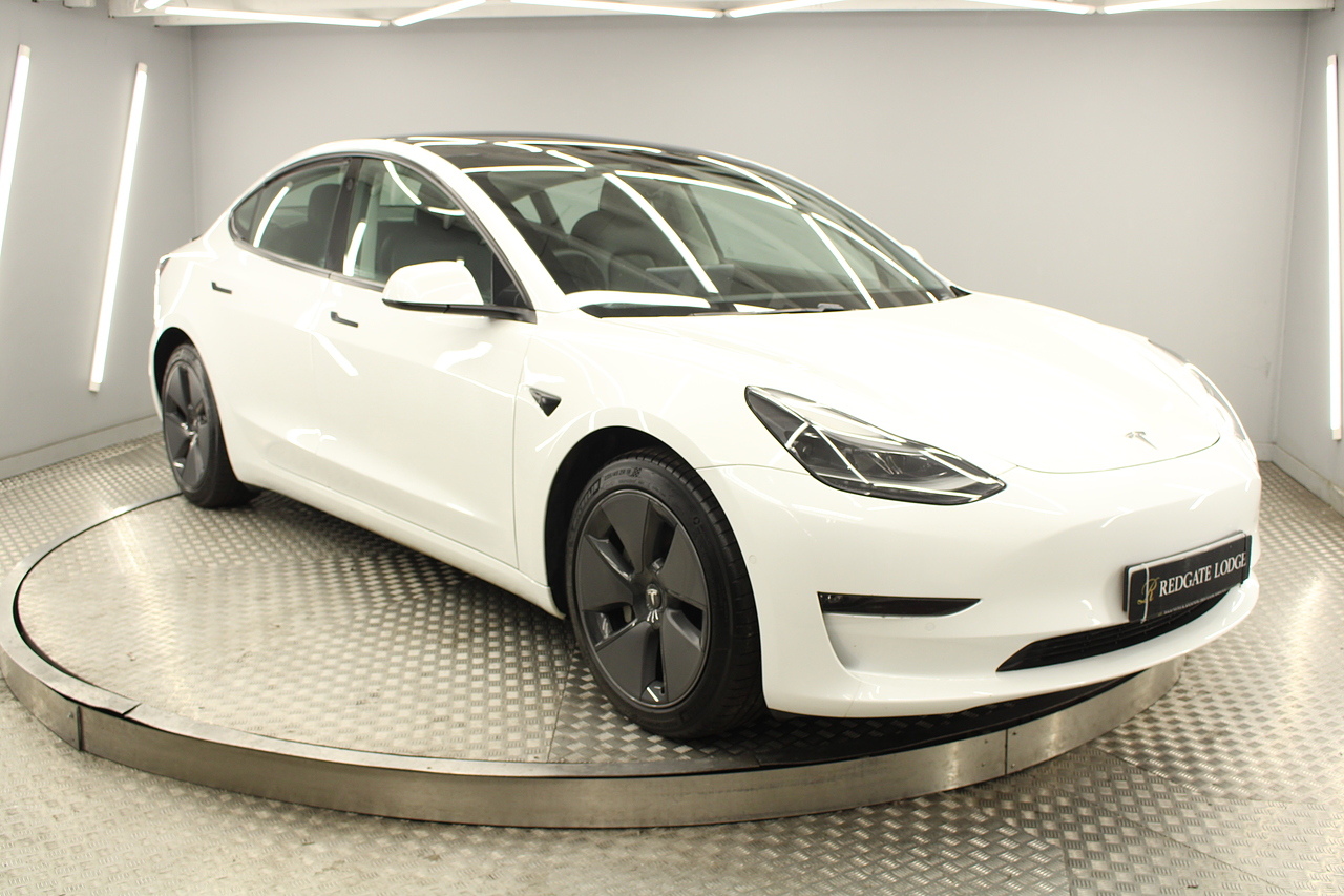 The interior is very well laid out and uncomplicated with a superb central control unit which controls everything from the climate control, heated seats both front and rear along with the heated steering wheel, 360 camera system, satellite navigation, parking assist features all around the car and an array of applications, plus fun apps such as the light show, romance setting and games, there are also handy driver aids such as cruise control with auto braking, power tailgate the parking cameras all round with sentry mode to keep an eye on your car whilst you are not in it, All of this can also be controlled by an app and set the internal temperature remotely before you get into the car, meaning no more freezing mornings or red hot uncomfortable summers getting into the car. The seats are trimmed in black premium engineered material, with power adjustment and heated function with smart light wood panels across the dashboard. This Model 3 is a superb all round car than can do every thing you would need from a family car.