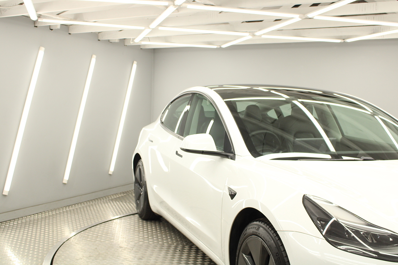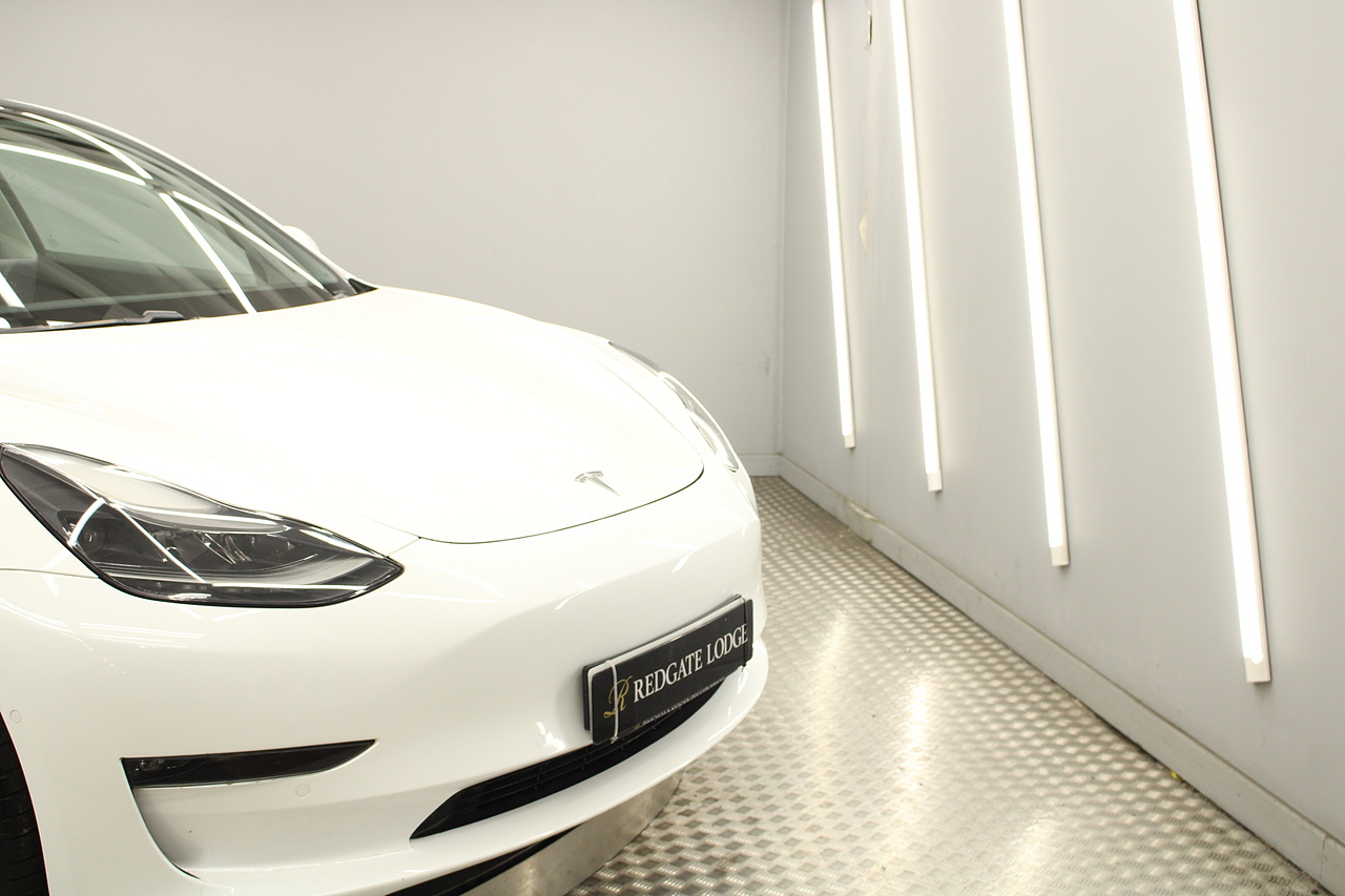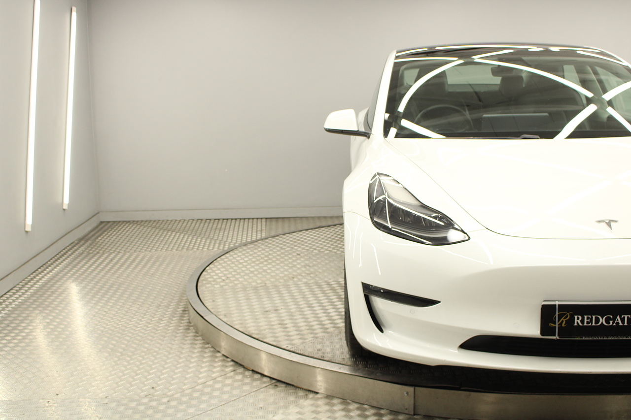 Finished in the gorgeous pearl white metallic with the 18'' wheels privacy glass and gloss black detailing around the car also with the panoramic sunroof, this Tesla has also been treated with a full body PPF paint protection film, this is a very modern looking saloon full of up to date technology.