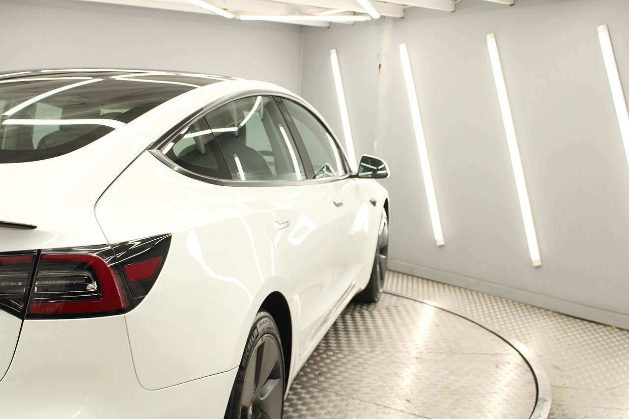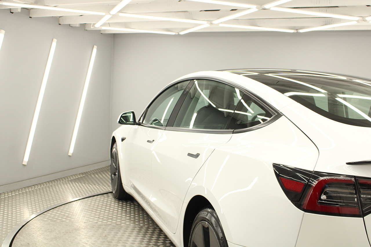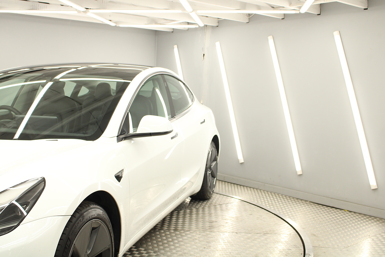 Finished in the gorgeous pearl white metallic with the 18'' wheels privacy glass and gloss black detailing around the car also with the panoramic sunroof, this Tesla has also been treated with a full body PPF paint protection film, this is a very modern looking saloon full of up to date technology.