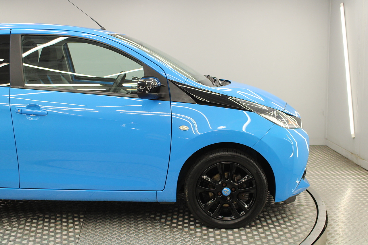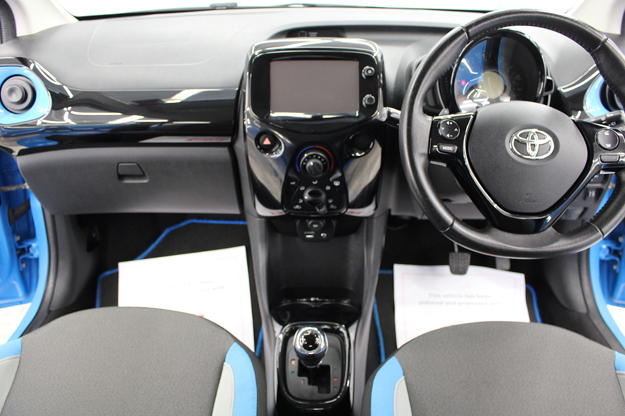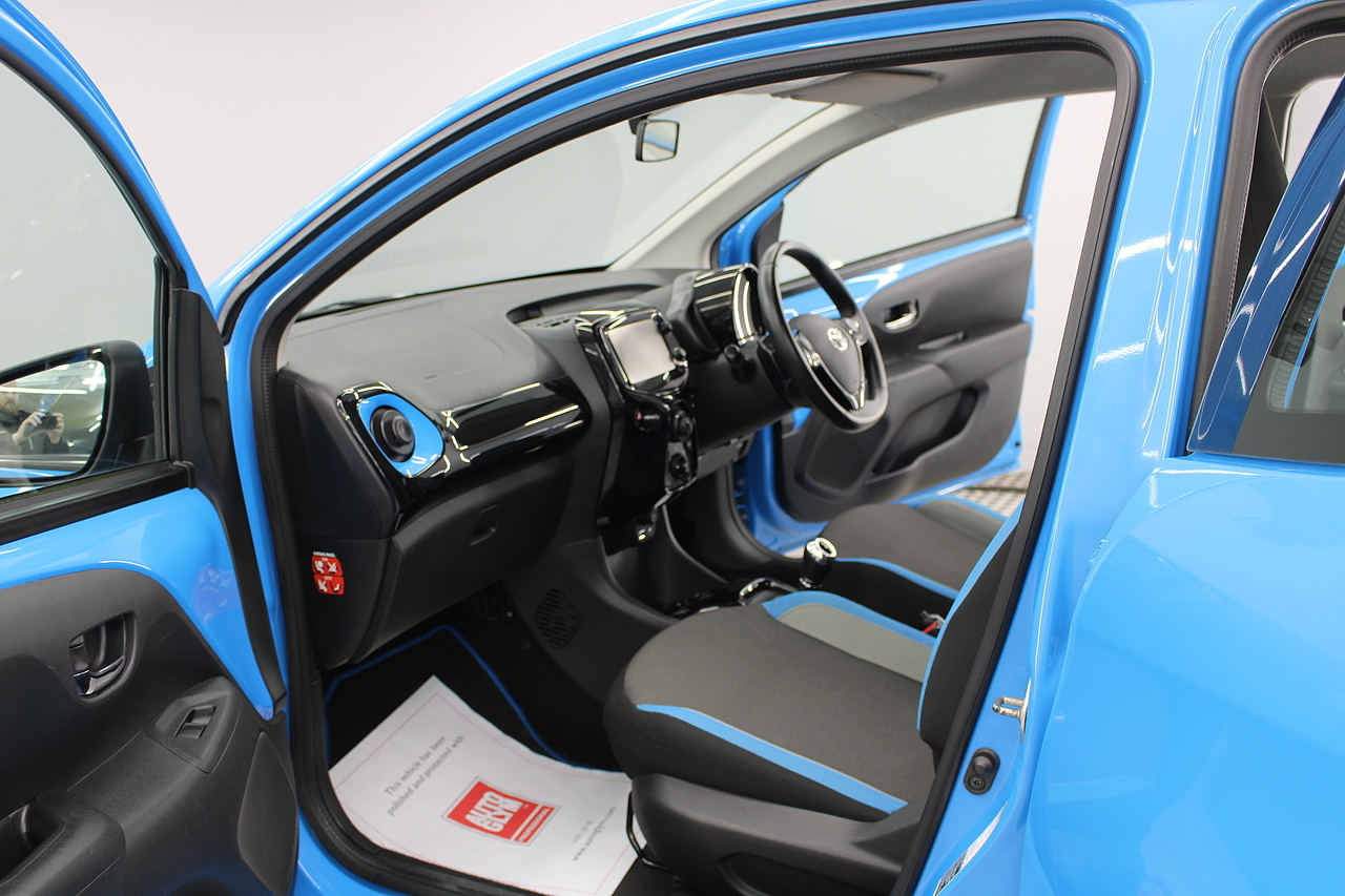 This is our fantastic 2016 Toyota Aygo X-cite. Examples like this very rarely come along firstly being the automatic and having covered only 15,000 miles. This car is finished in the eye catching cyan splash with black accented highlights and we think it is a superb little city car. With superb fuel consumption at an average MPG of 67 and costs only £20 per year in road tax, it is not only fun to drive, but it's also great on the fuel too. This really is a superb little car.