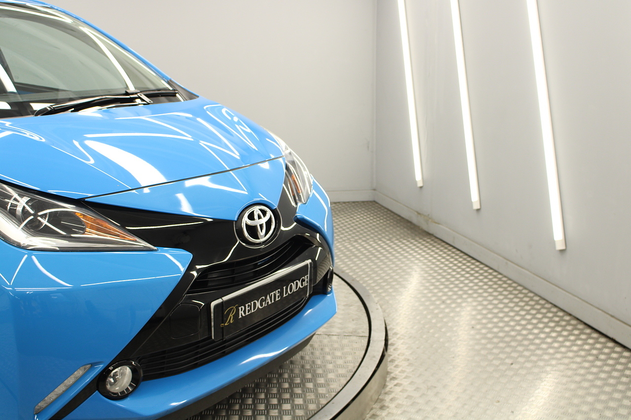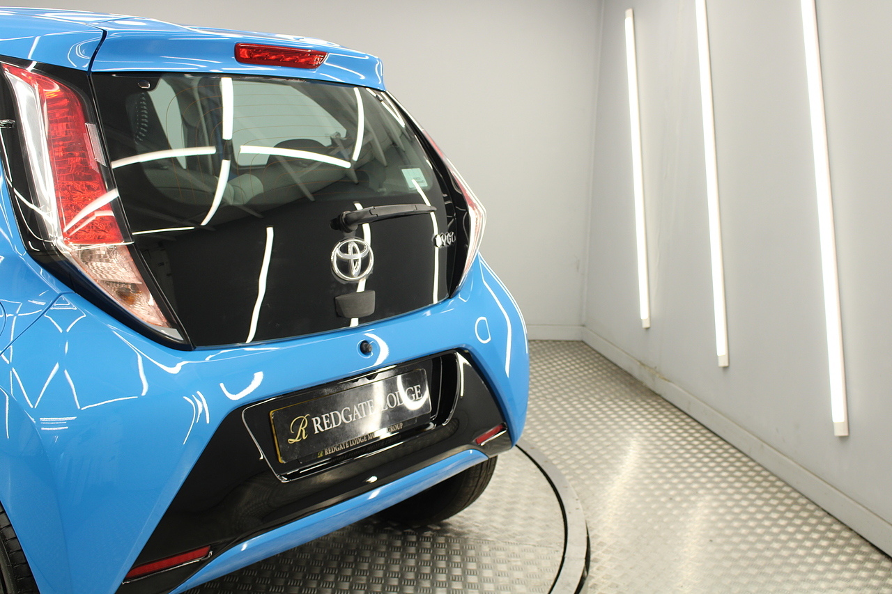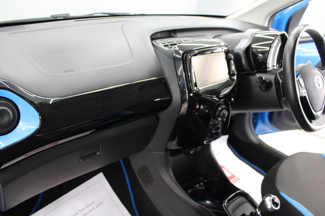This is our fantastic 2016 Toyota Aygo X-cite. Examples like this very rarely come along firstly being the automatic and having covered only 15,000 miles. This car is finished in the eye catching cyan splash with black accented highlights and we think it is a superb little city car. With superb fuel consumption at an average MPG of 67 and costs only £20 per year in road tax, it is not only fun to drive, but it's also great on the fuel too. This really is a superb little car.