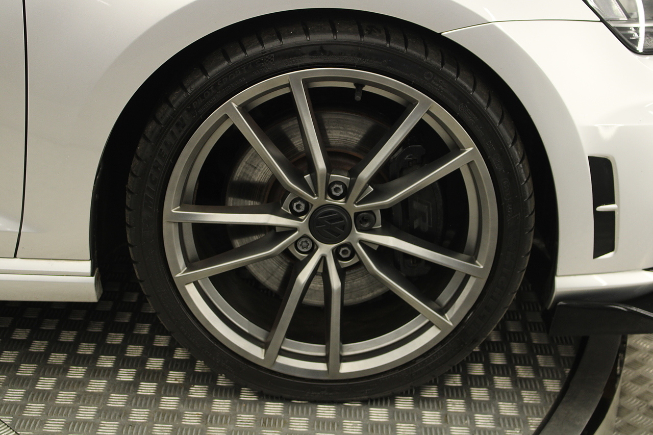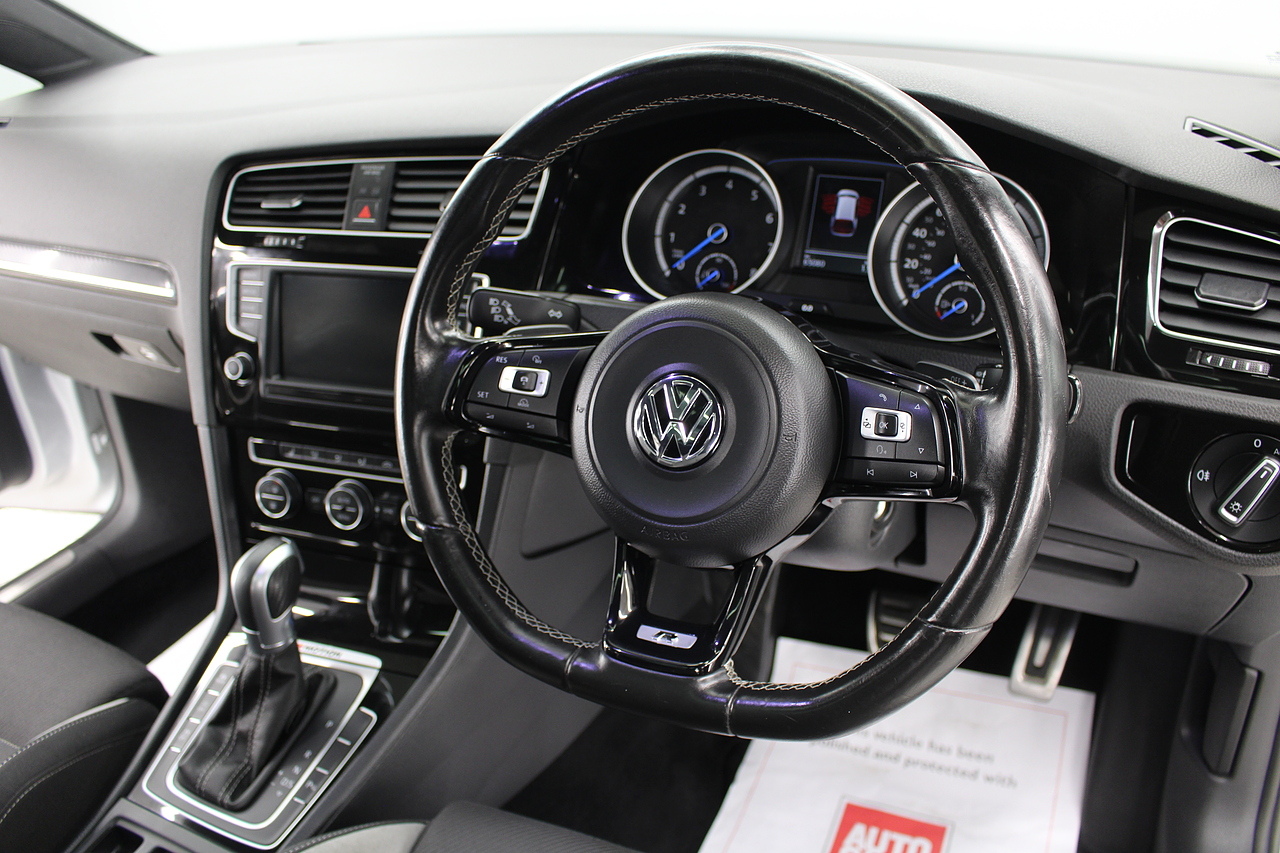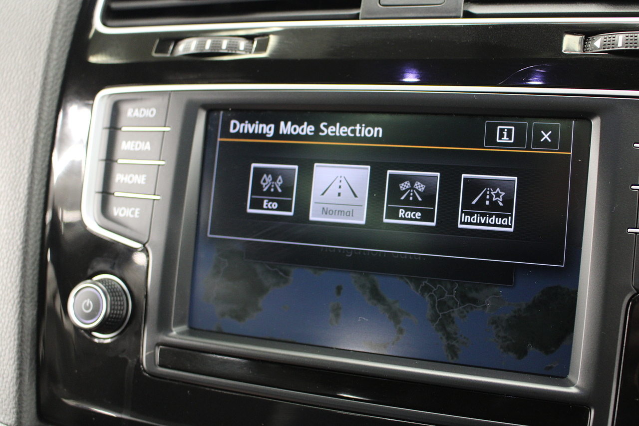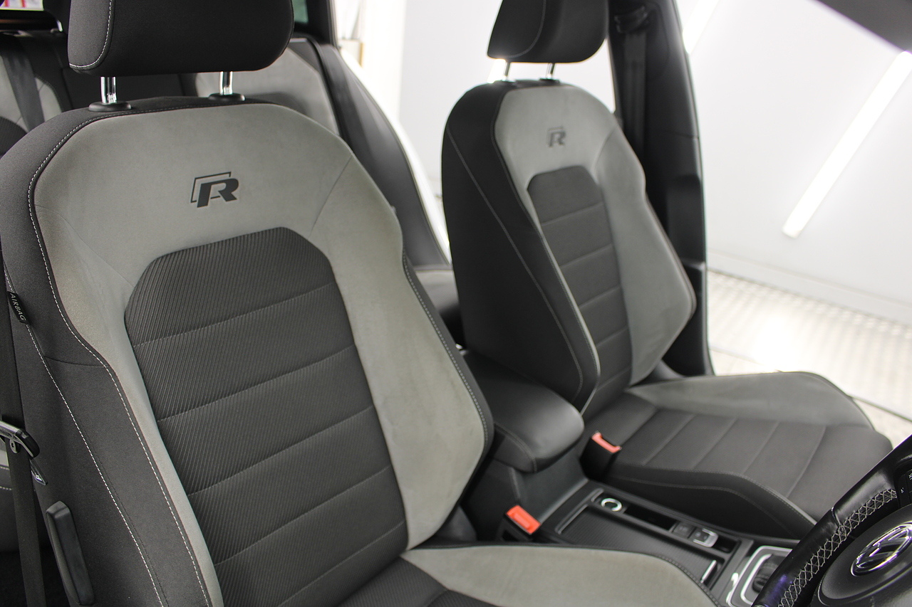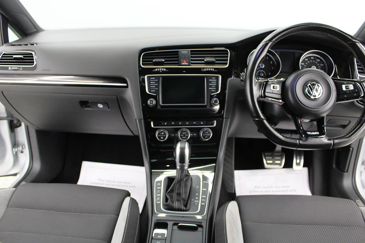Onto the interior, you'll see the very comfortable and supportive heated R seats, beautiful touches of piano black across the centre console, Bluetooth connectivity, full colour touch screen with DAB radio, as well as also benefitting from parking sensors. If the prodigious GTI version simply is not enough for you, it is time you meet its more muscular brother, the Volkswagen Golf R.
