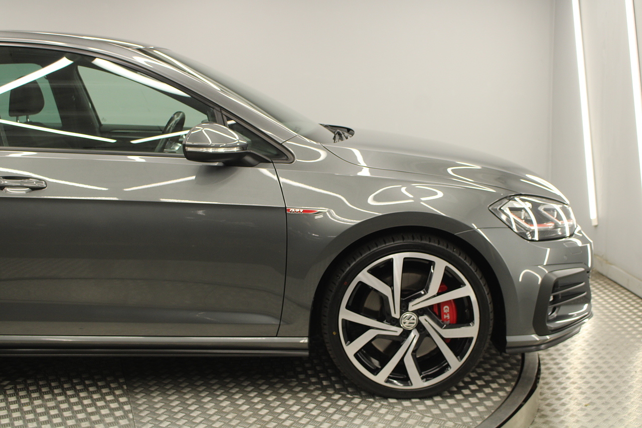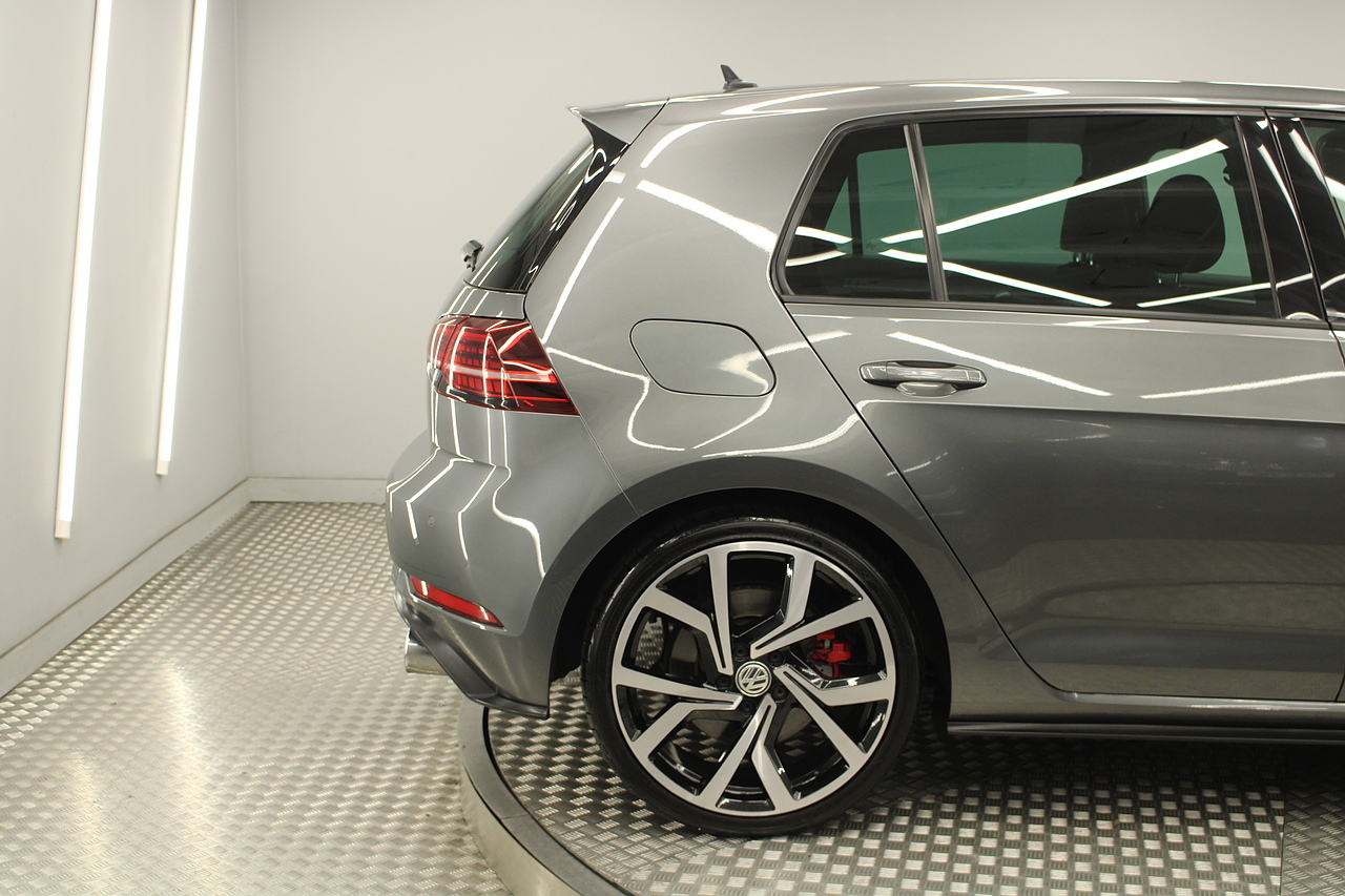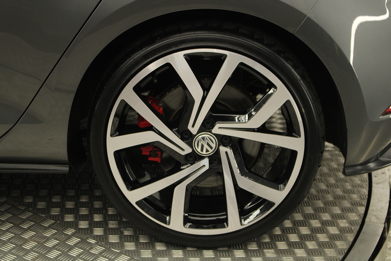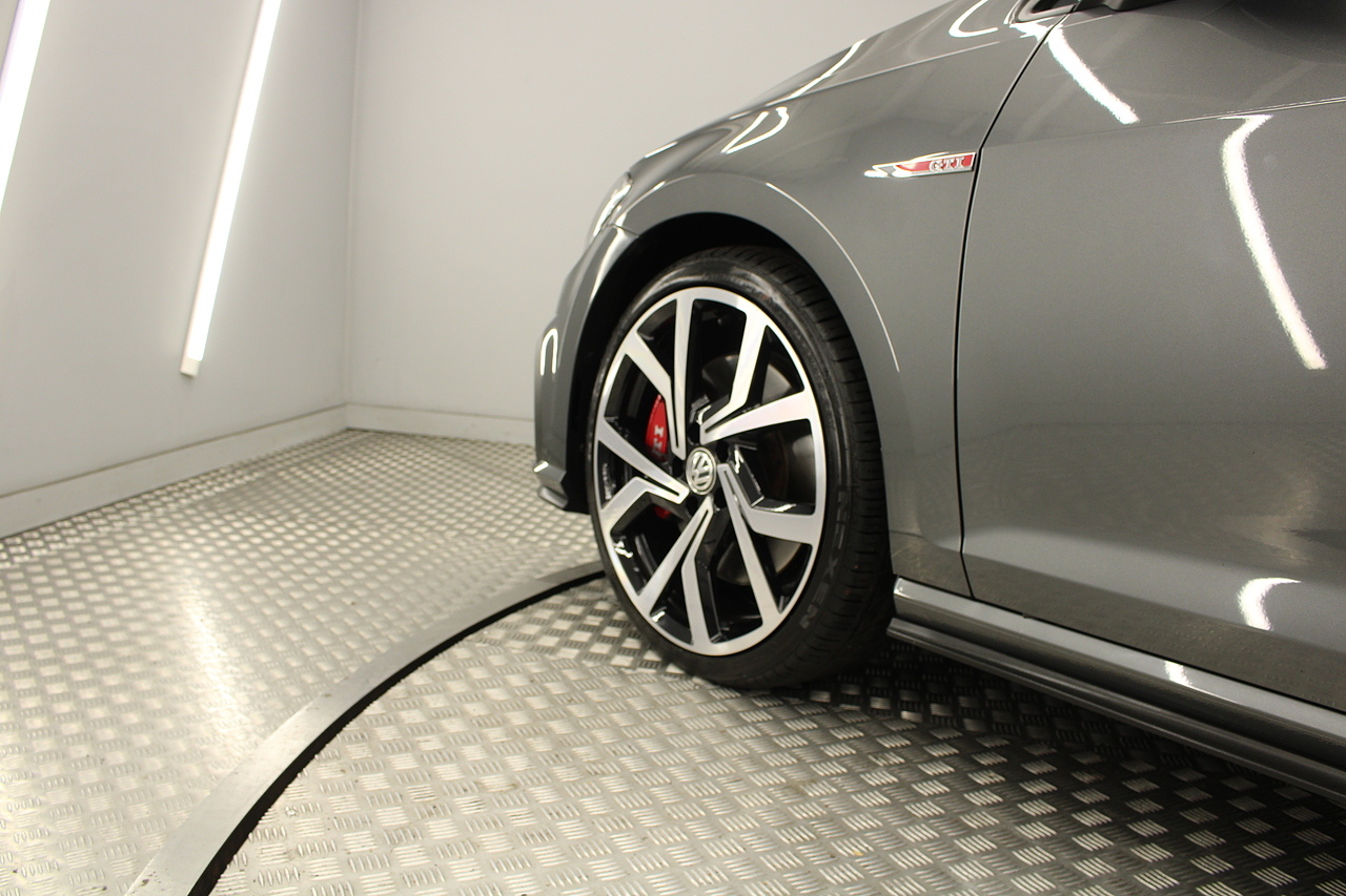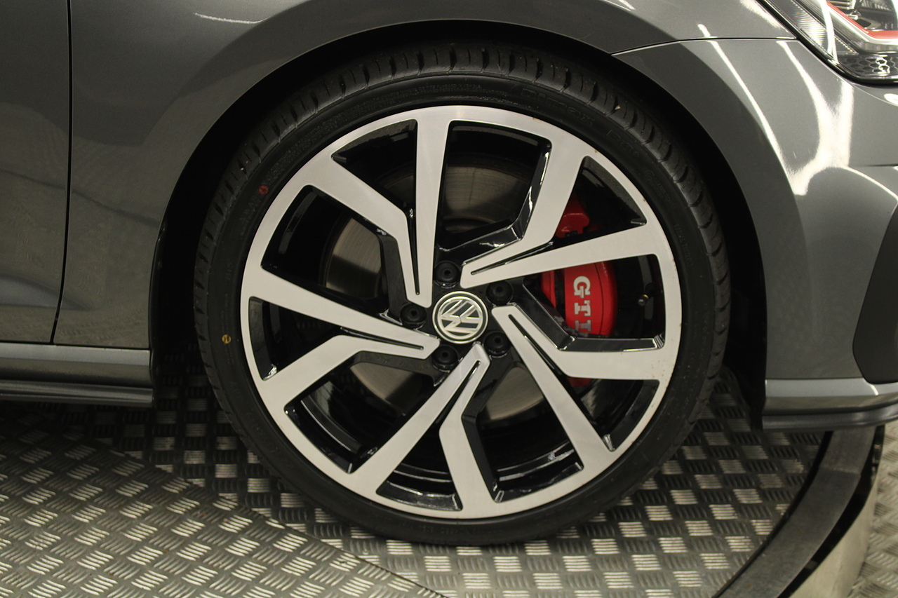 Finished in the gorgeous indium grey with 19'' brescia diamond cut wheels with or course the GTI badged larger brake calipers behind, and unmistakable GTI styling make this Golf look every bit the hot hatch that it is.