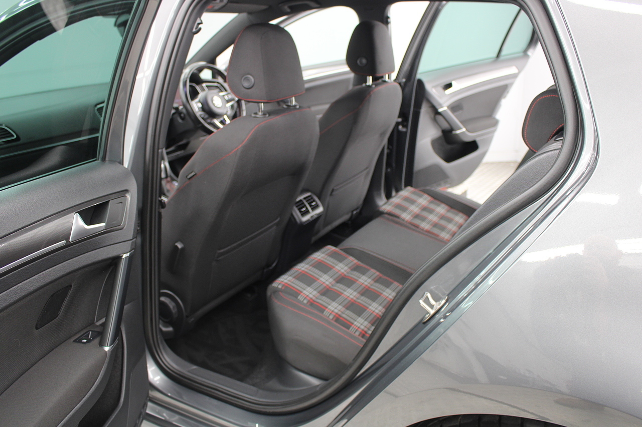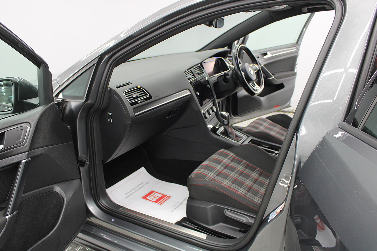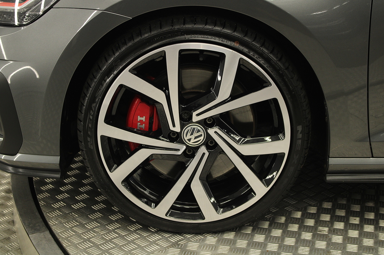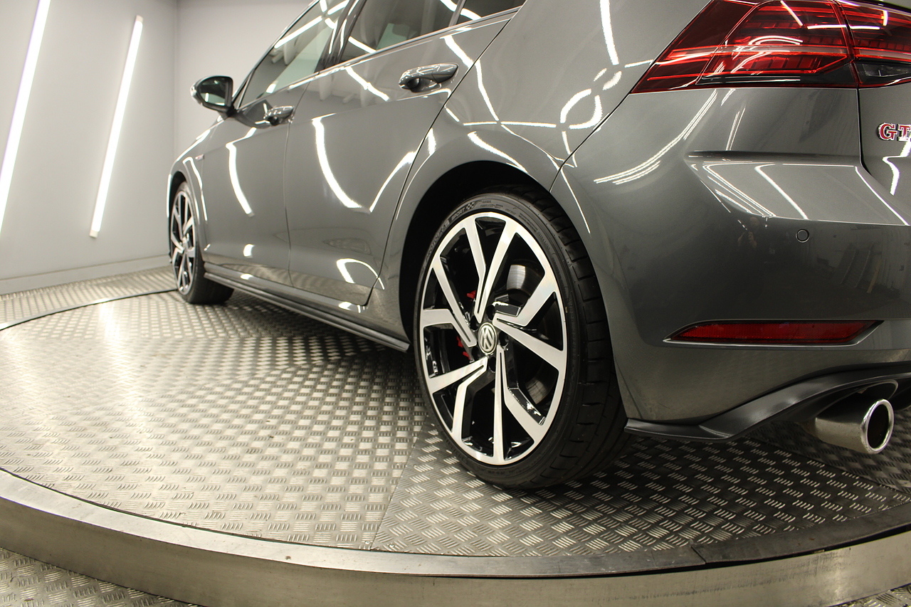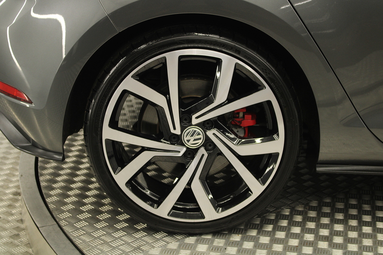 Finished in the gorgeous indium grey with 19'' brescia diamond cut wheels with or course the GTI badged larger brake calipers behind, and unmistakable GTI styling make this Golf look every bit the hot hatch that it is.