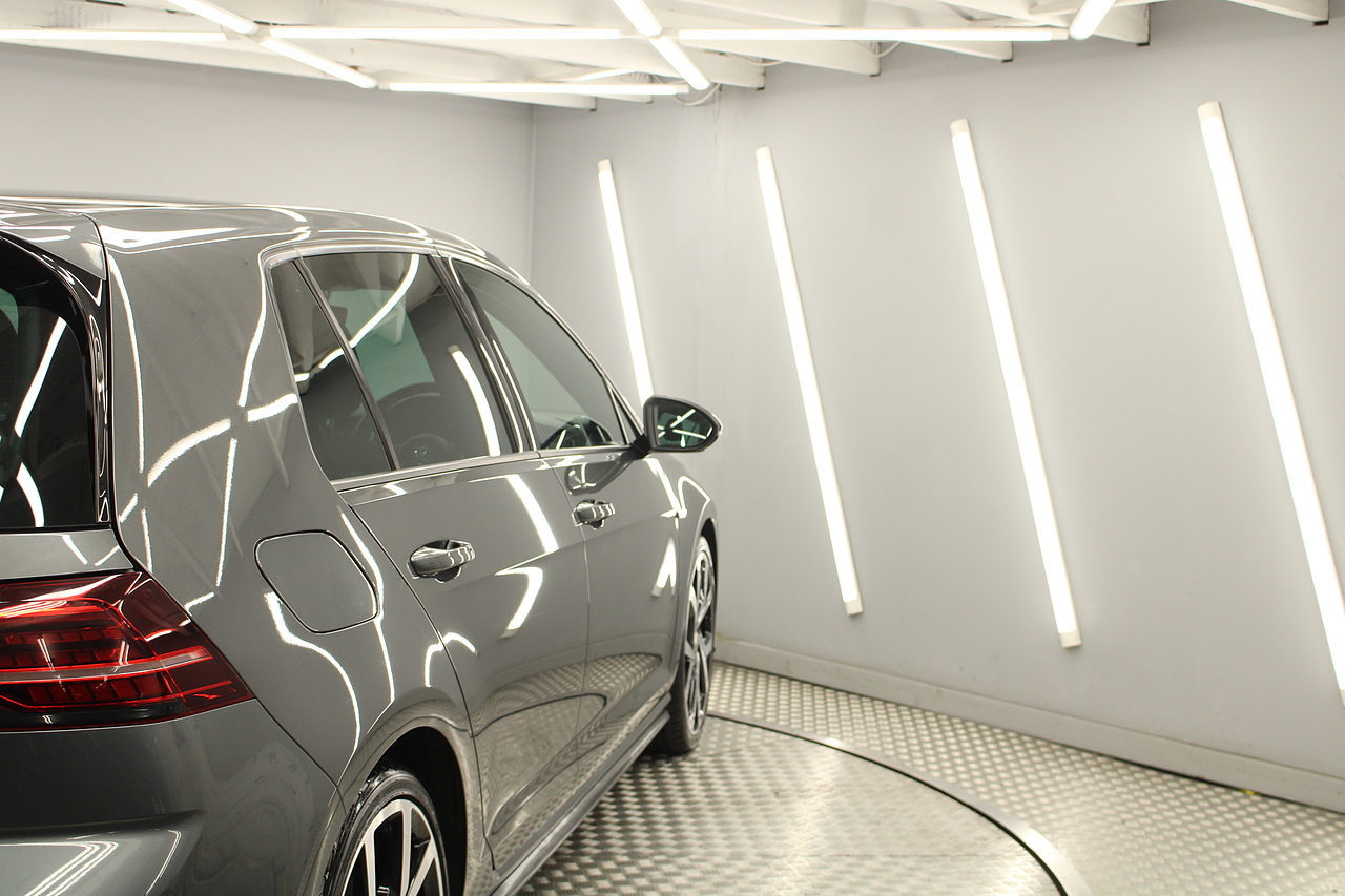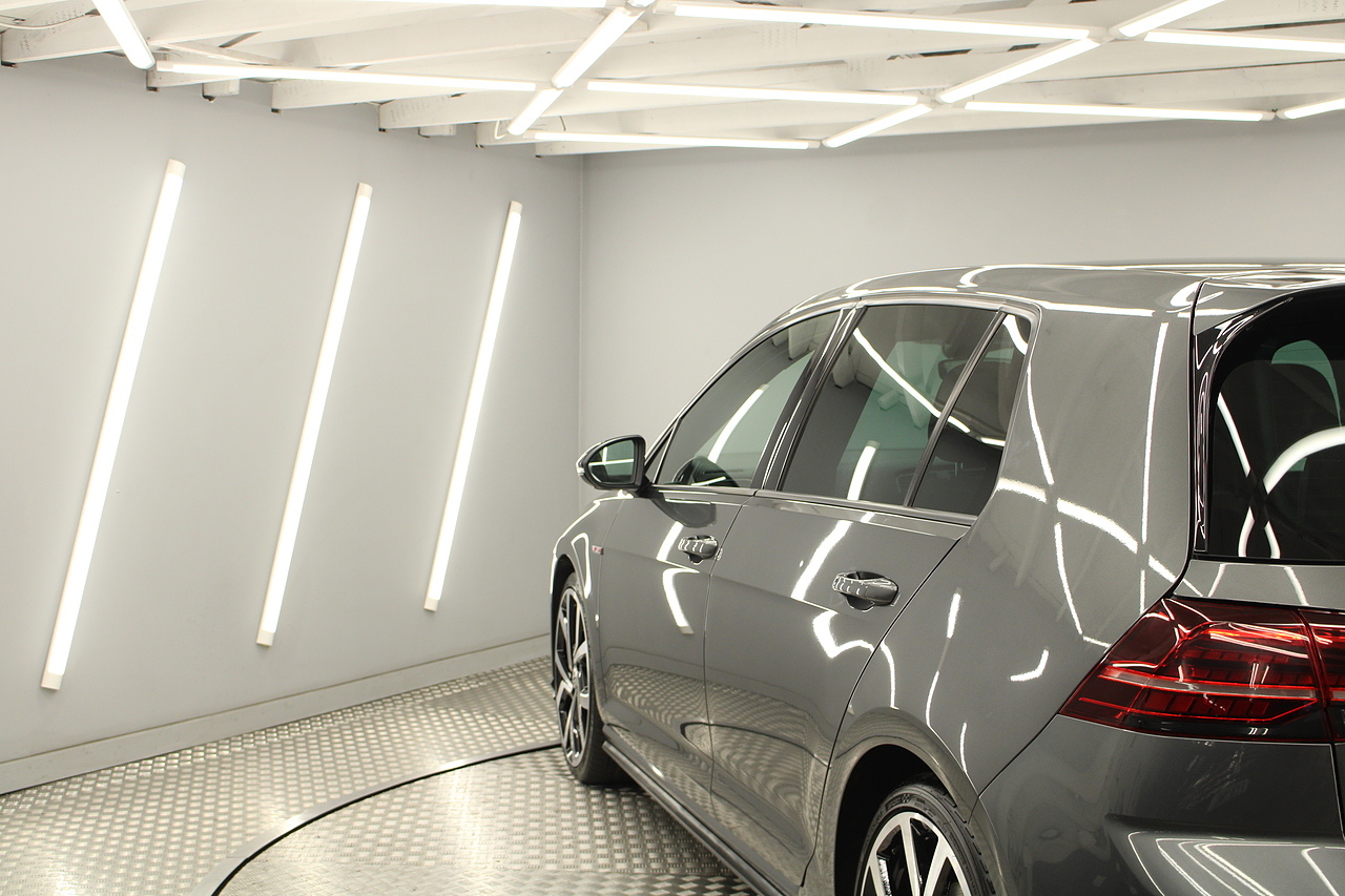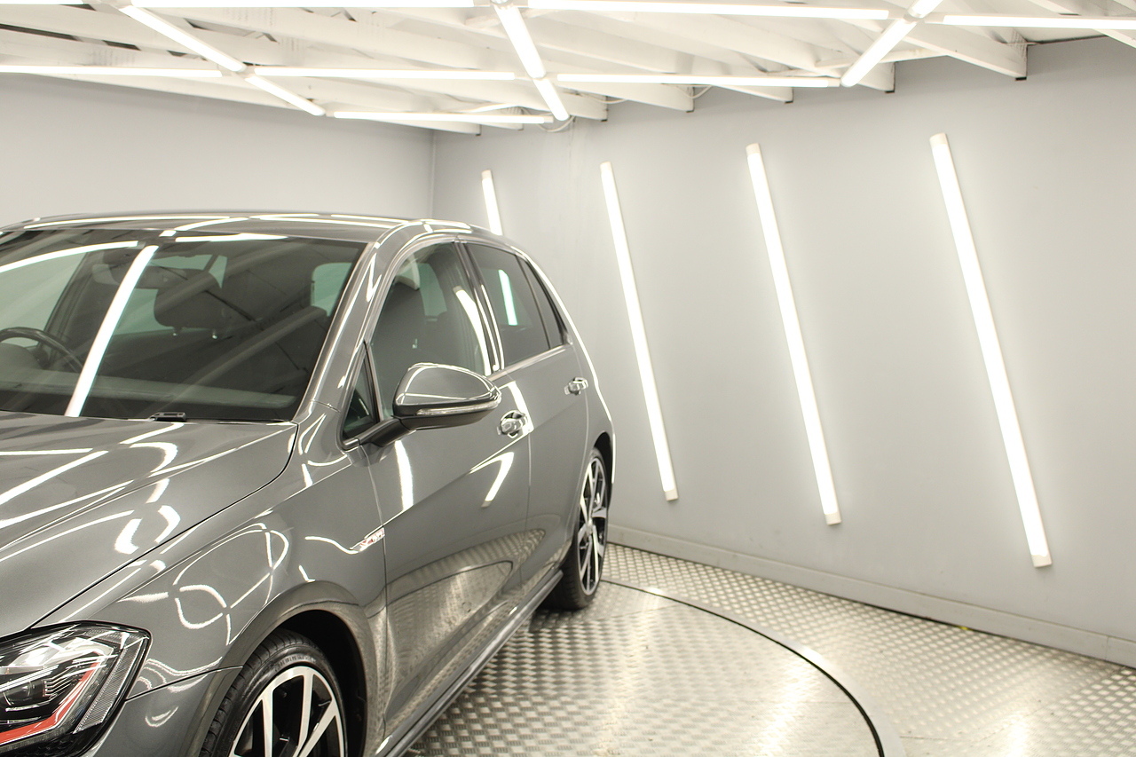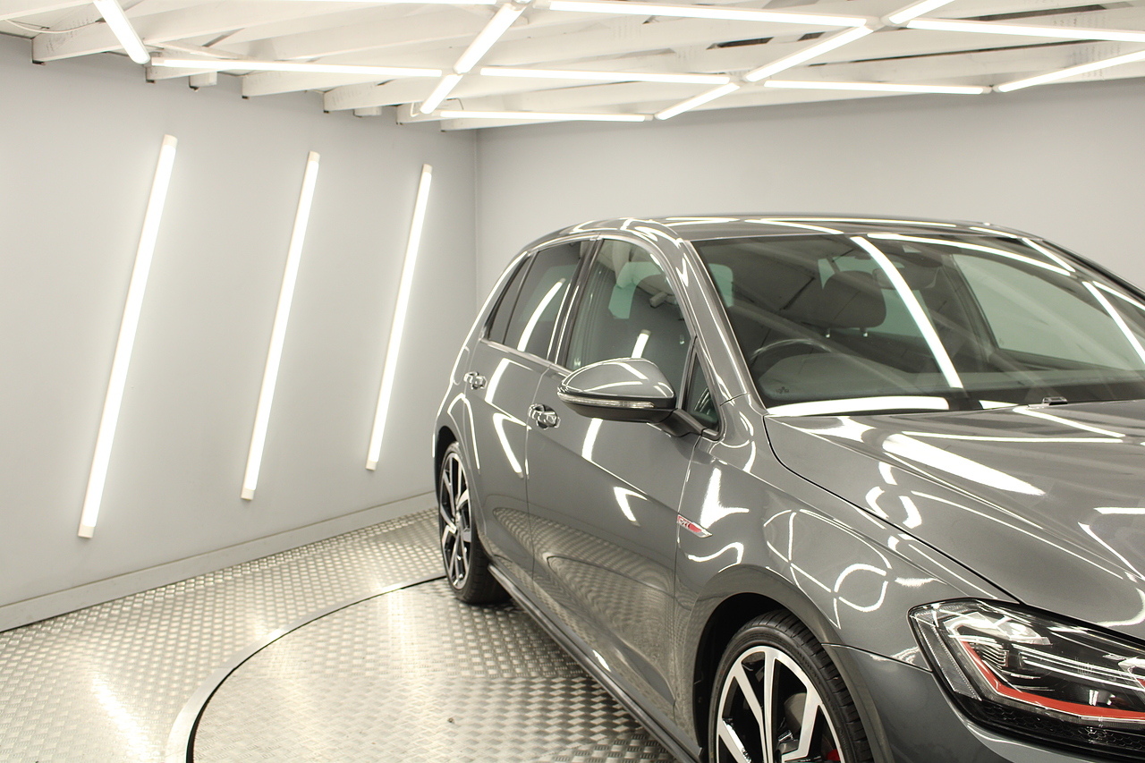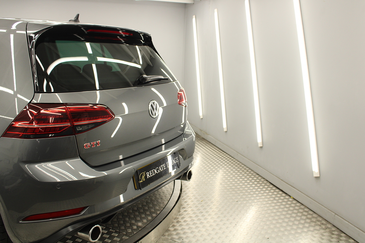 Finished in the gorgeous indium grey with 19'' brescia diamond cut wheels with or course the GTI badged larger brake calipers behind, and unmistakable GTI styling make this Golf look every bit the hot hatch that it is.