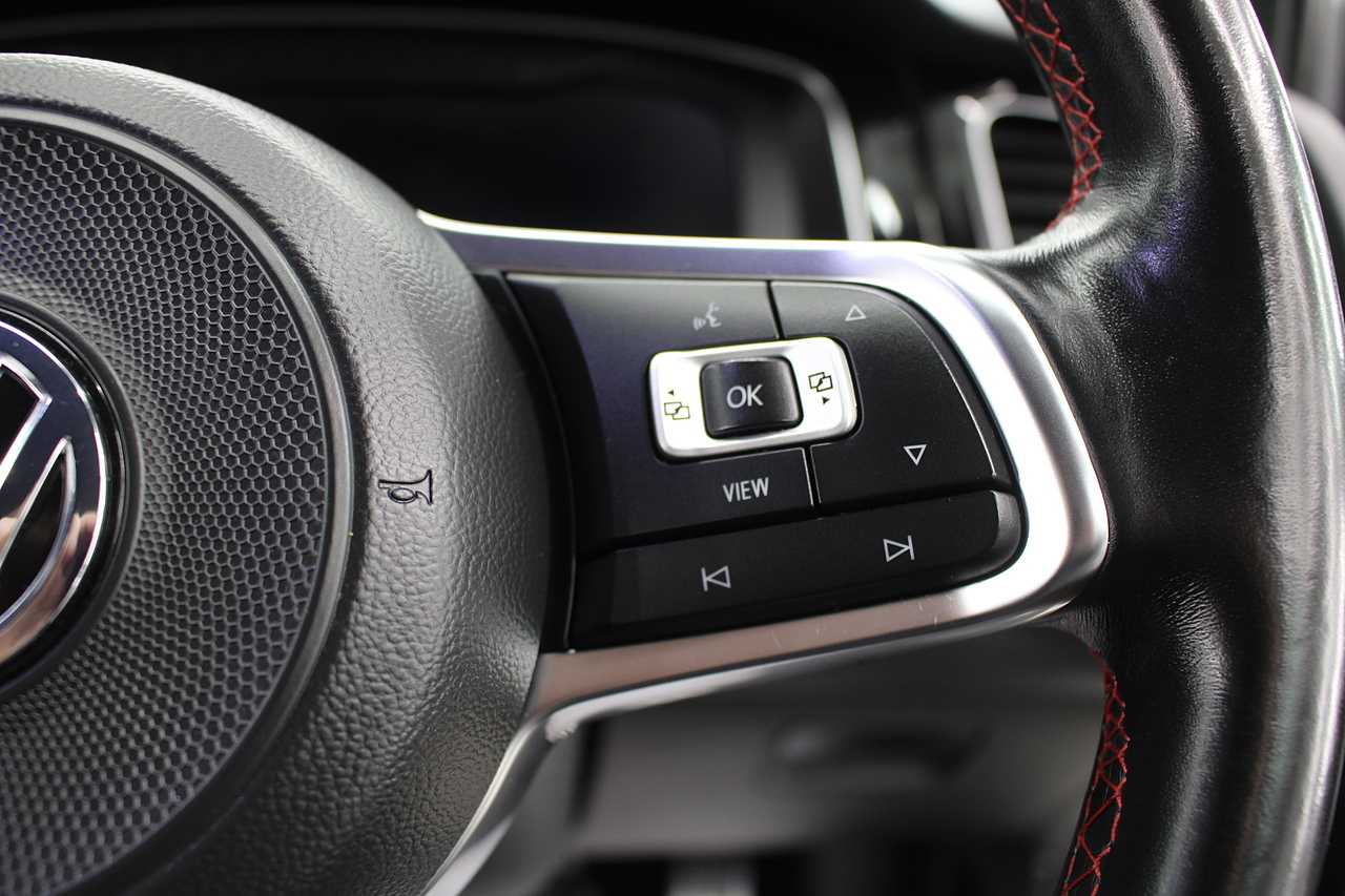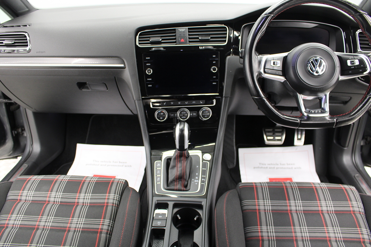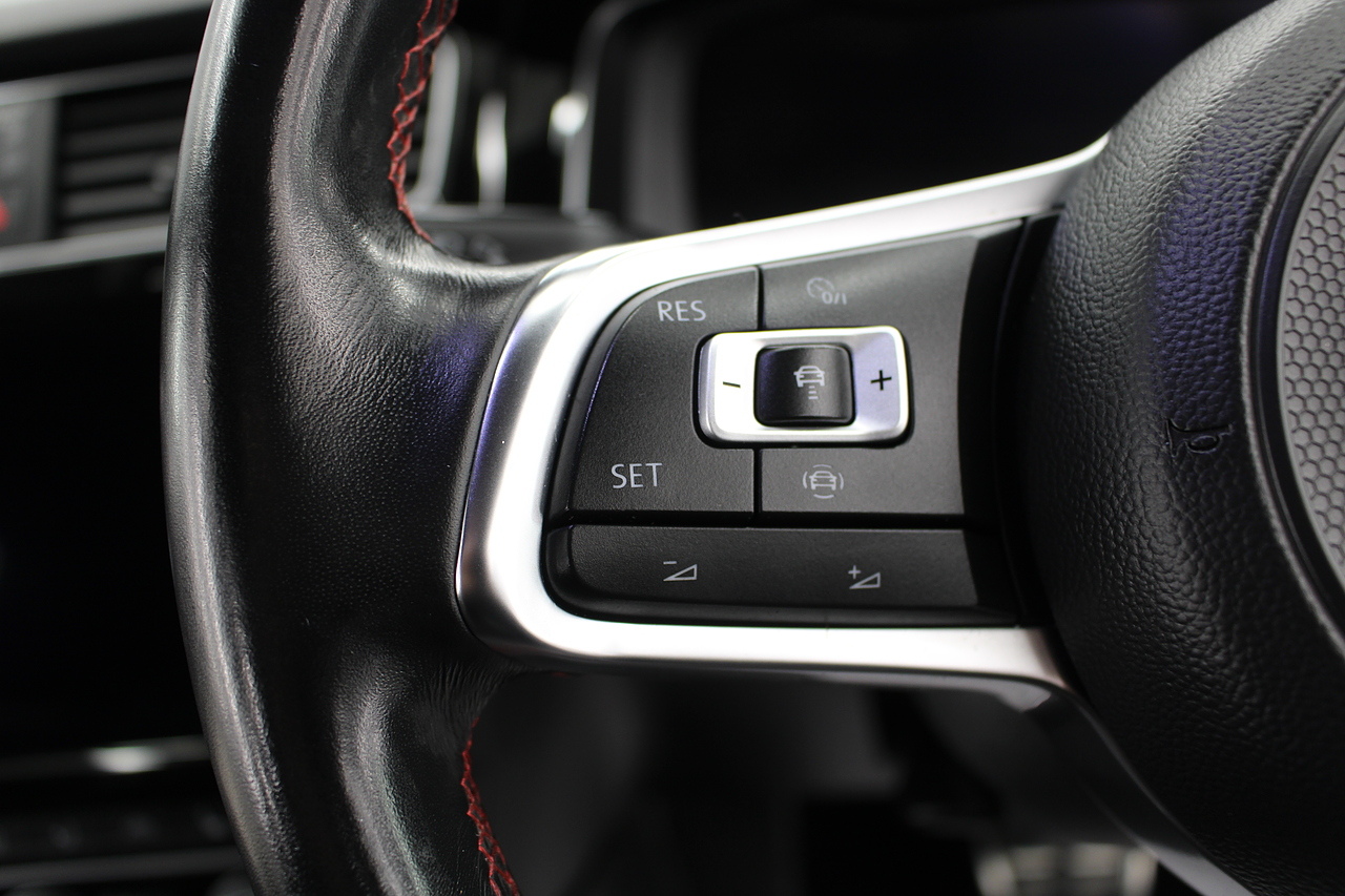 This particular model the 2019 GTI, comes with the iconic jacara interior with heated seats. In addition to full colour screen and premium sound system, DAB Radio, Satellite navigation, Bluetooth, apple car play and android auto, handy driver aids such as rear parking sensors with rear camera and adaptive cruise control. This car really does pay homage to the MK1 GTI of the 80s, with premium and modern extras such as air conditioning and climate control, DAB radio with MP3 functionality, steering wheel mounted controls, giving it a modern look and feel inside the cabin. All of this with the addition of the adaptive cruise control and the stunning LED daytime running lights!