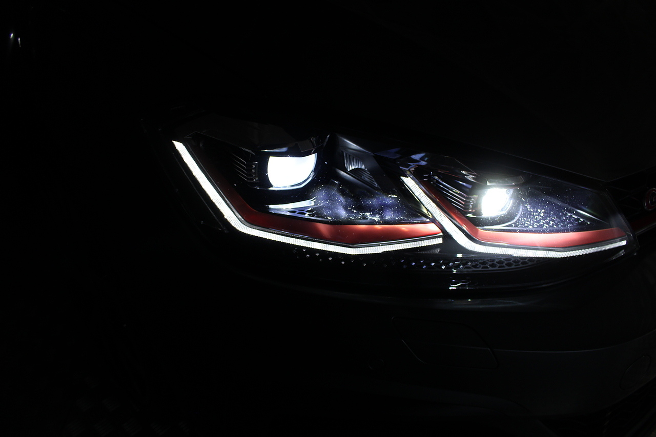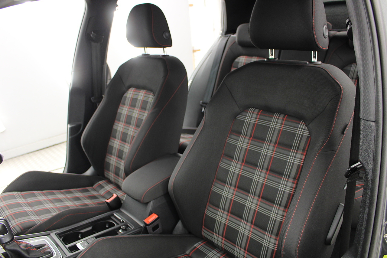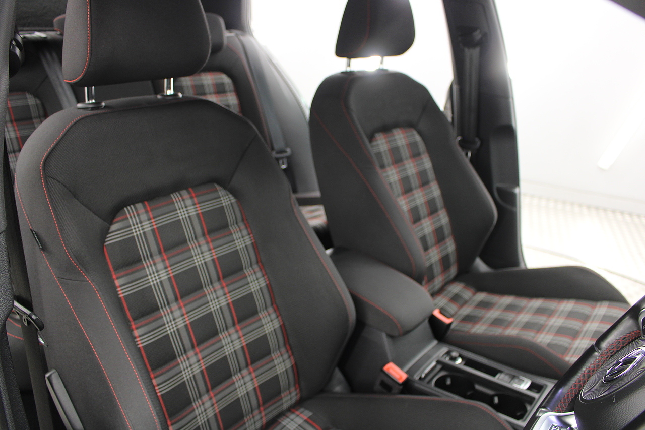 This particular model the 2019 GTI, comes with the iconic jacara interior with heated seats. In addition to full colour screen and premium sound system, DAB Radio, Satellite navigation, Bluetooth, apple car play and android auto, handy driver aids such as rear parking sensors with rear camera and adaptive cruise control. This car really does pay homage to the MK1 GTI of the 80s, with premium and modern extras such as air conditioning and climate control, DAB radio with MP3 functionality, steering wheel mounted controls, giving it a modern look and feel inside the cabin. All of this with the addition of the adaptive cruise control and the stunning LED daytime running lights!