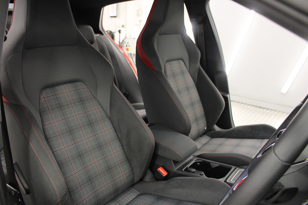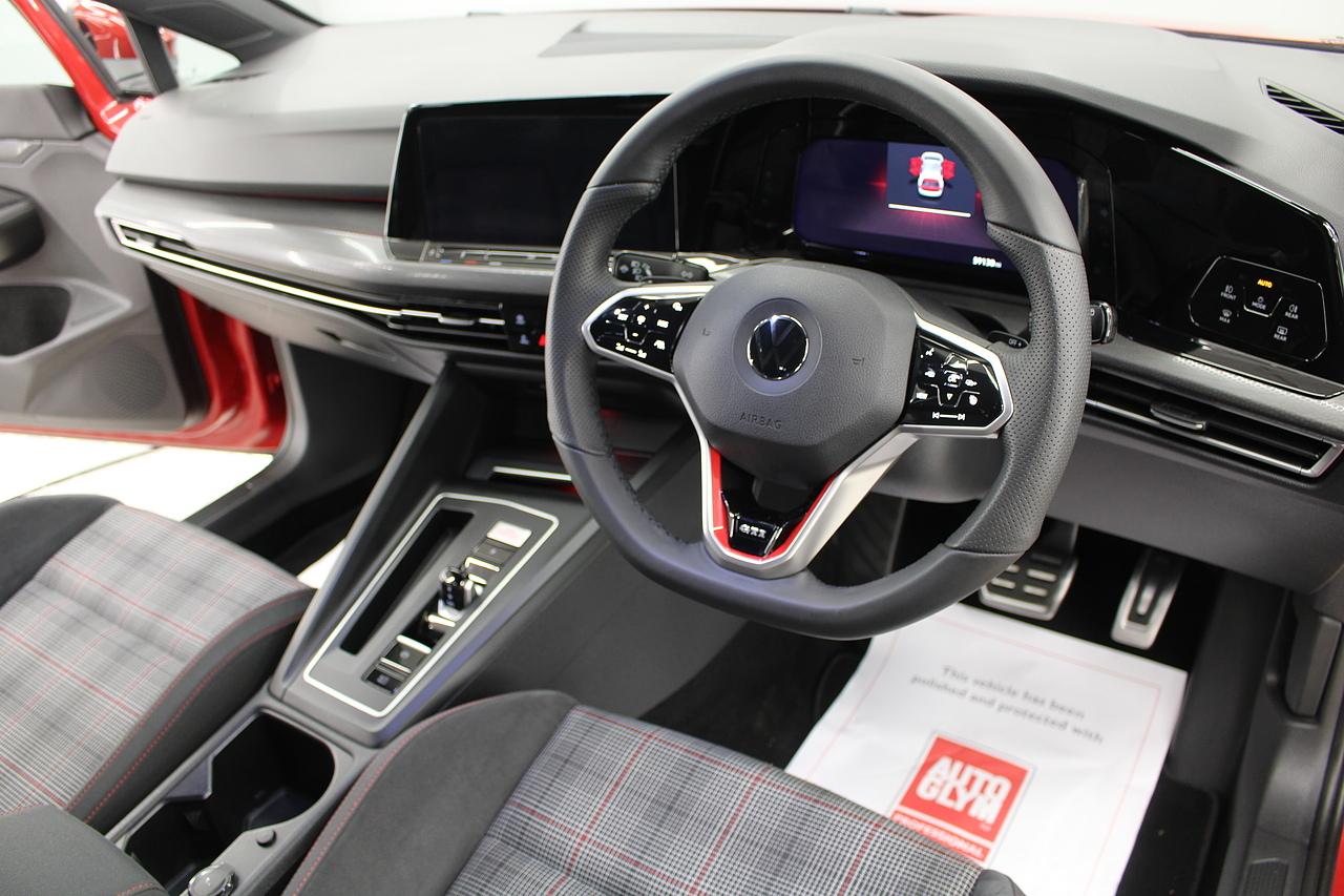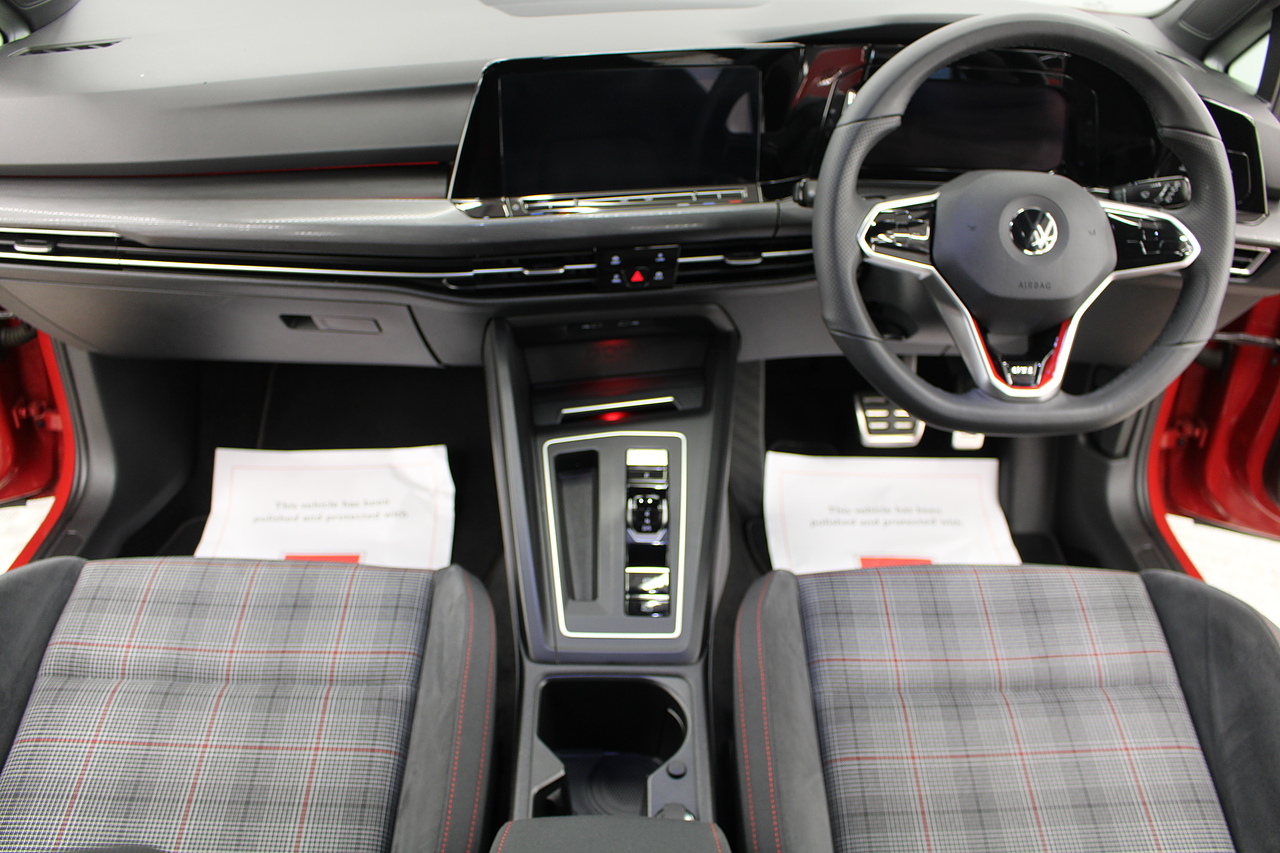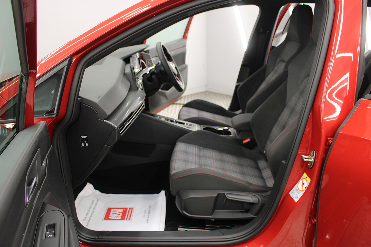 This particular model the 2021 GTI, comes with trimmed with patterned cloth interior recognisable from GTI's through the ages. In addition to full colour screen and premium sound system, DAB Radio, Satellite navigation, Bluetooth, apple car play and android auto, heated steering wheel, virtual cockpit display, handy driver aids such as rear parking sensors and adaptive cruise control. This car really does pay homage to the MK1 GTI of the 80s, with premium and modern extras such as air conditioning and climate control, DAB radio with MP3 functionality, steering wheel mounted controls, giving it a modern look and feel inside the cabin.