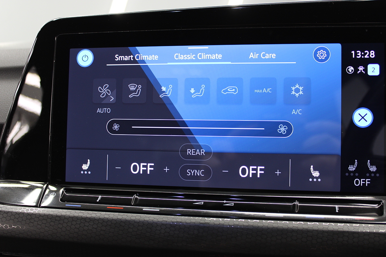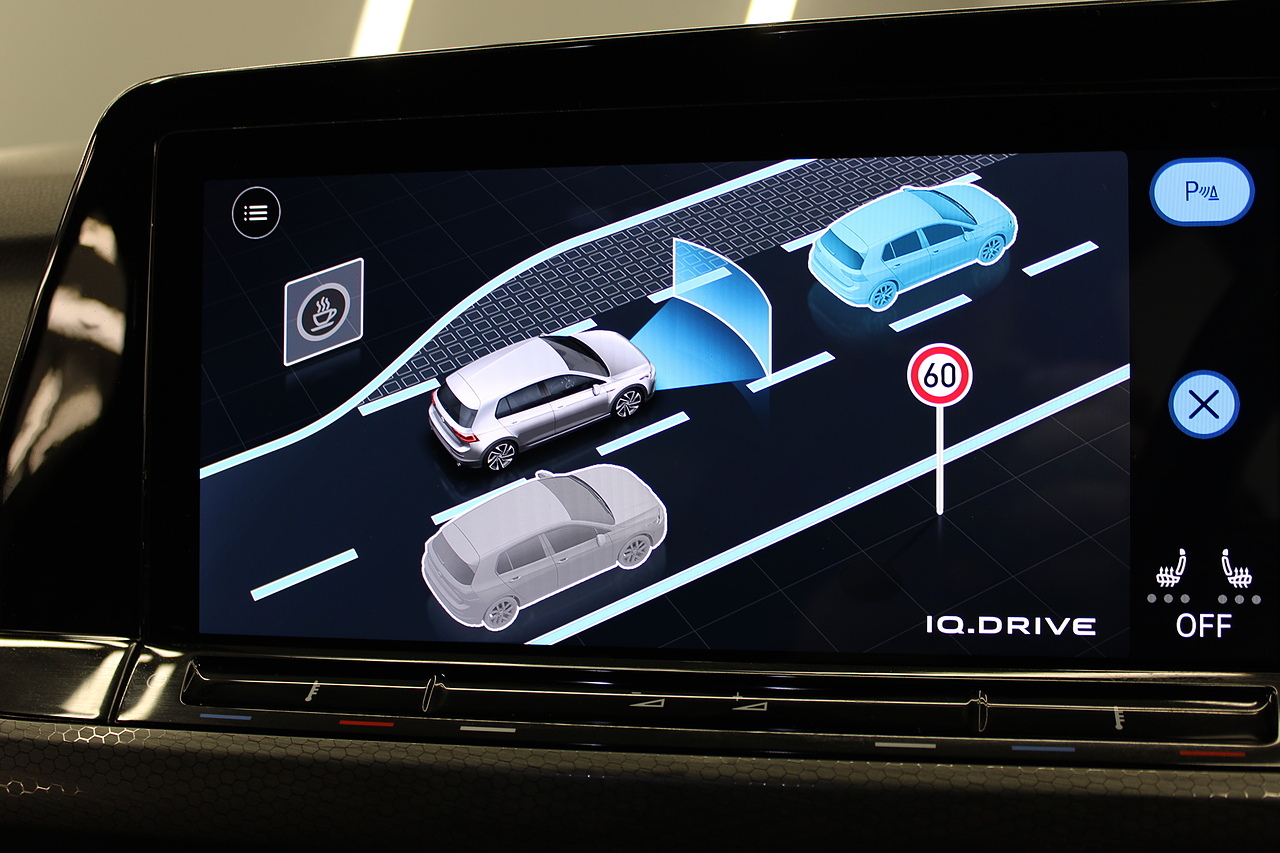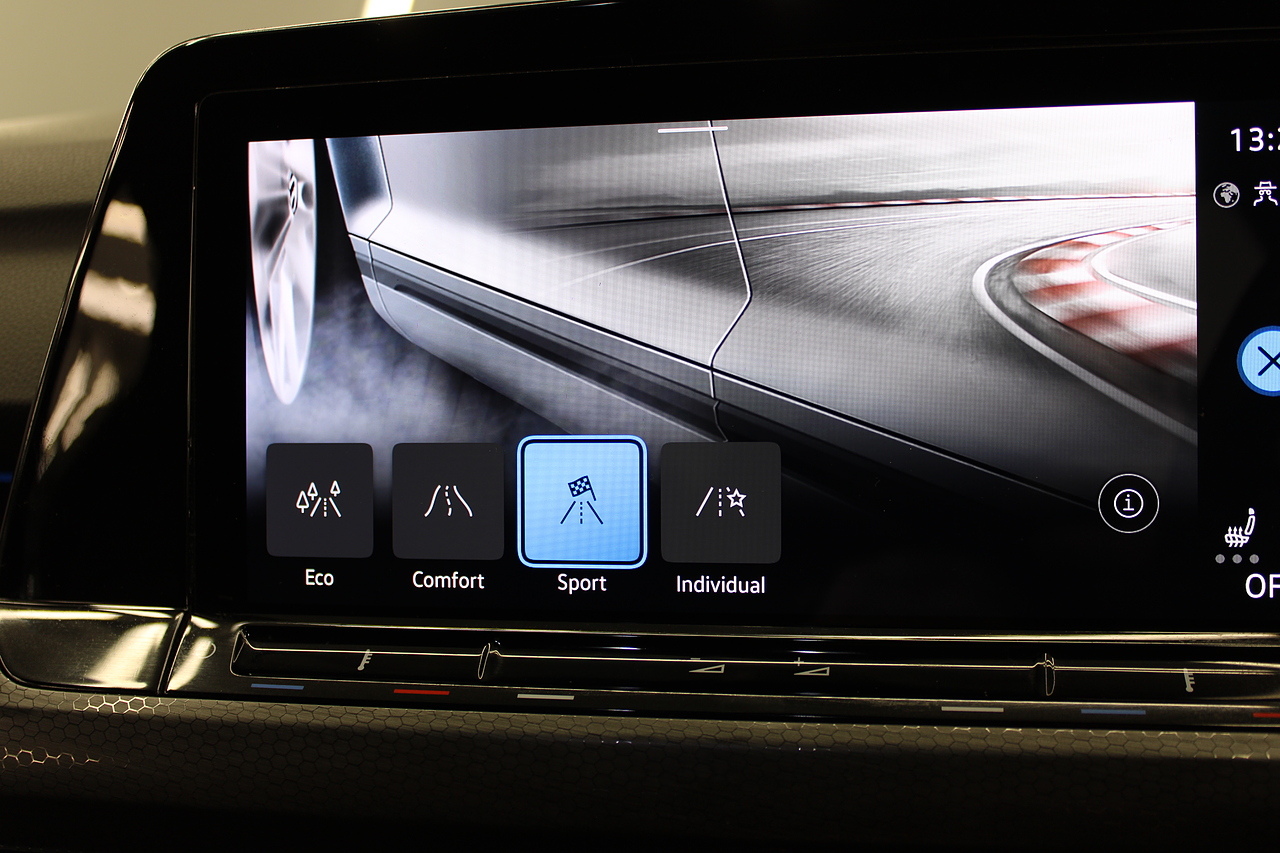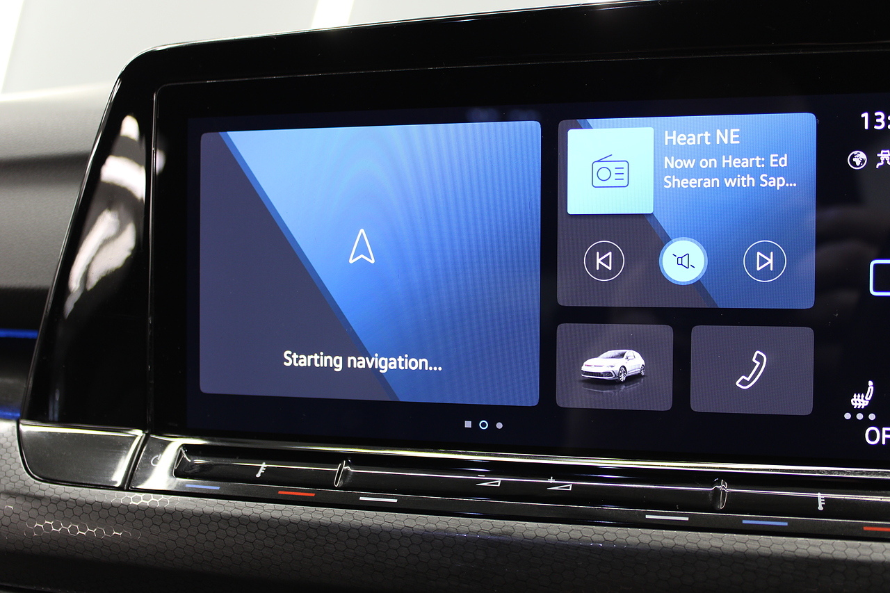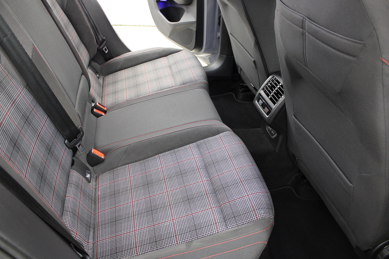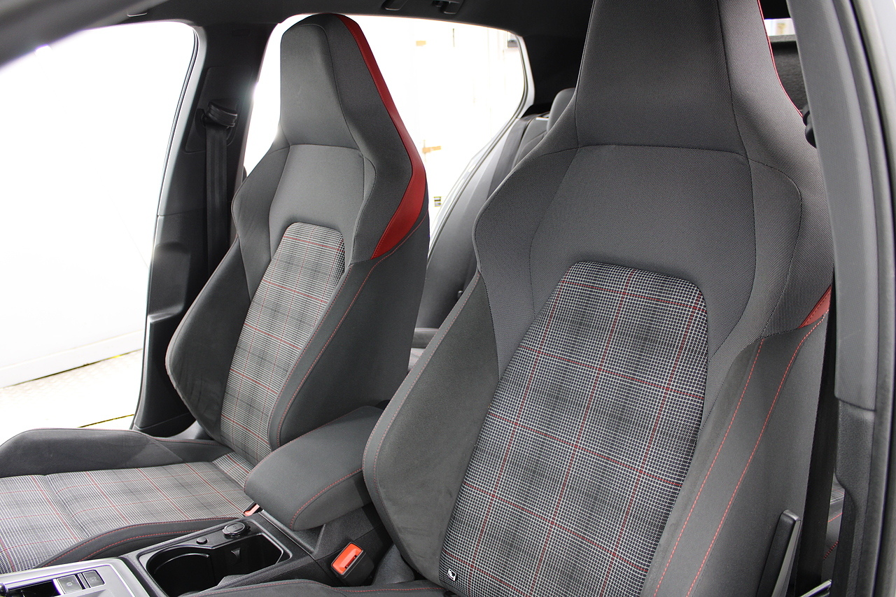 This particular model the 2021 GTI, comes with trimmed with patterned cloth interior recognisable from GTI's through the ages. In addition to full colour screen and premium sound system, DAB Radio, Satellite navigation, Bluetooth, apple car play and android auto, heated steering wheel, virtual cockpit display, handy driver aids such as rear parking sensors with rear camera and adaptive cruise control. This car really does pay homage to the MK1 GTI of the 80s, with premium and modern extras such as air conditioning and climate control, DAB radio with MP3 functionality, steering wheel mounted controls, giving it a modern look and feel inside the cabin.